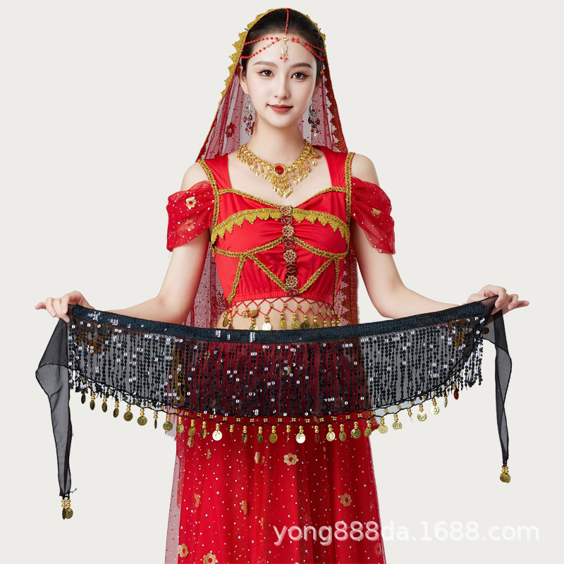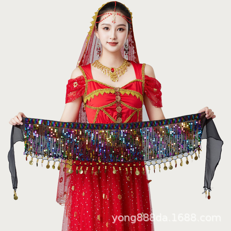 Хэллоуин танец живота блестки с бахромой, шарф на сцене