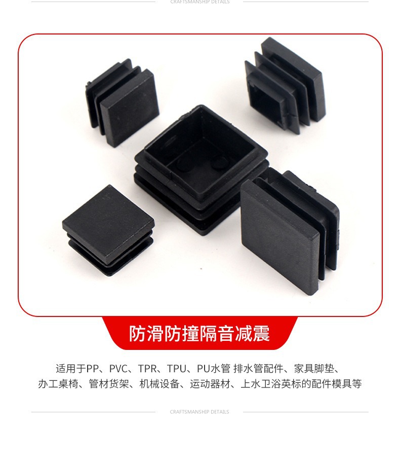 Квадратная трубчатая заглушка, внутренняя заглушка квадратной трубки, черная квадратная заглушка, матовый противоскользящий и износостойкий материал, мебельные накладки на ножки стола и стула по индивидуальному заказу.