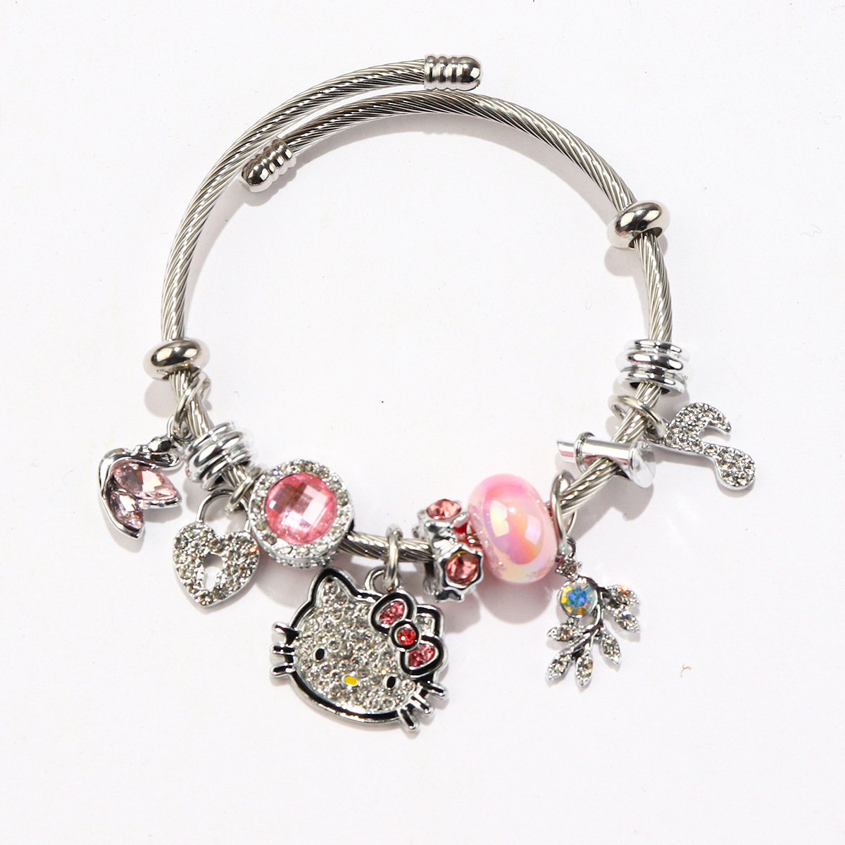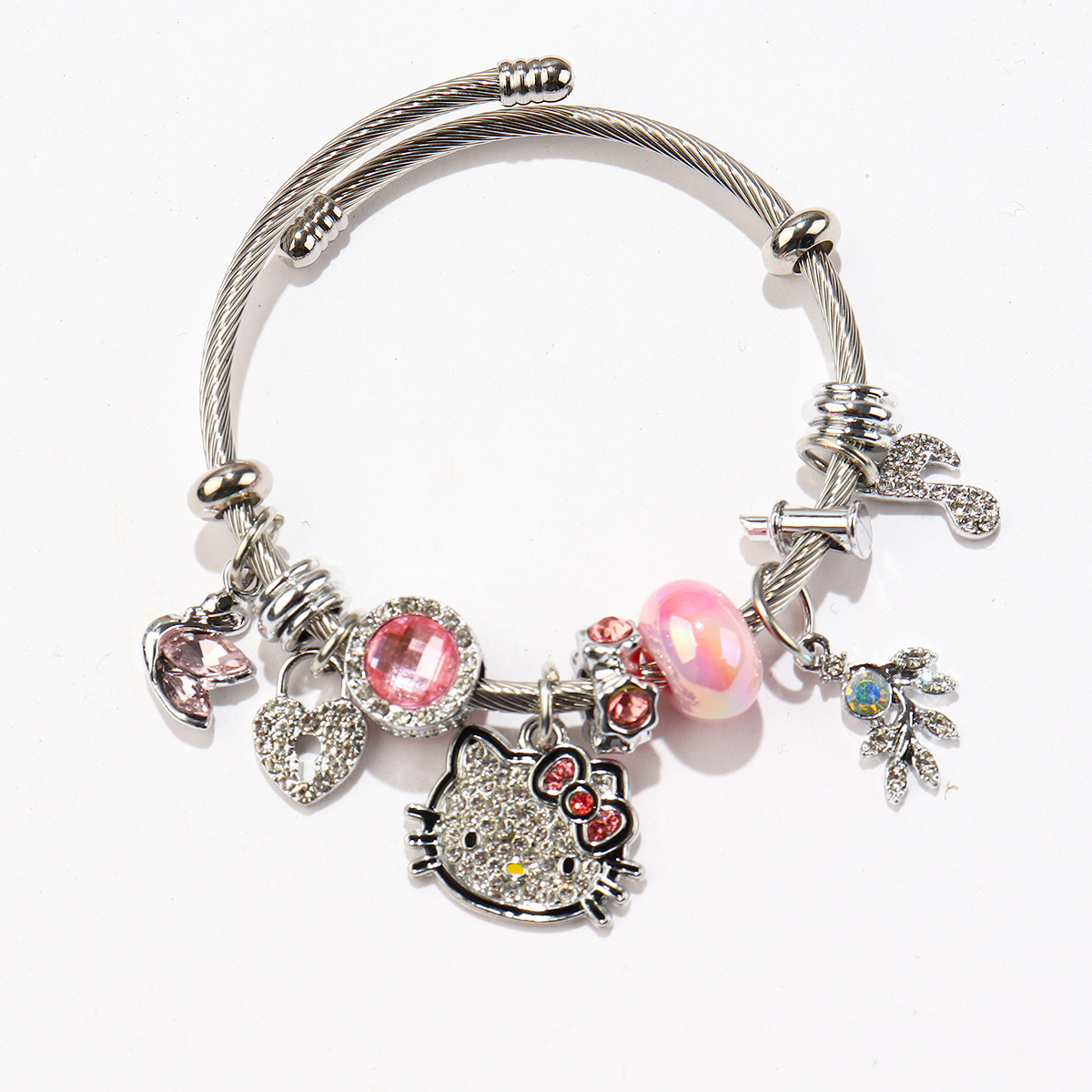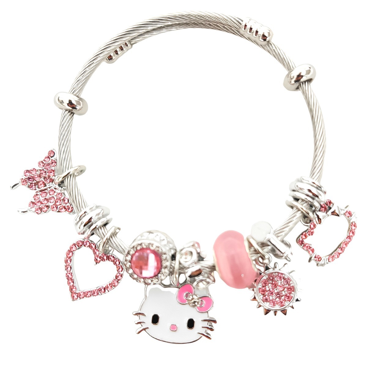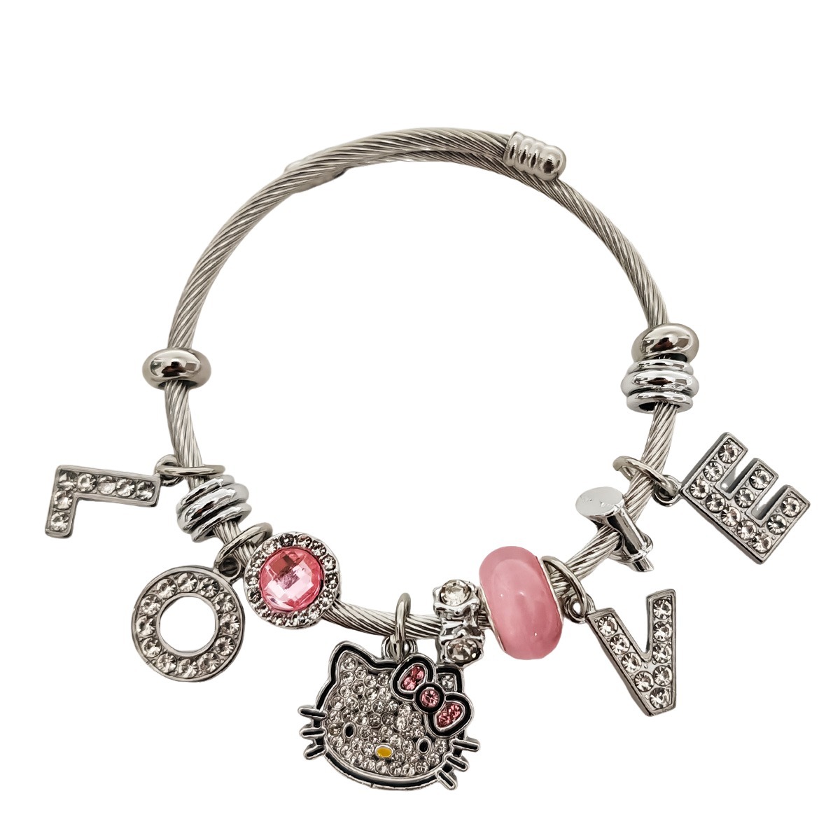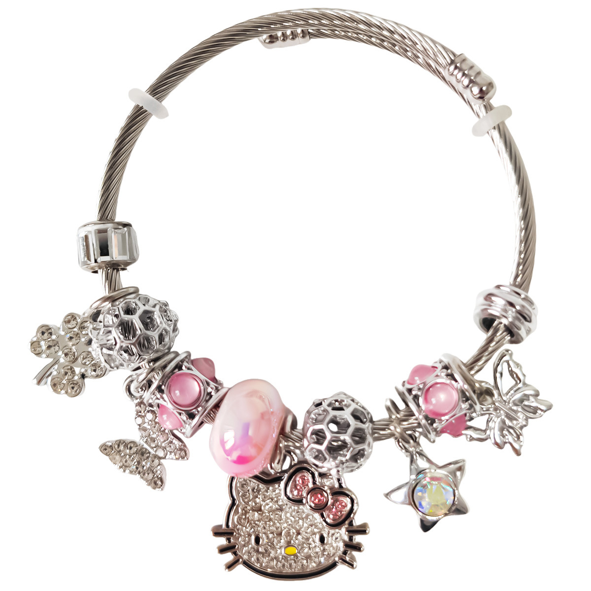Трансграничный Pan Home Hello Kitty браслет из нержавеющей стали открытый браслет kitty кот большой дырки бусы DIY горячие продажи браслет оптом