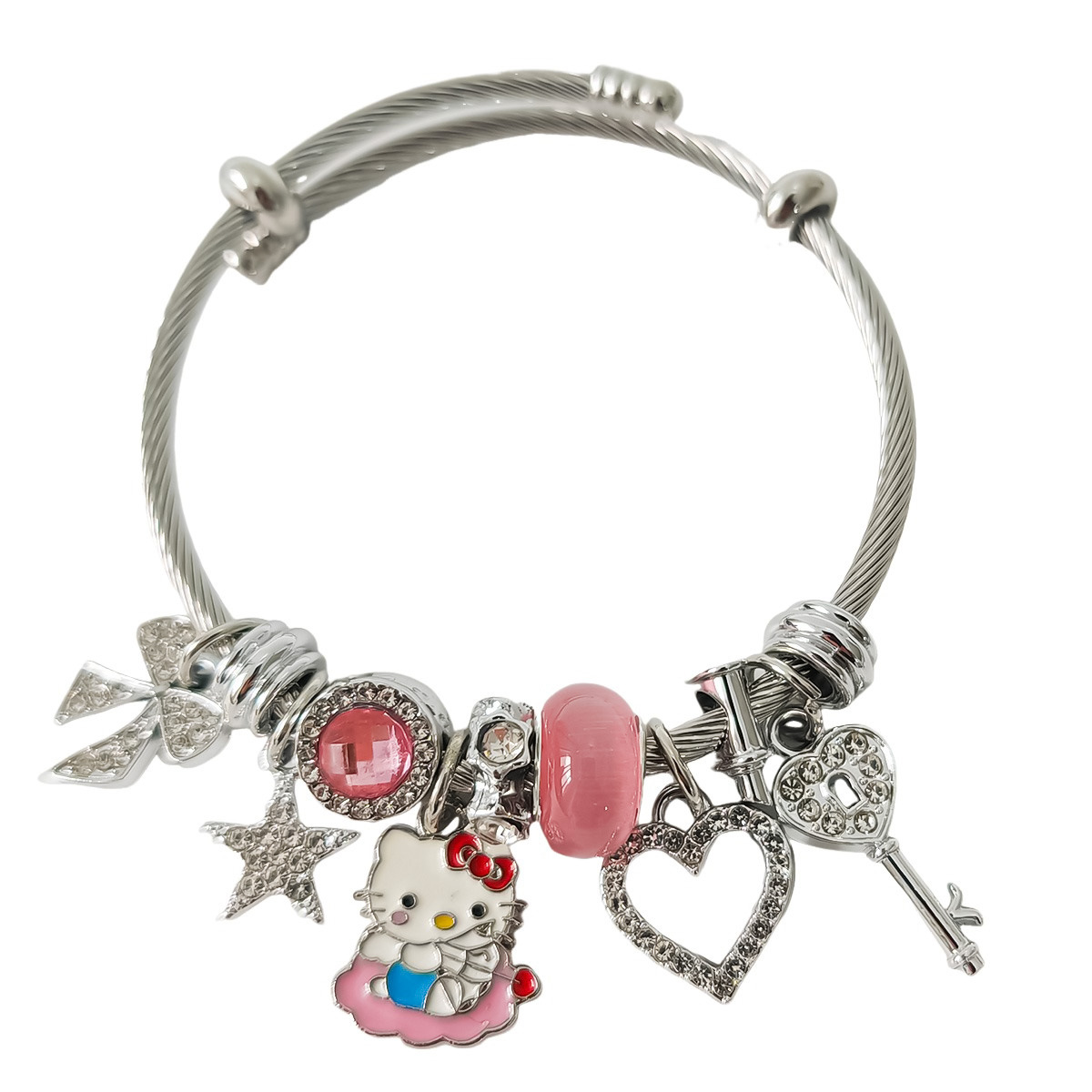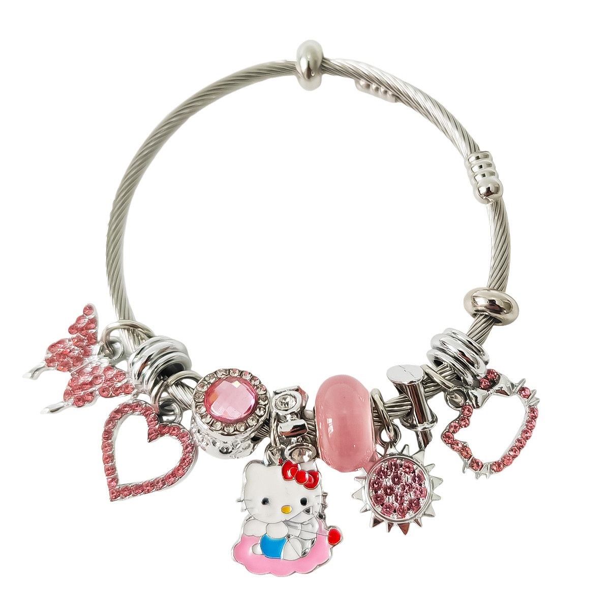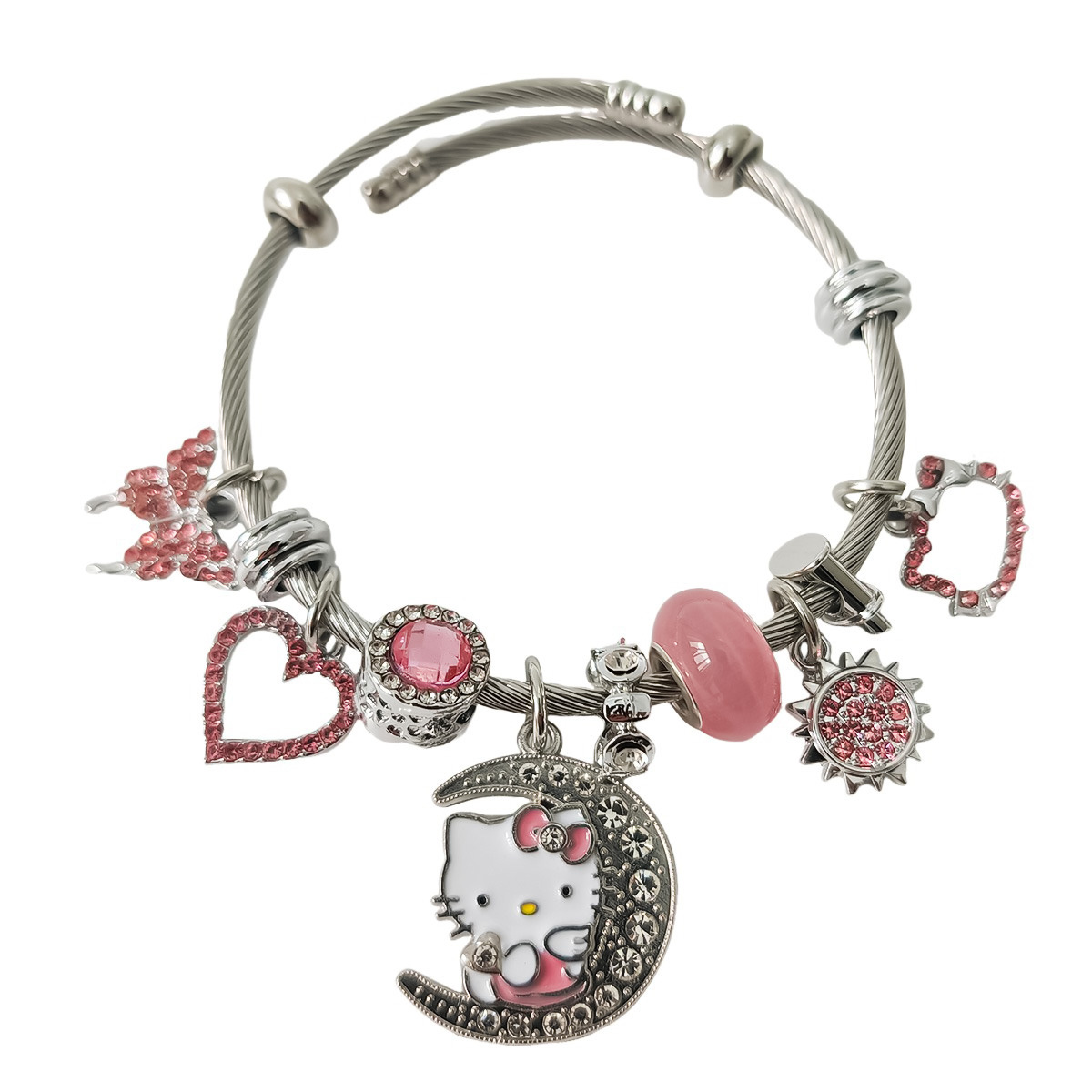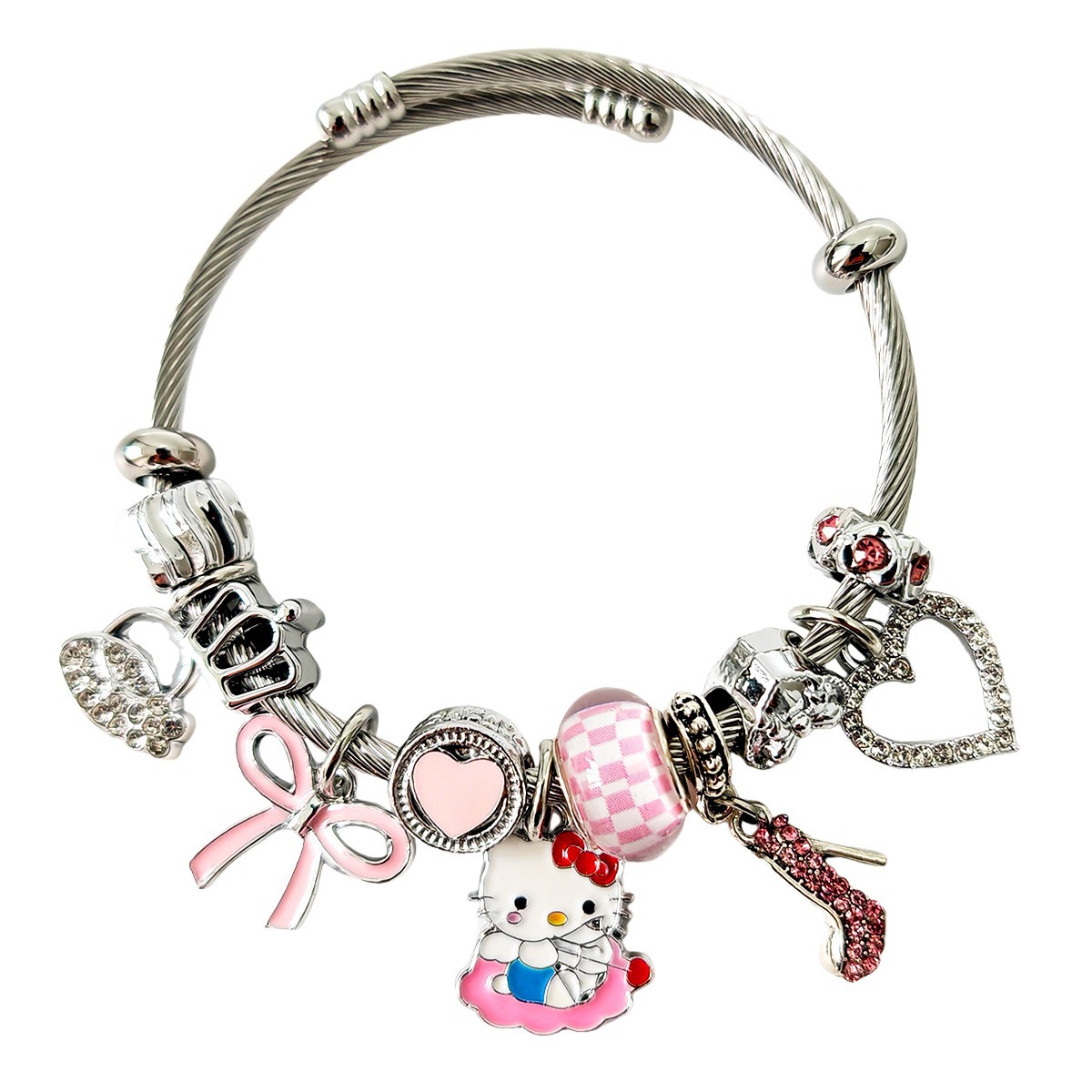 Трансграничный Pan Home Hello Kitty браслет из нержавеющей стали открытый браслет kitty кот большой дырки бусы DIY горячие продажи браслет оптом