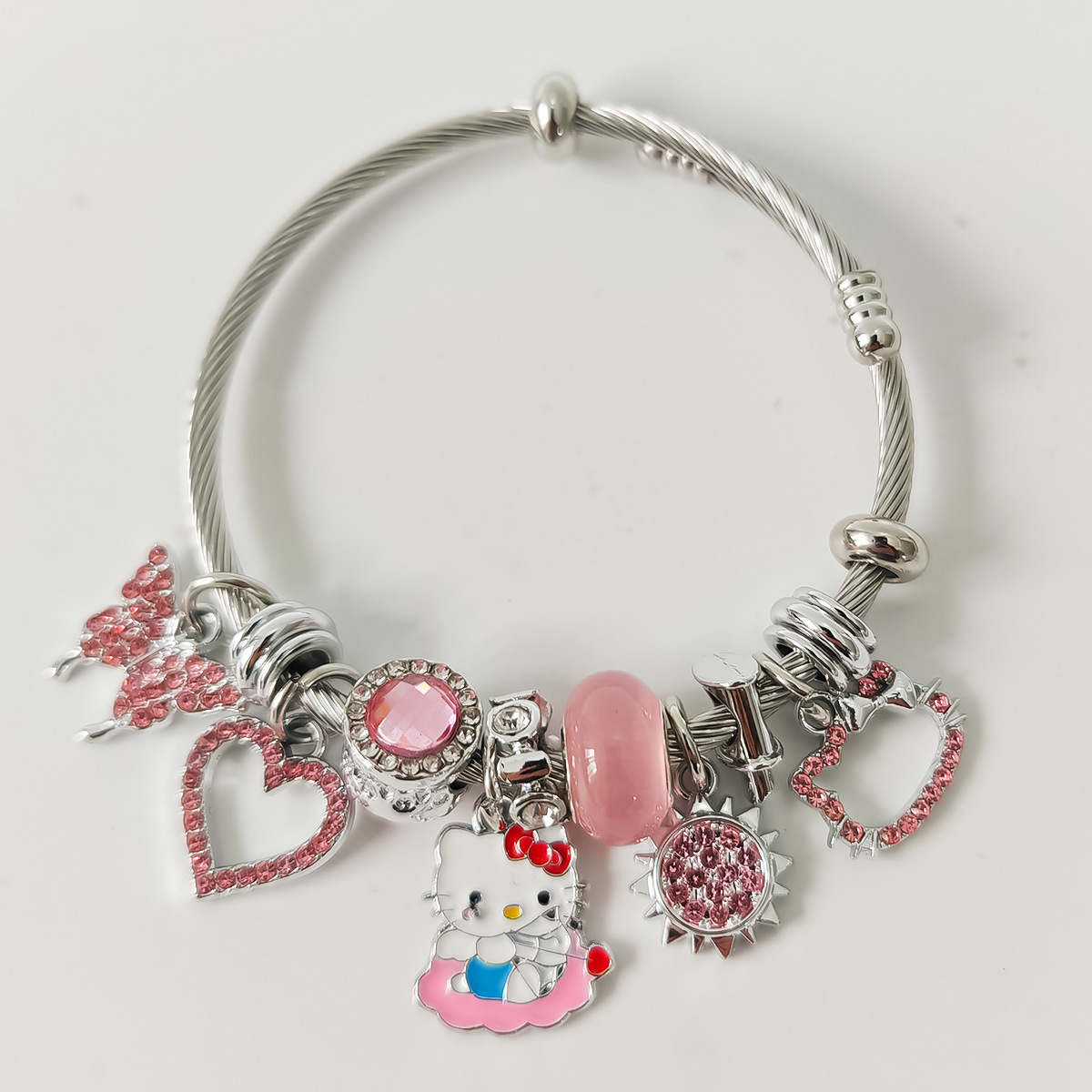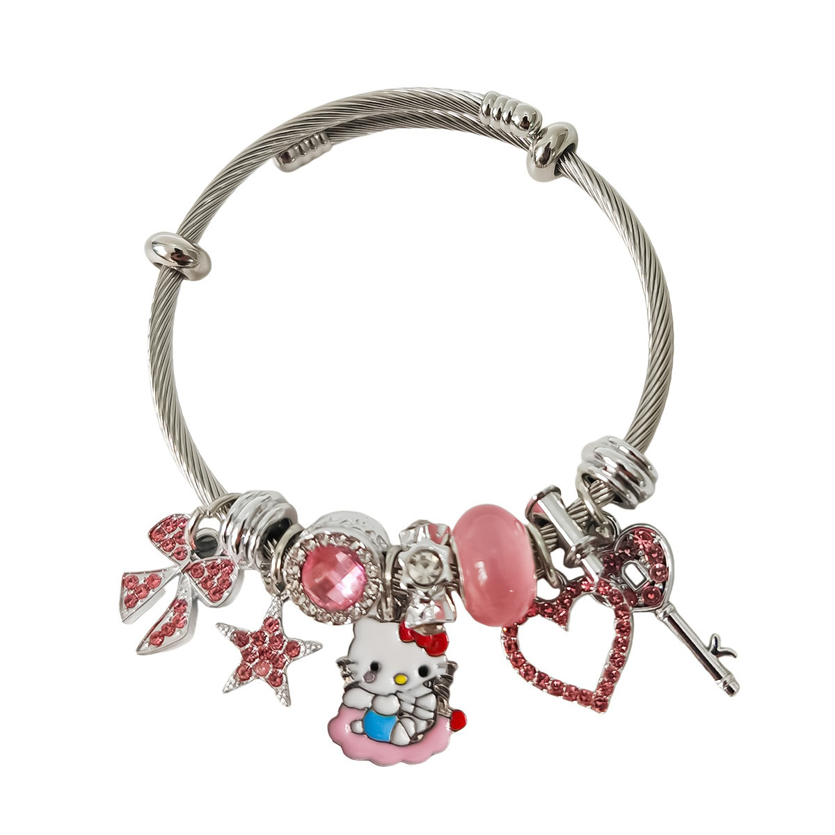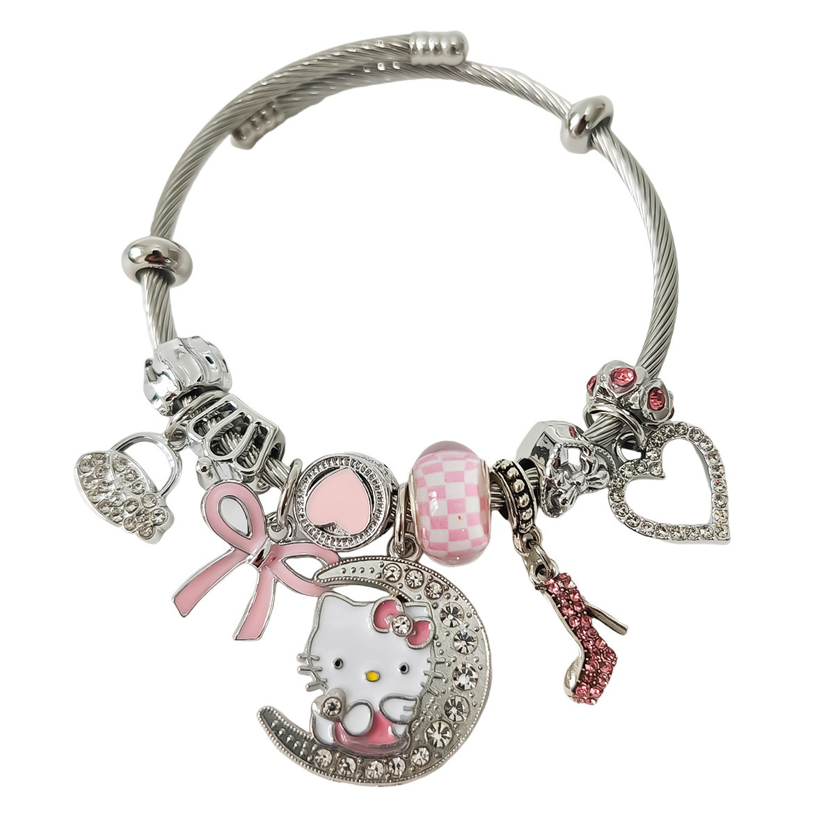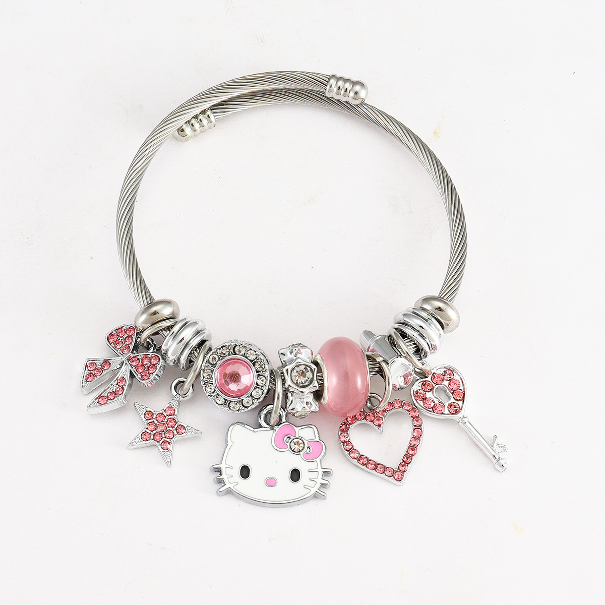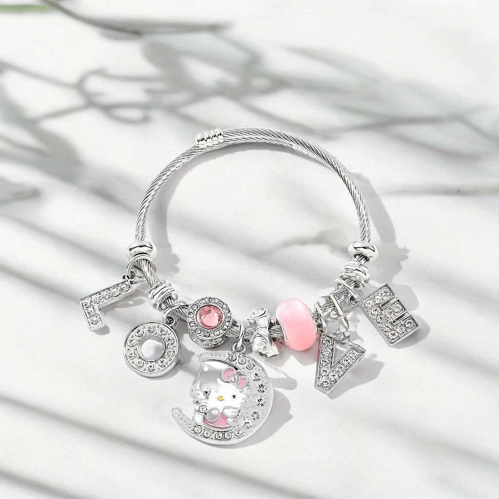 Трансграничный Pan Home Hello Kitty браслет из нержавеющей стали открытый браслет kitty кот большой дырки бусы DIY горячие продажи браслет оптом