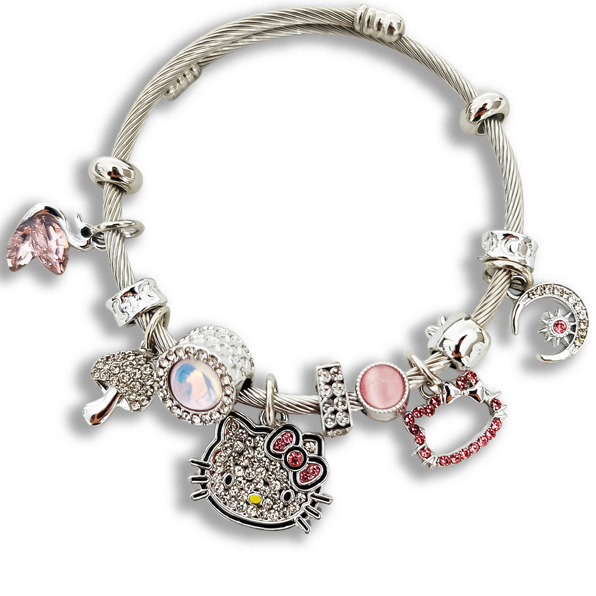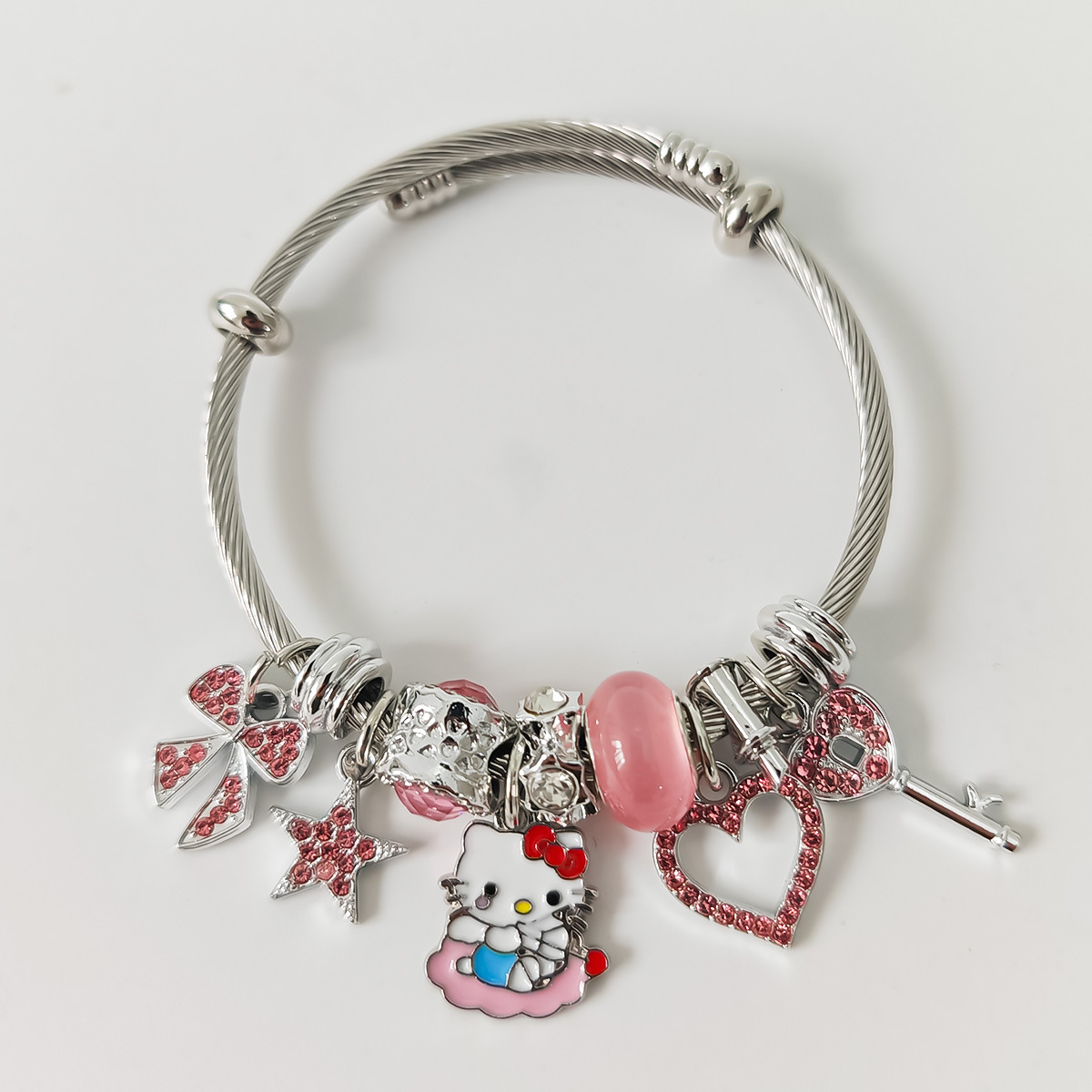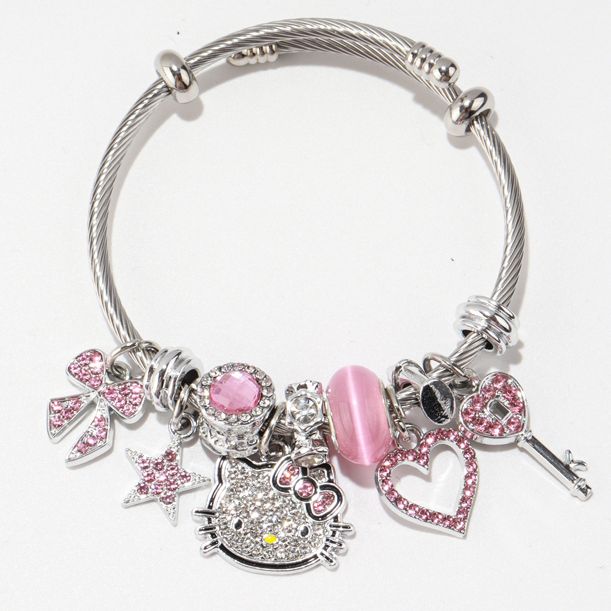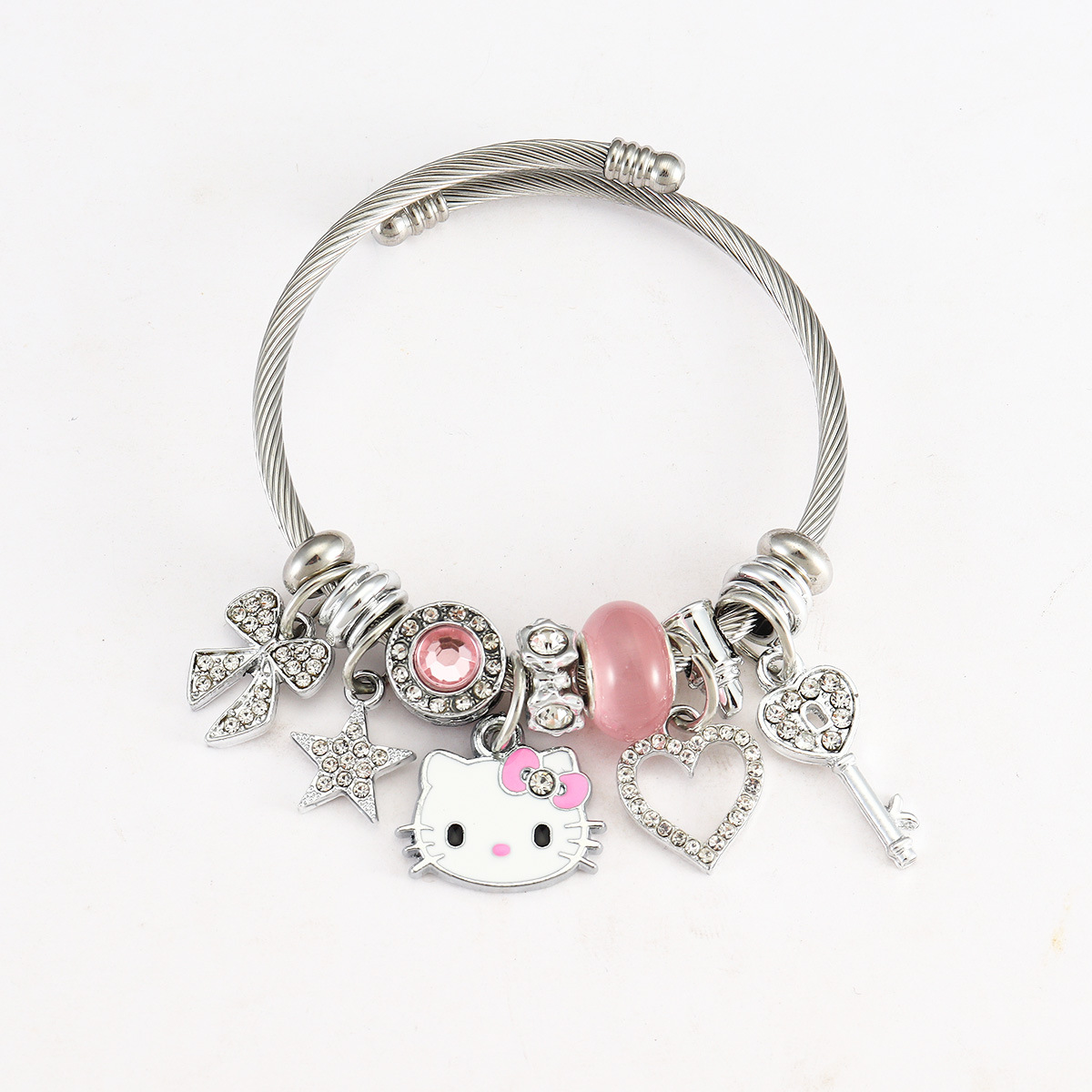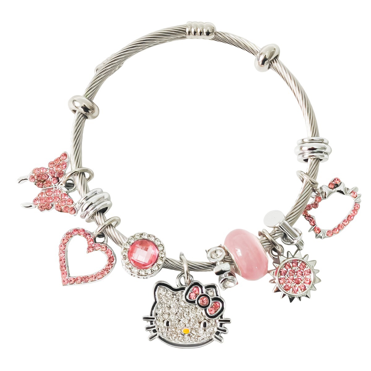 Трансграничный Pan Home Hello Kitty браслет из нержавеющей стали открытый браслет kitty кот большой дырки бусы DIY горячие продажи браслет оптом