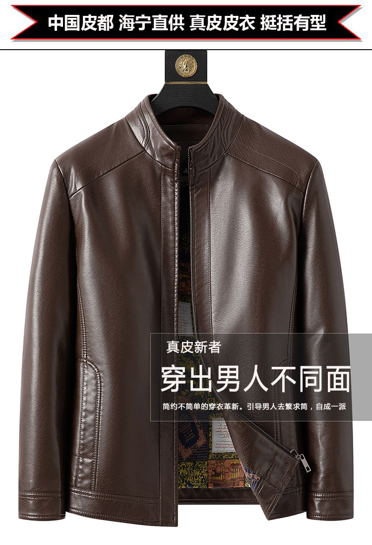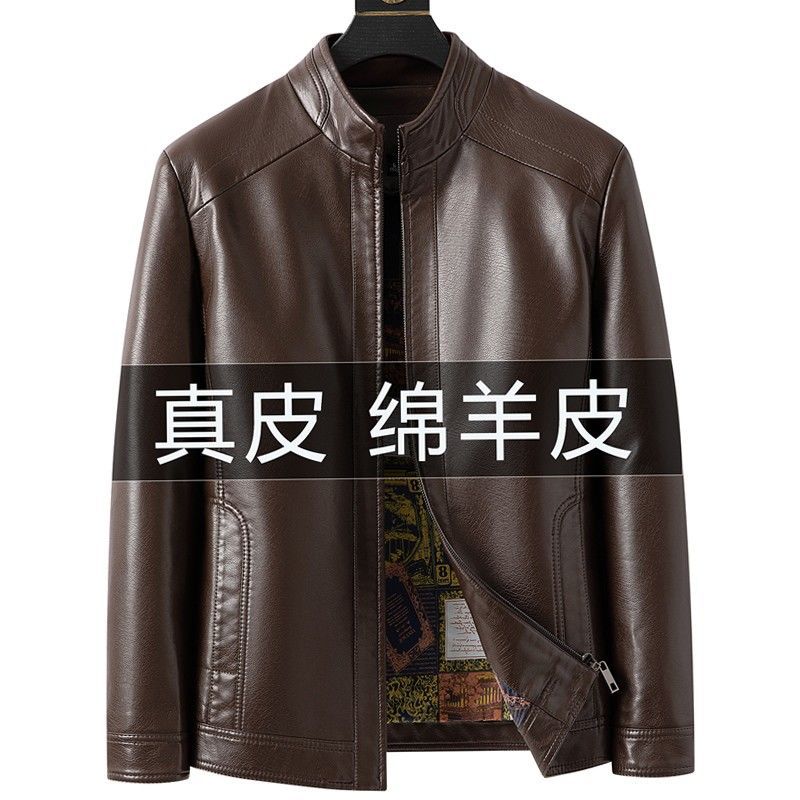 春秋新款海宁真皮皮衣男中年爸爸装绵羊皮男士休闲大码皮夹克外套