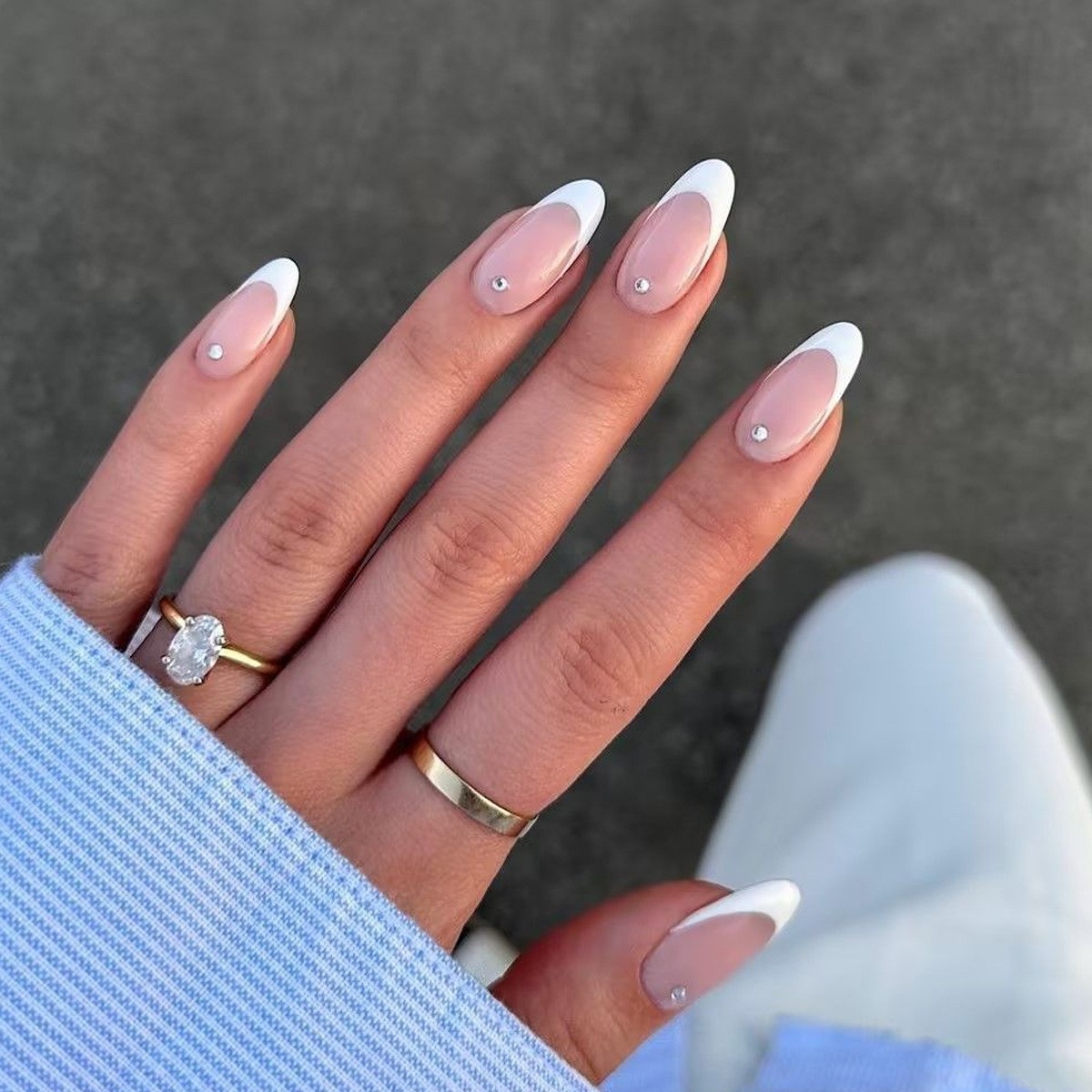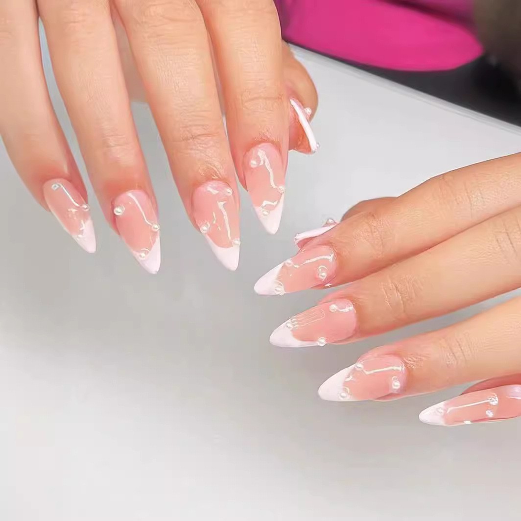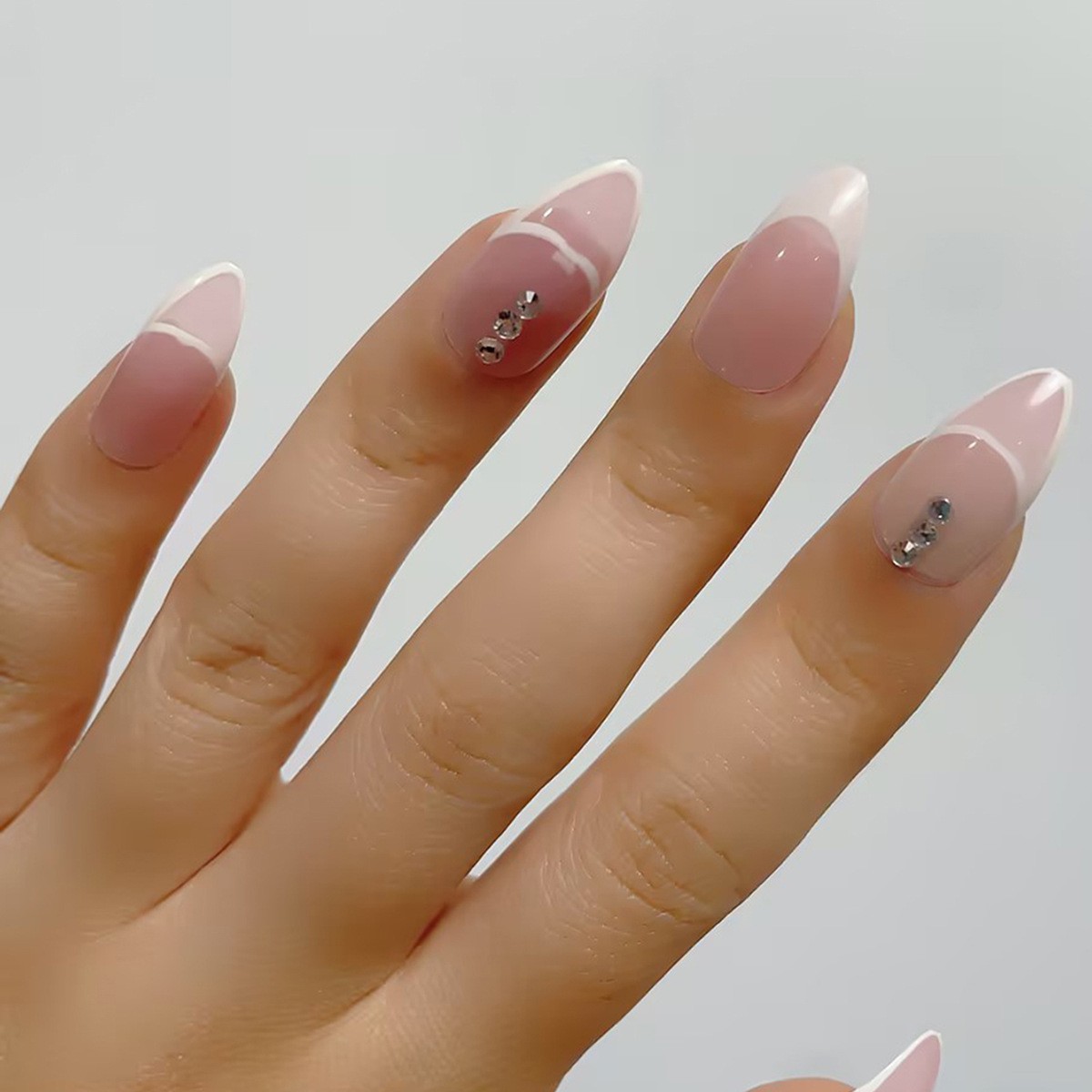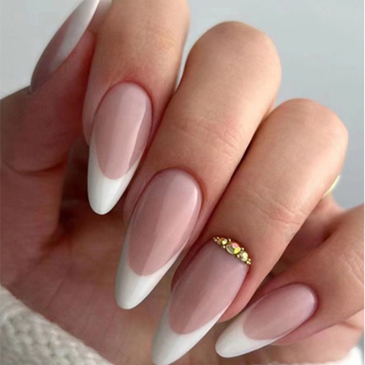 Экспорт высококачественных накладных ногтей в стиле Ins, миндалевидной формы, французский маникюр средней длины, оптом для трансграничной торговли.