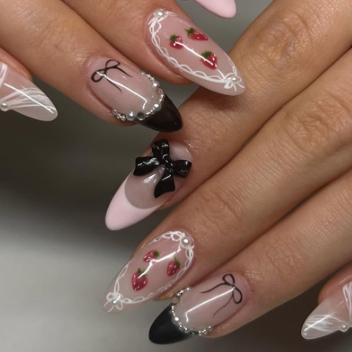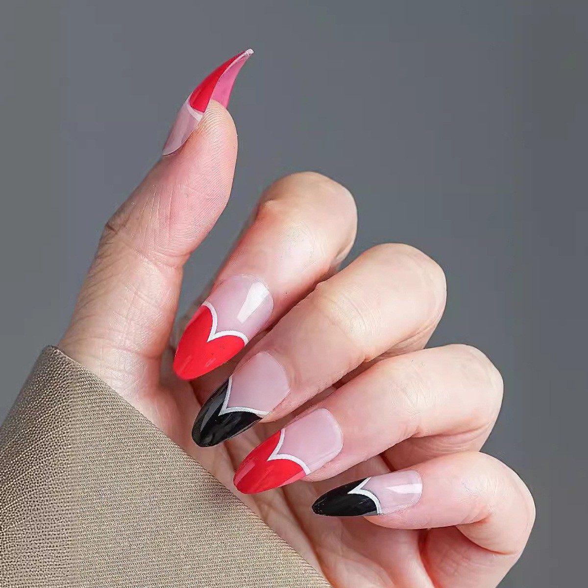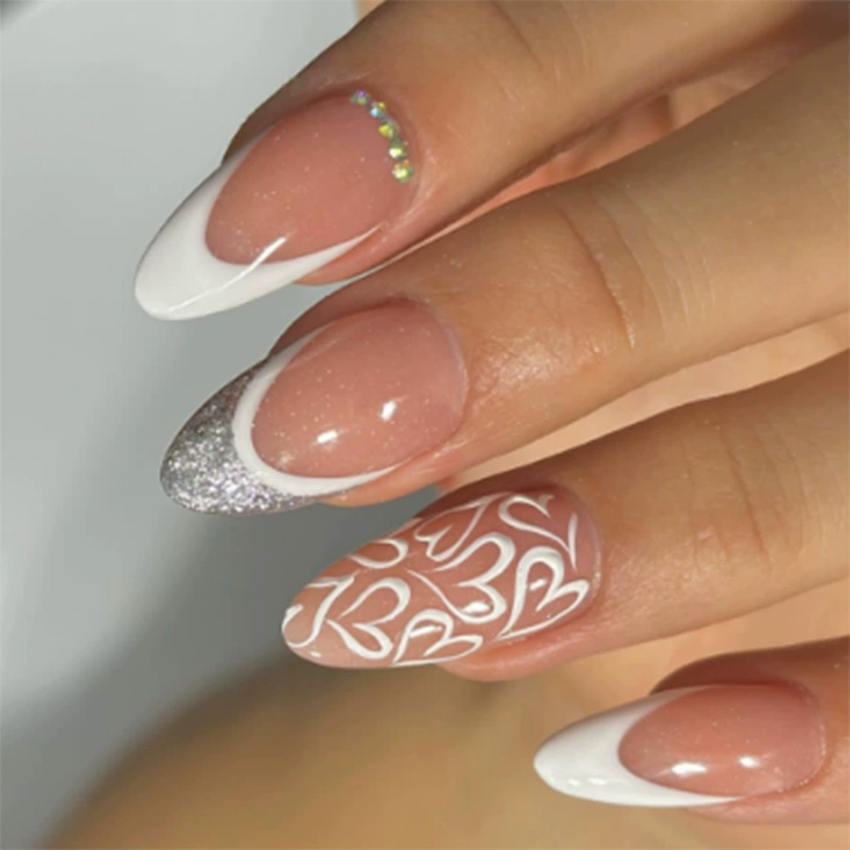 Экспорт высококачественных накладных ногтей в стиле Ins, миндалевидной формы, французский маникюр средней длины, оптом для трансграничной торговли.