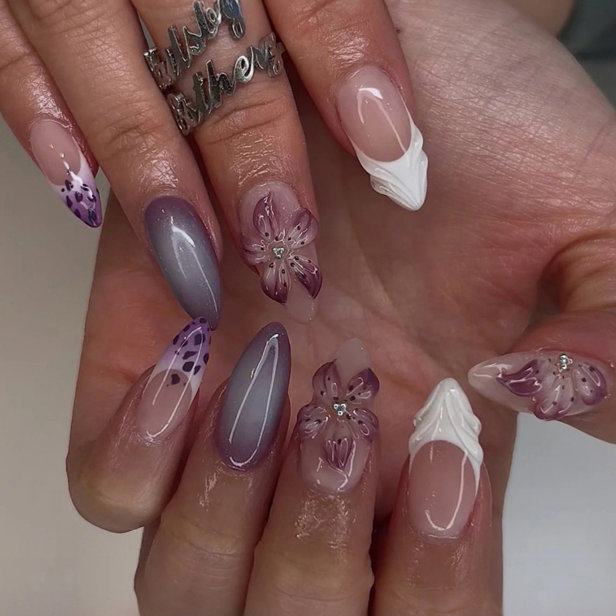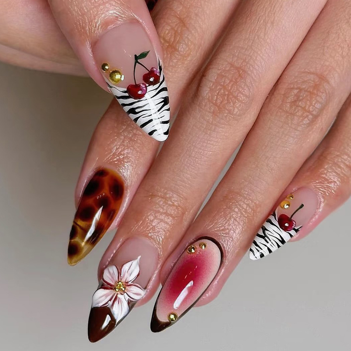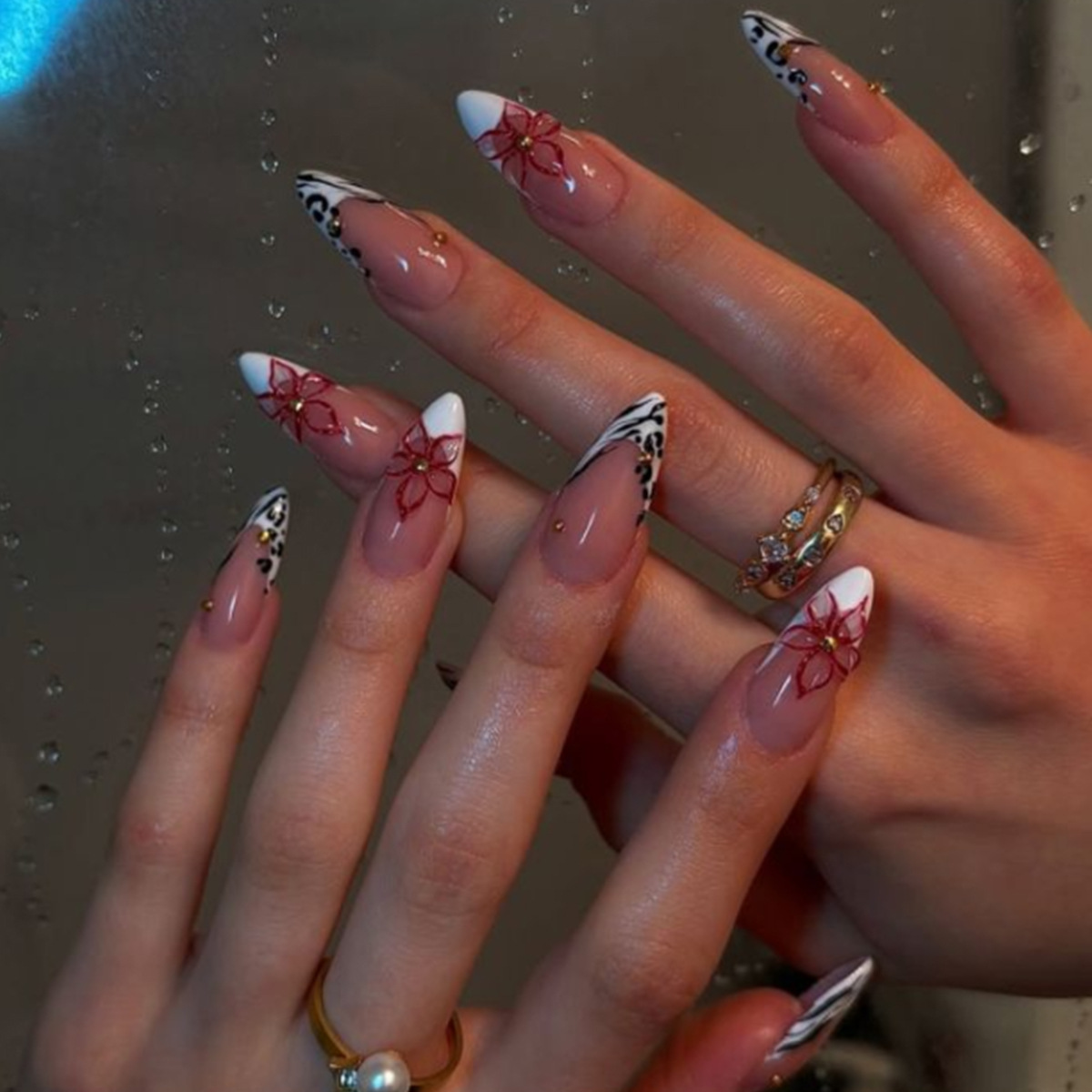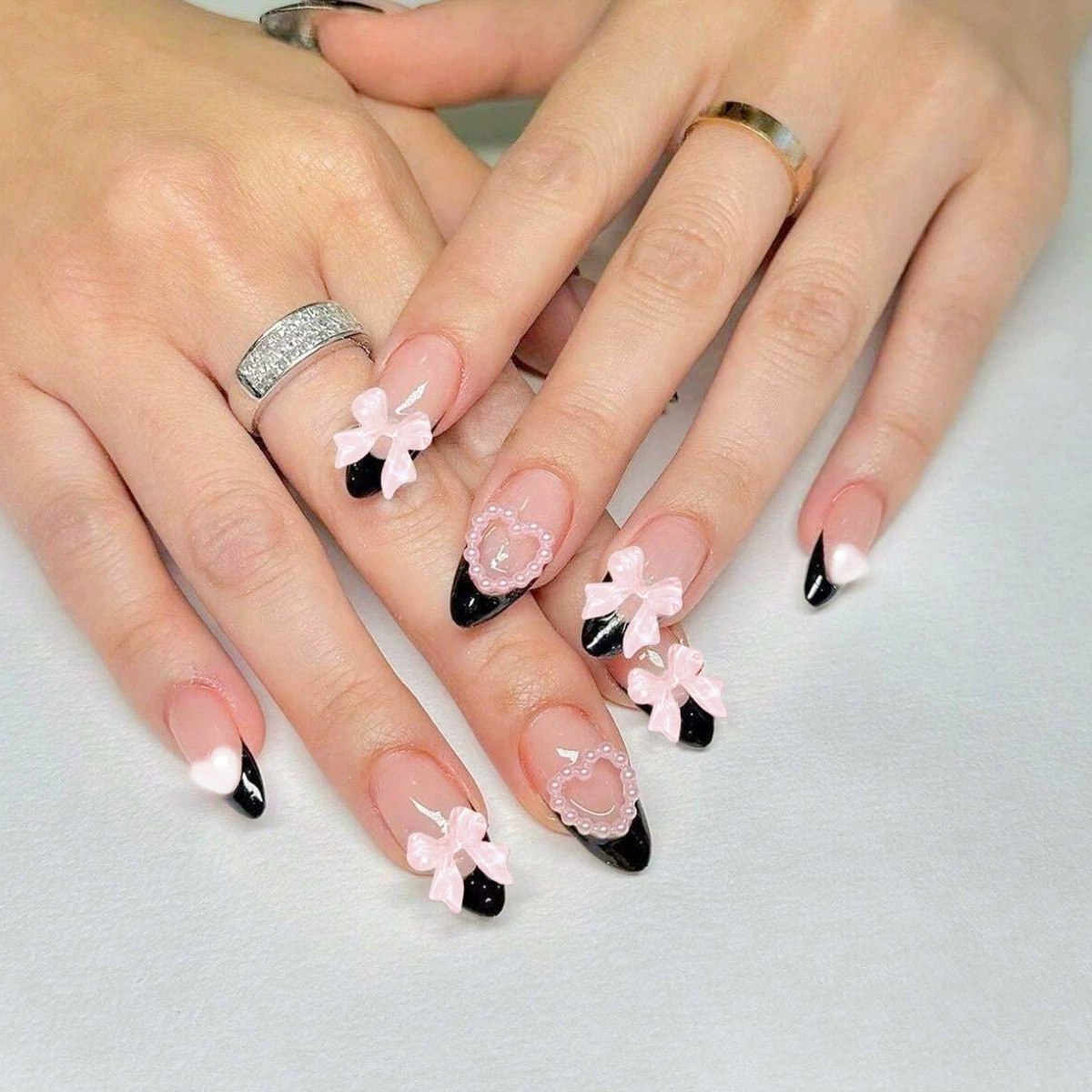Экспорт высококачественных накладных ногтей в стиле Ins, миндалевидной формы, французский маникюр средней длины, оптом для трансграничной торговли.