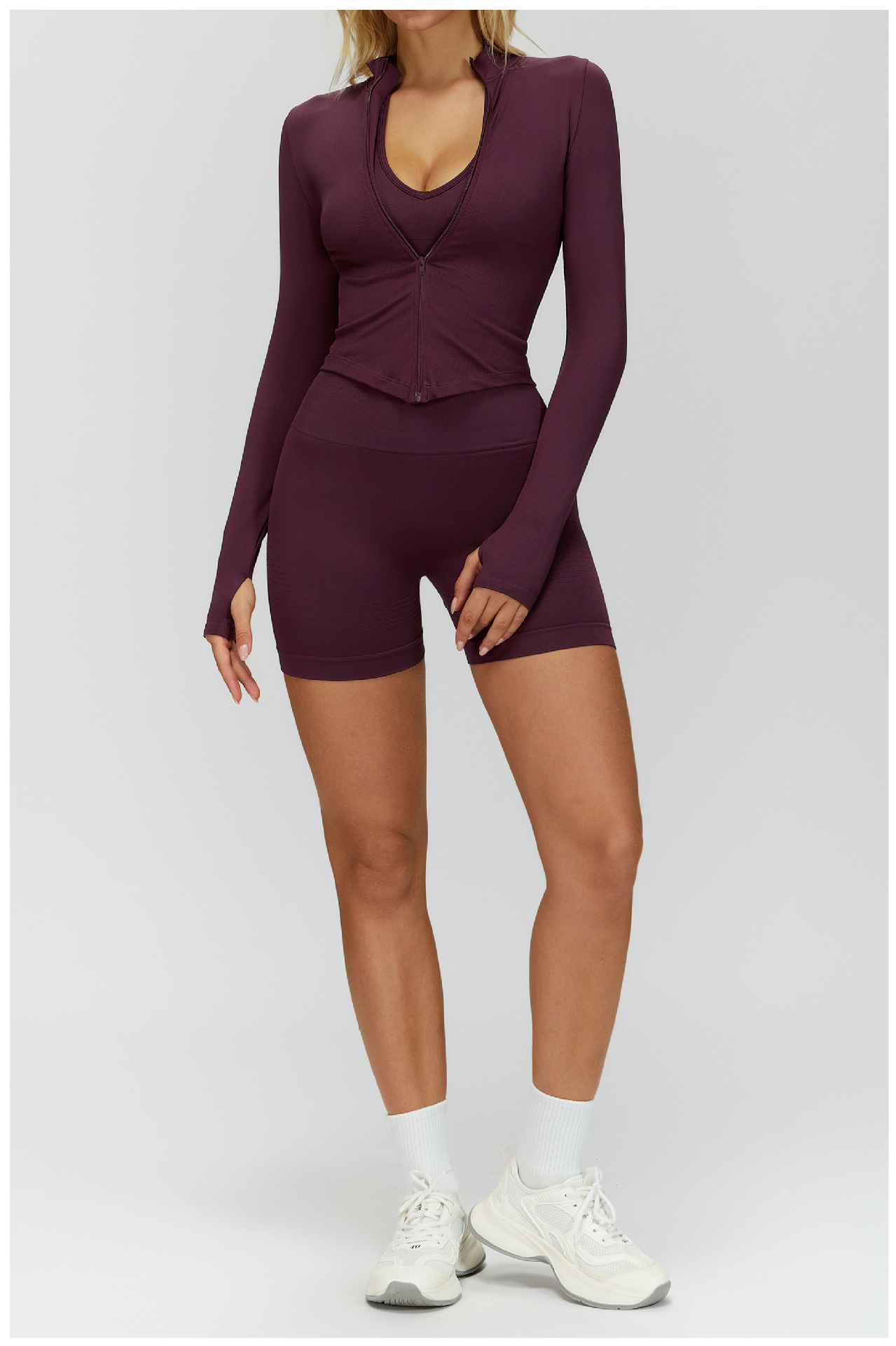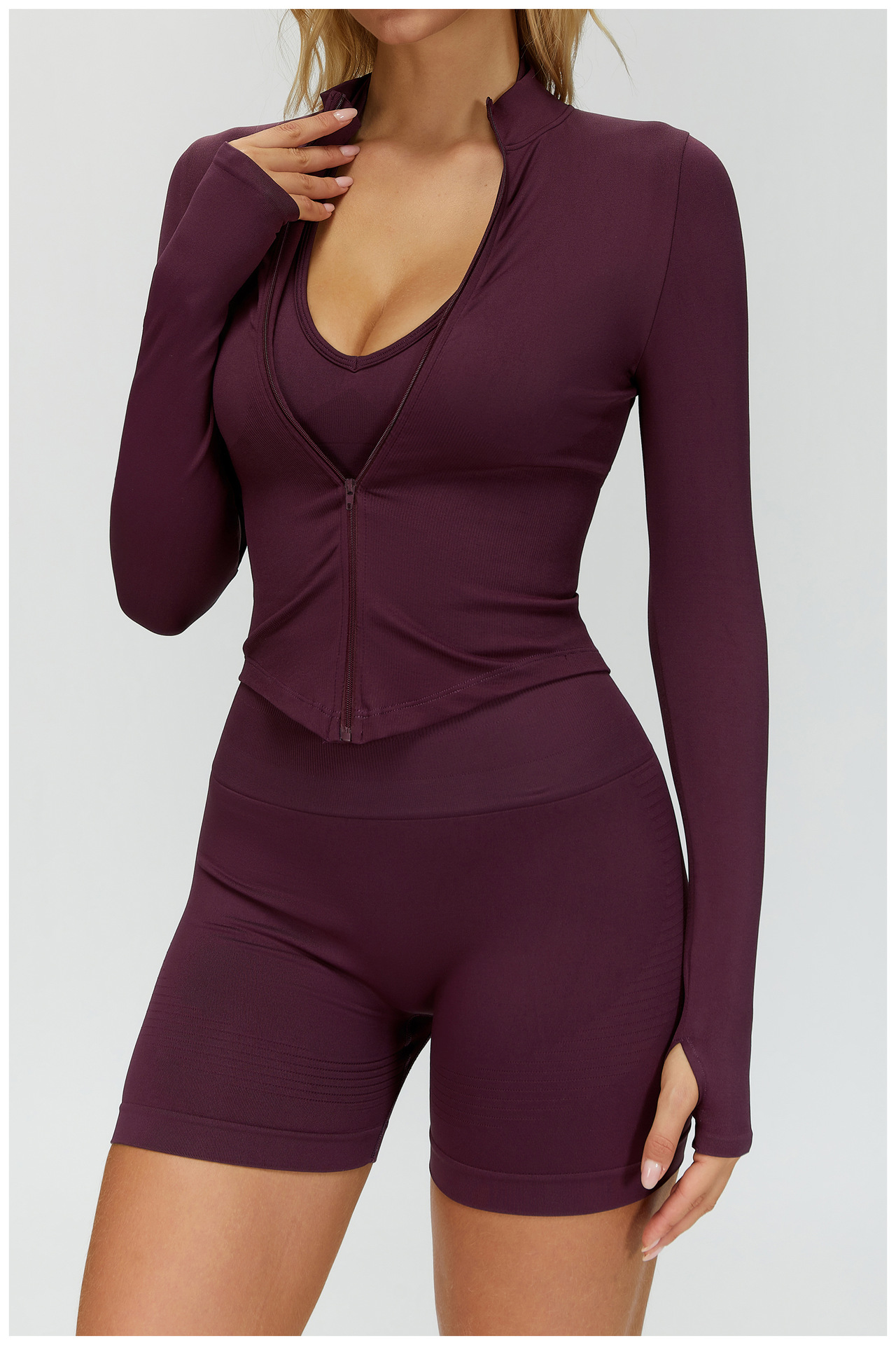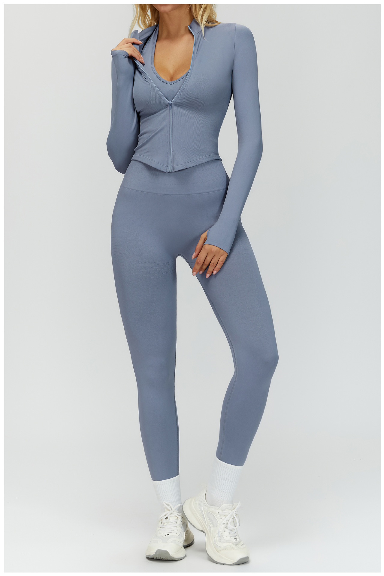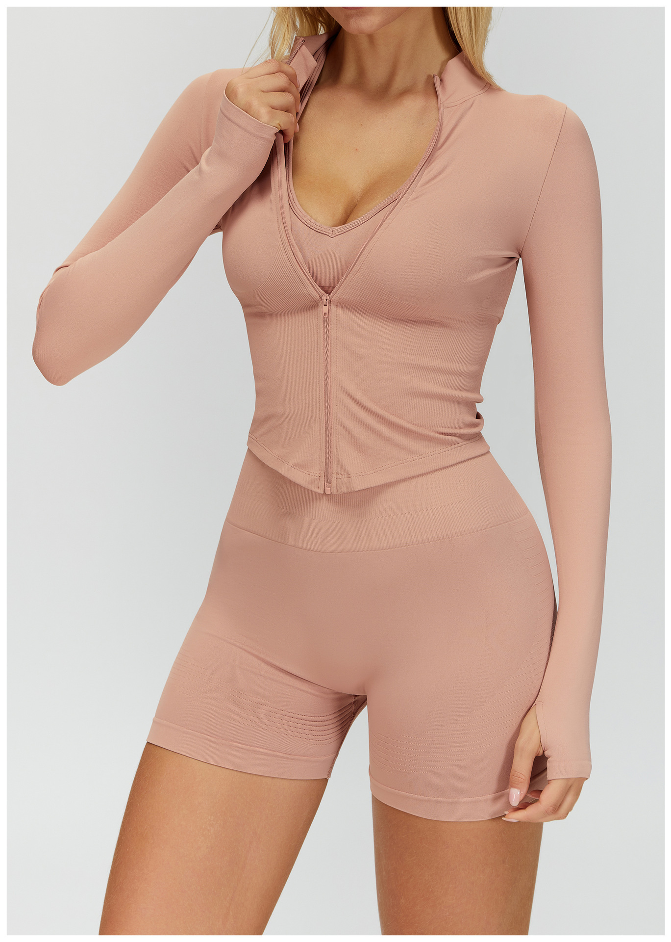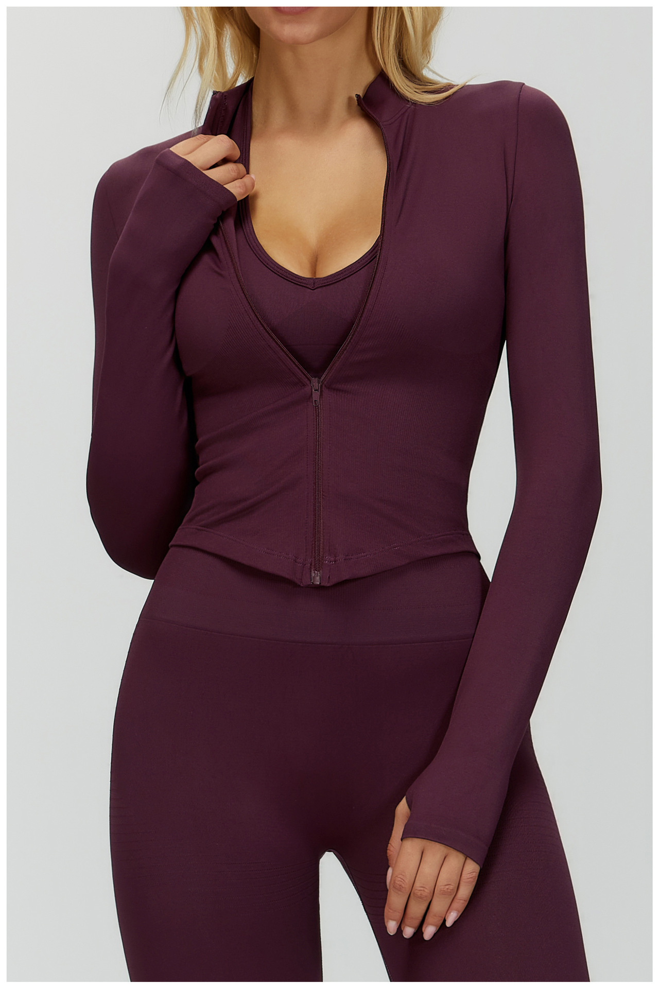 Европейский и американский воротник на молнии с длинными рукавами Йога куртка женский облегающей быстрой сушки йога костюм на открытом воздухе фитнес спортивный топ 7725