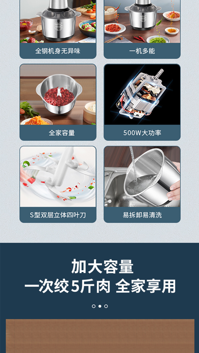 Быстро измельчение мяса: пара импортных стальных ножей [может взбить яйца лапшой]; Быстро фаршное мясо: две пары импортных стальных ножей [можно взбить яйца лапшой]; Быстро фаршное мясо: три пары импортных стальных ножей [можно взбить яйца лапшой]; Быстро фаршное мясо: четыре пары импортных стальных ножей [можно взбить яйца лапшой]