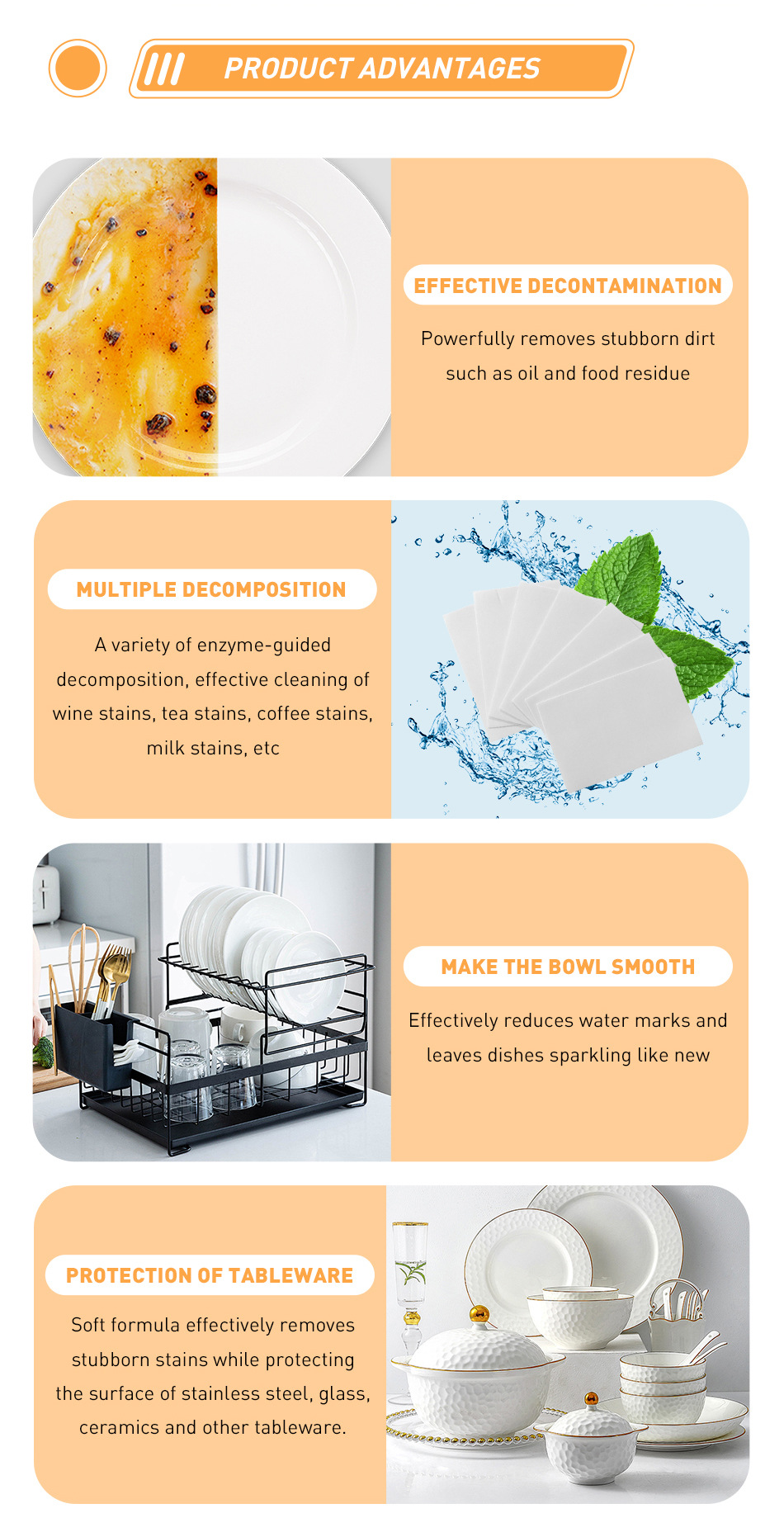 Посудомоечная машина для мытья посуды Чистящие таблетки для удаления масла и дезактивации