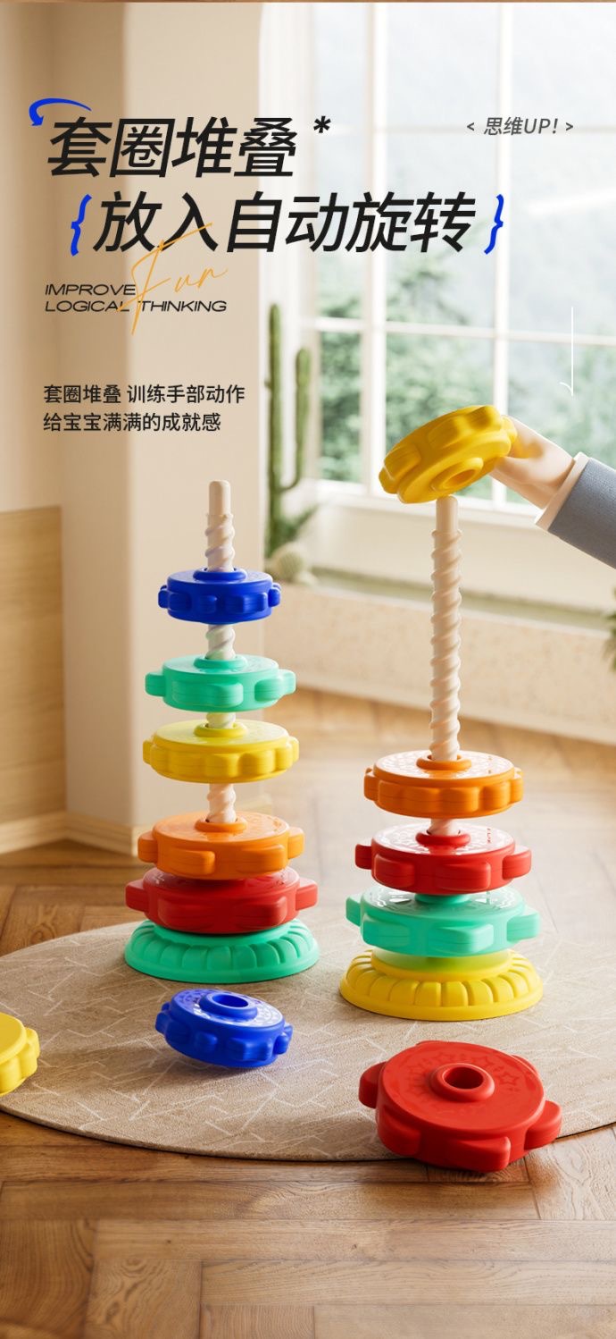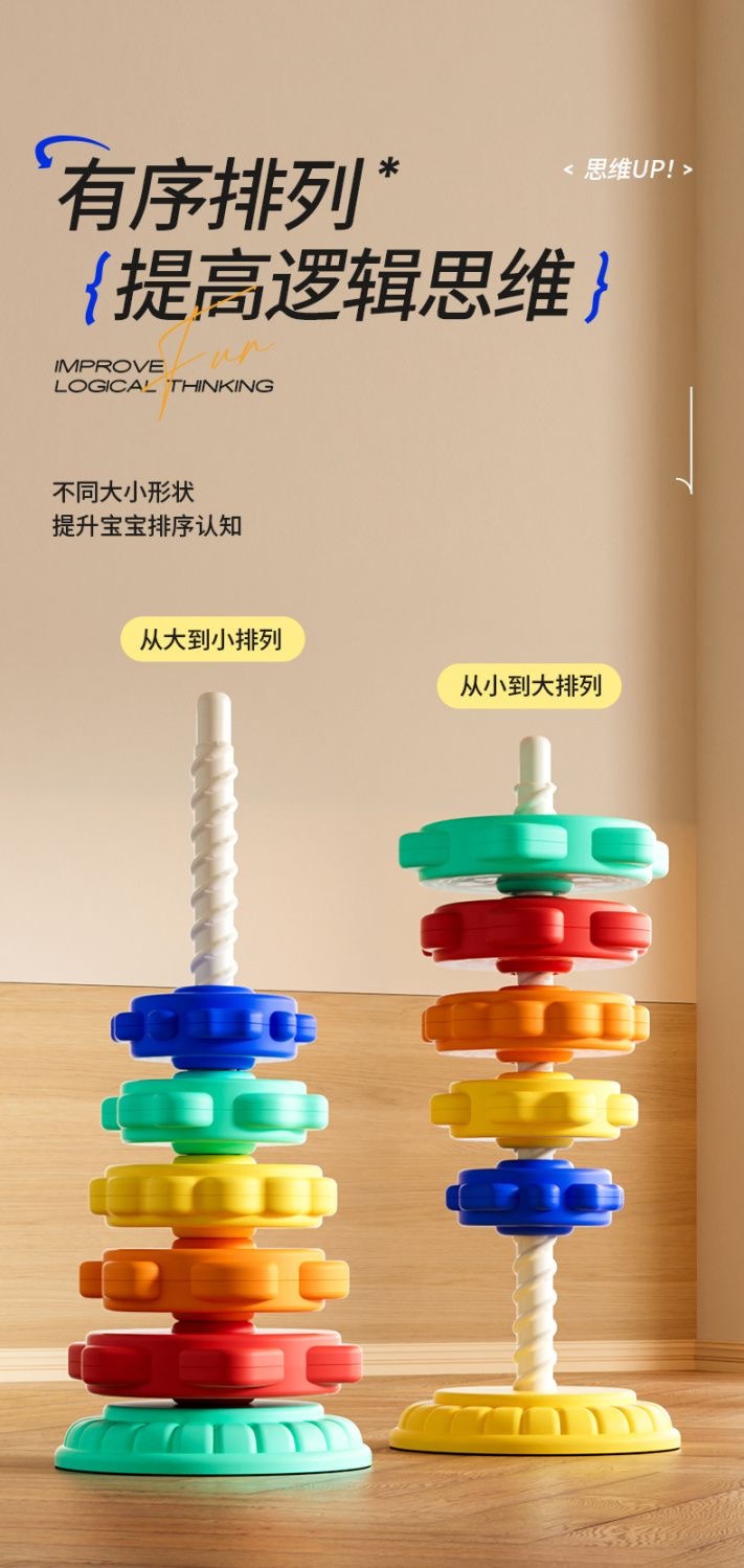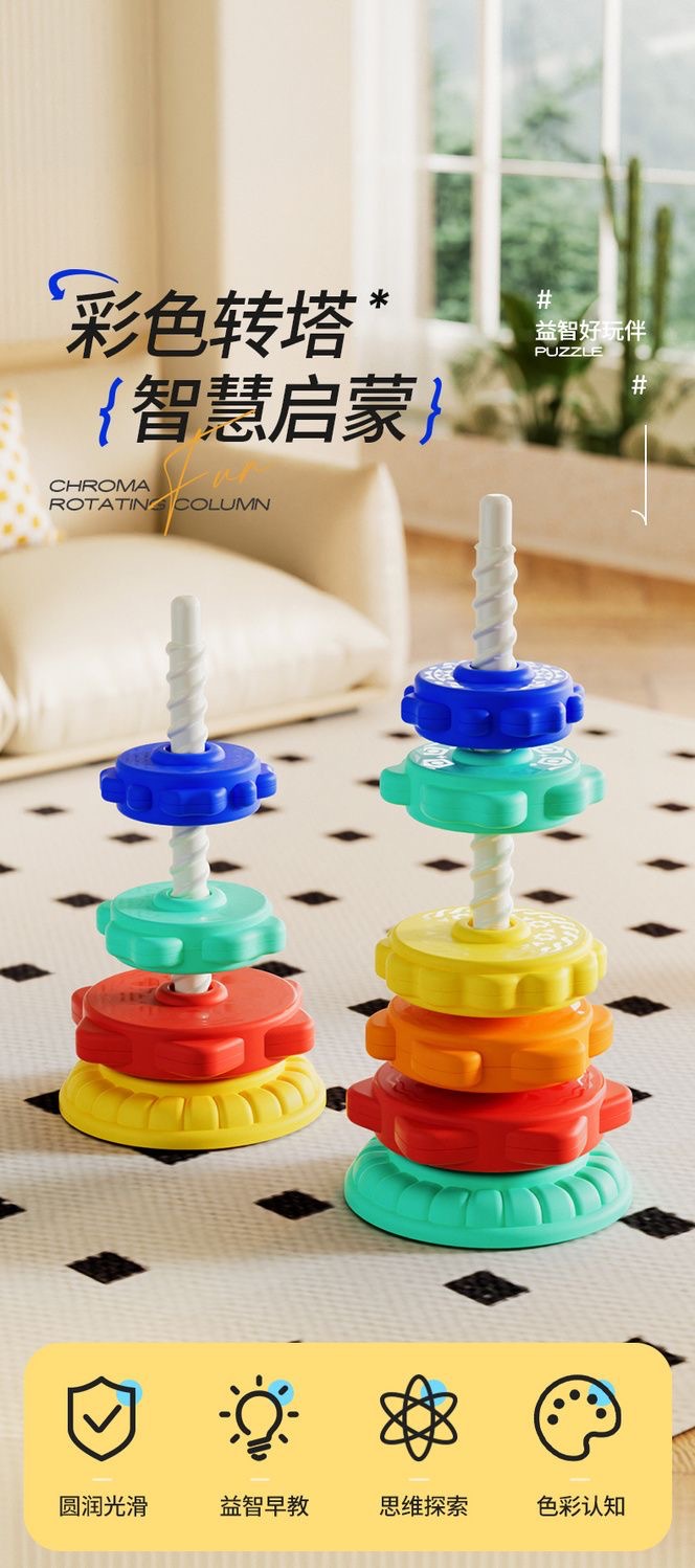 Детская радуга превращается в музыку, наложение цветных колец, младенец 1 ребенок 3 поворота башни головоломки игрушки раннего образования