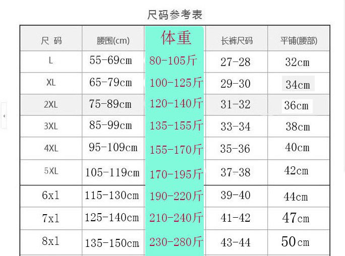 L (80-100 фунтов); XL (100-120 фунтов); 2XL (120-140 фунтов); 3XL (140-155 фунтов); 4XL (155-170 фунтов); 5XL (165-180 фунтов); 6XL (180-200 фунтов)