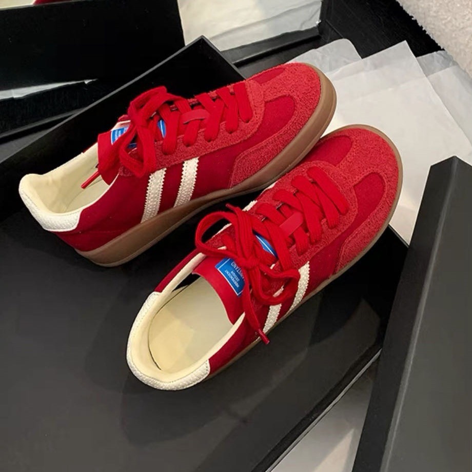 Женские кроссовки из натуральной кожи в ретро-стиле, красные, спортивные, повседневные, с комбинированным дизайном, в стиле Форреста Гампа, универсальные, 2025 года.