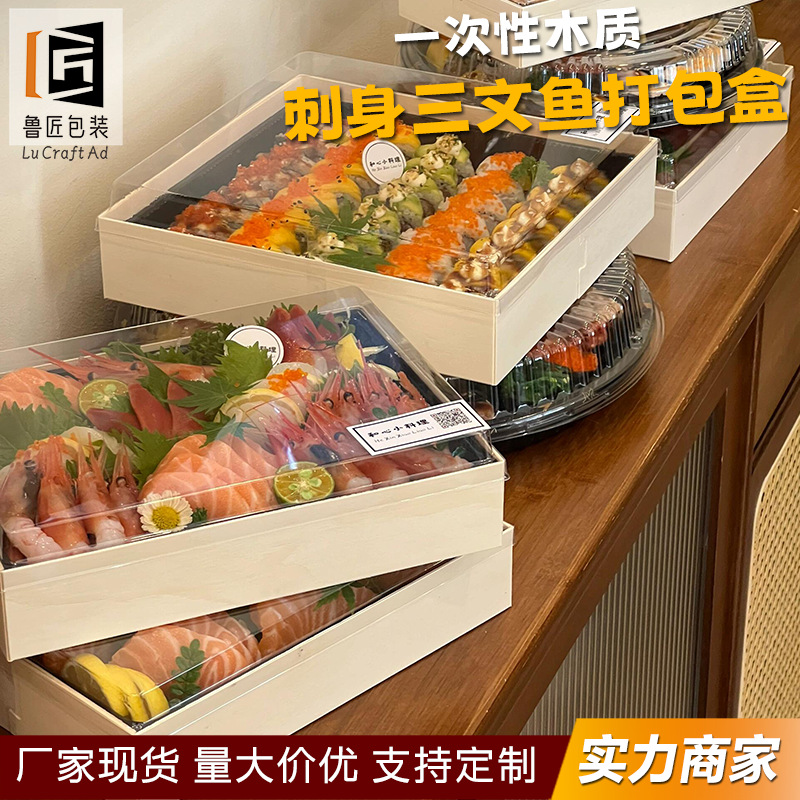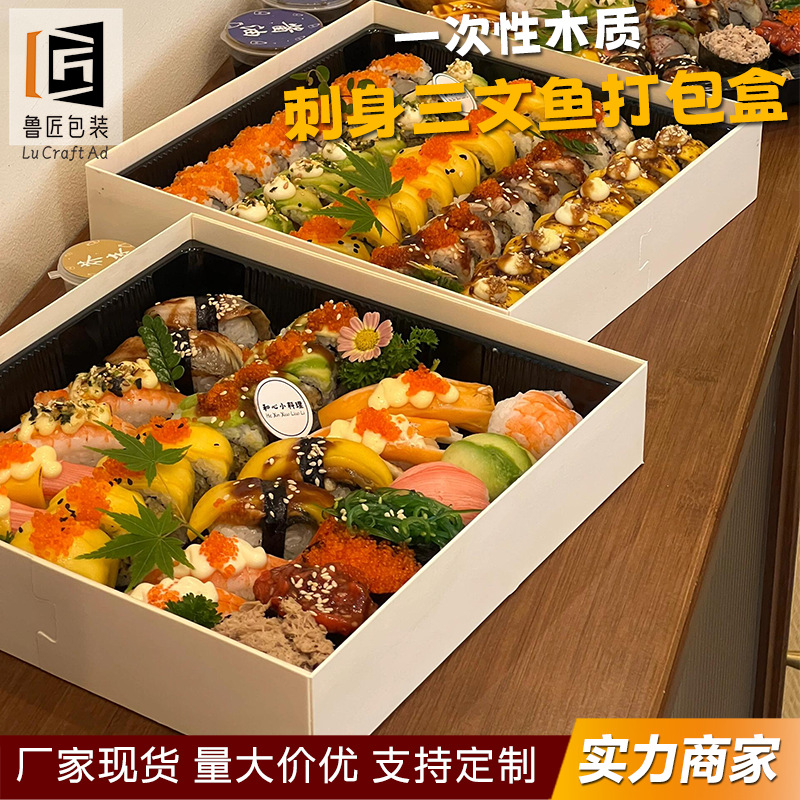 Одноразовая упаковка для суши из пищевого дерева, подарочная коробка из массива дерева, поднос для сашими из лосося, ланч-бокс, коробка для еды на вынос