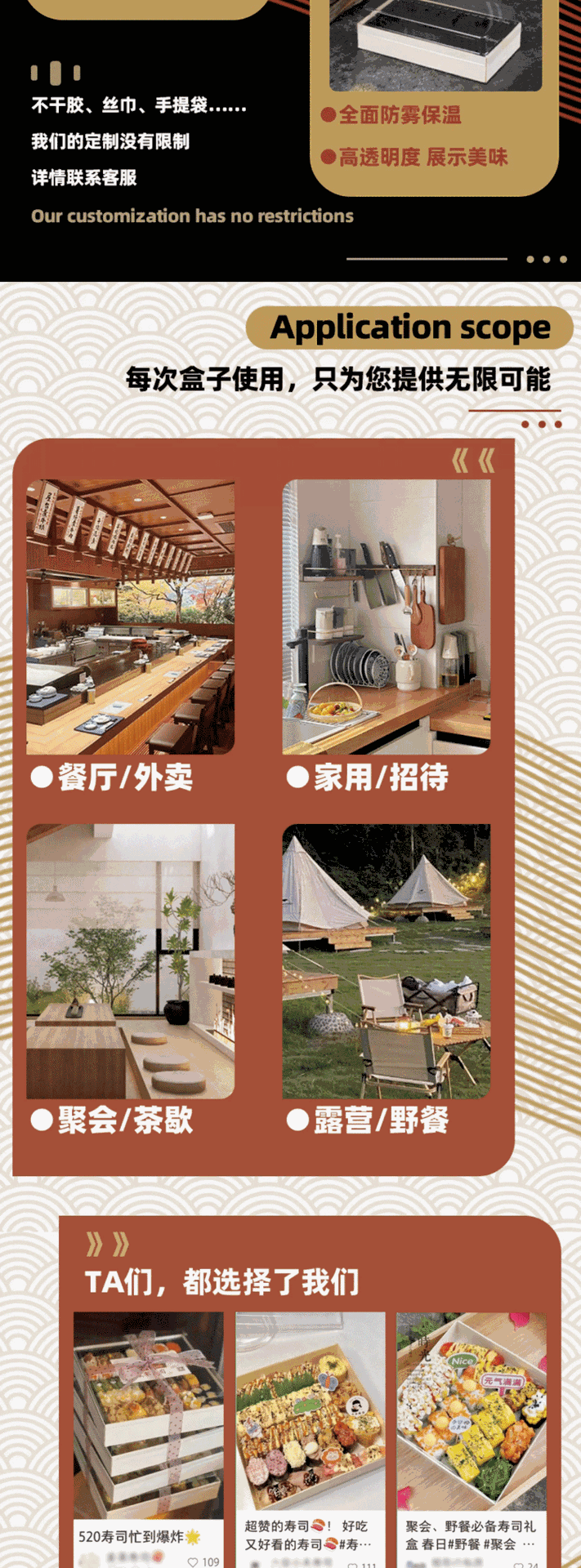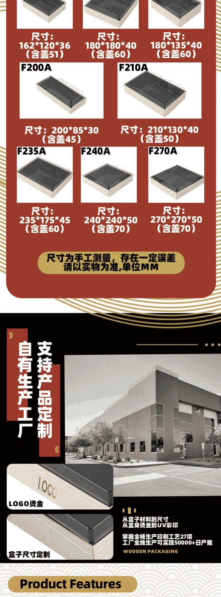 Минимальный объем заказа: 50 комплектов каждого размера. Пожалуйста, заказывайте в кратном количестве 50.; F120-Деревянная коробка + крышка + лоток с одним отделением; F120-Деревянная коробка + крышка + лоток с четырьмя ячейками; F135-A деревянная коробка + крышка + лоток с четырьмя ячейками; F140-Деревянная коробка + крышка + лоток с одним отделением; F150-Деревянная коробка + крышка + лоток с одним отделением; Деревянная коробка F150-B + крышка + лоток с одним отделением; F162-Деревянная коробка + крышка + лоток с одним отделением; F180-Деревянная коробка + крышка + лоток с одним отделением; F180-Деревянная коробка + крышка + поддон с двойной решеткой; F180-Деревянная коробка + крышка + лоток с четырьмя ячейками; F180-Деревянная коробка + крышка + лоток с девятью ячейками; F180-B деревянная коробка + крышка + лоток с одним отделением; F200-B деревянная коробка + крышка + лоток с одним отделением; Деревянная коробка F200-C + крышка + лоток с одним отделением; F210-B деревянная коробка + крышка + лоток с одним отделением; F235-Деревянная коробка + крышка + лоток с одним отделением; F235-Деревянная коробка + крышка + поддон с двойной решеткой; F235-Деревянная коробка + крышка + лоток с шестью ячейками; F240-Деревянная коробка + крышка + лоток с одним отделением; F240-Деревянная коробка + крышка + лоток с четырьмя ячейками; F240-Деревянная коробка + крышка + лоток с девятью ячейками; F270-Деревянная коробка + крышка + лоток с одним отделением; F270-Деревянная коробка + крышка + лоток с четырьмя ячейками; F270-Деревянная коробка + крышка + лоток с шестью ячейками; F270-Деревянная коробка + крышка + лоток с девятью ячейками; 50 комплектов поясных уплотнений (требуются примечания к спецификациям и образцам); Наклейки сашими 50 комплектов; Наклейки для суши 50 комплектов