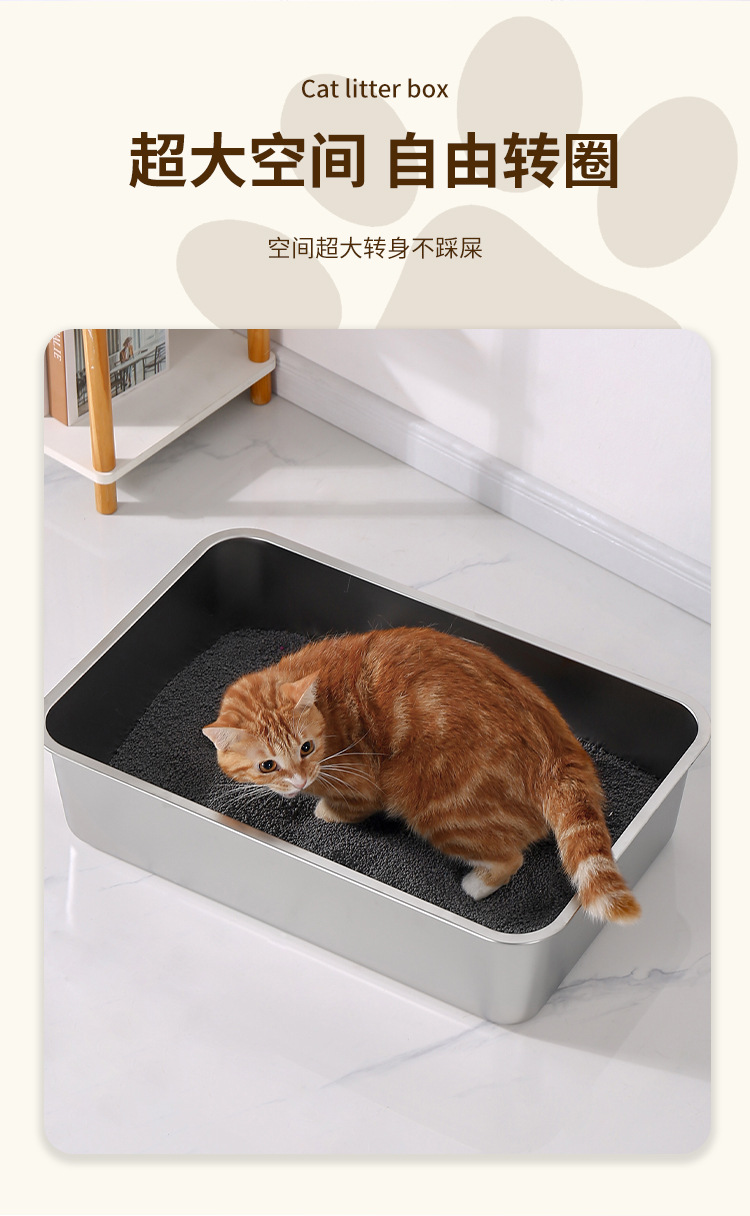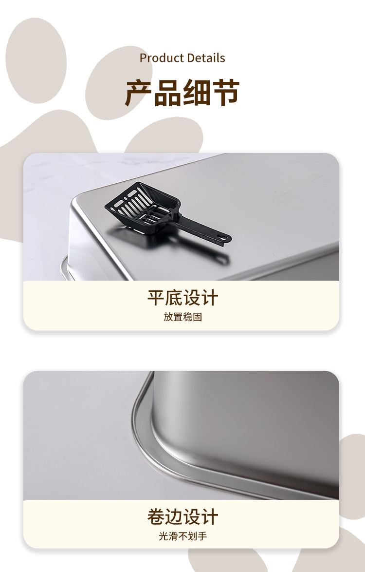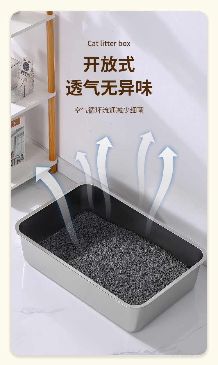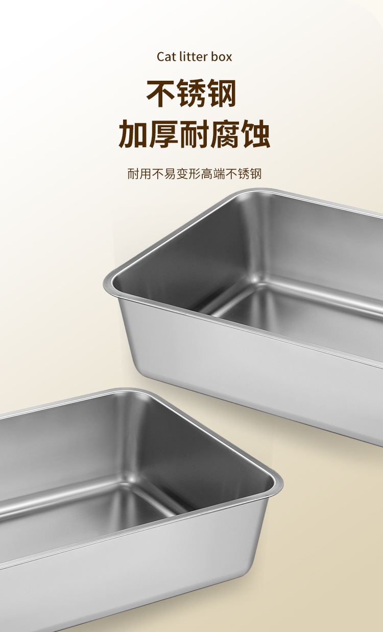 Трансграничный лоток для кошачьего туалета из нержавеющей стали, большой лоток для домашних животных, антикоррозийный квадратный лоток с плоским дном, оптовый глубокий и утолщенный лоток для кошек