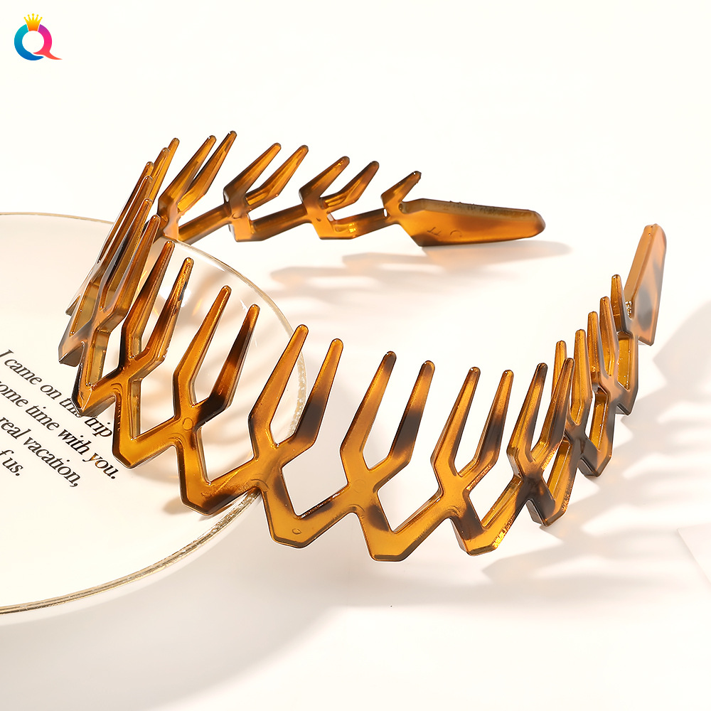 Qiyue хит продаж, волнистый обруч для волос из ПК, повязка на голову для мытья лица с зубчатым противоскользящим отверстием для волос, высококачественная шпилька для волос Иу, аксессуары для волос оптом