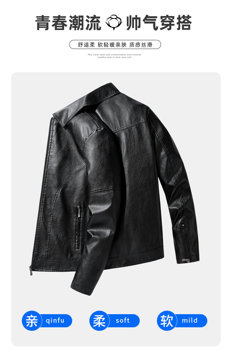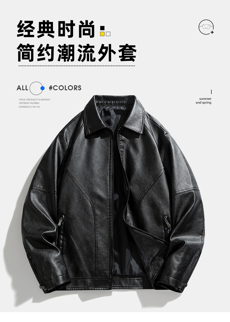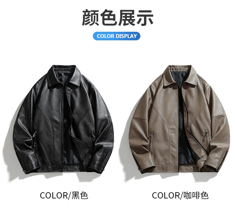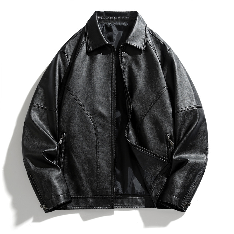 2024 новая мужская кожаная куртка с отворотом мотоциклетная куртка кожаная мужская корейская версия свободная одноразовая молодежная мужская одежда