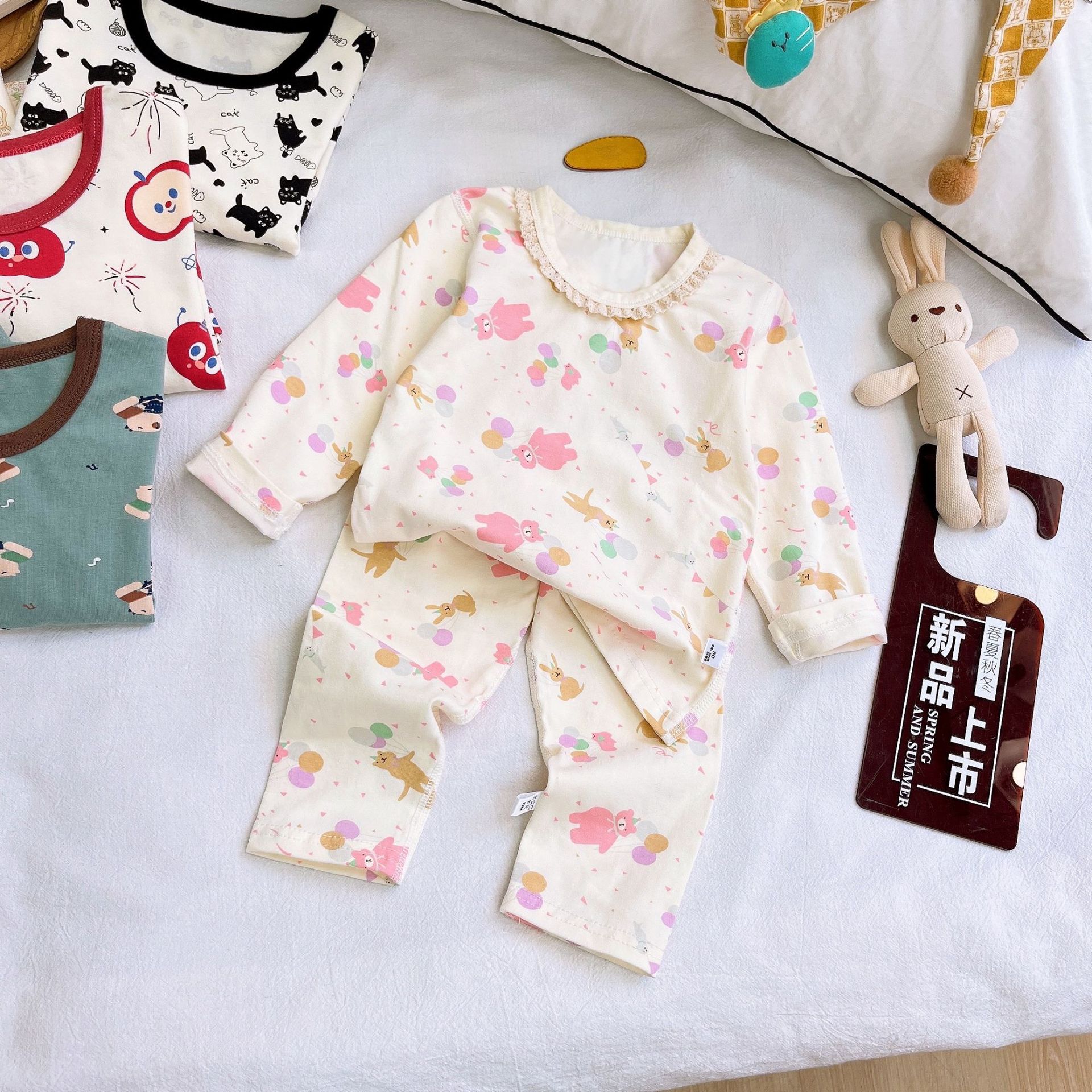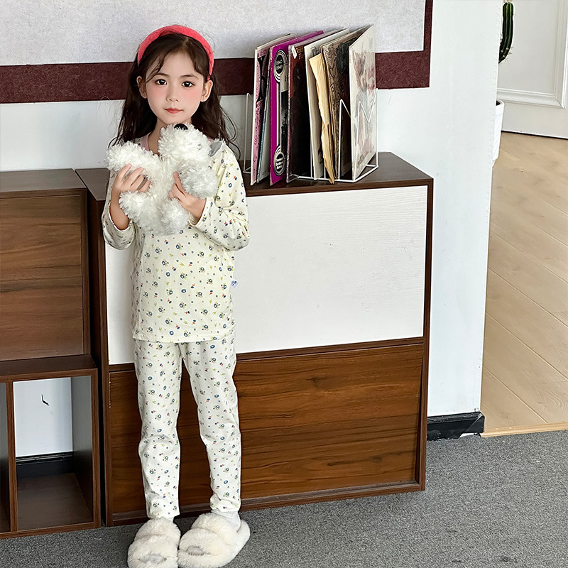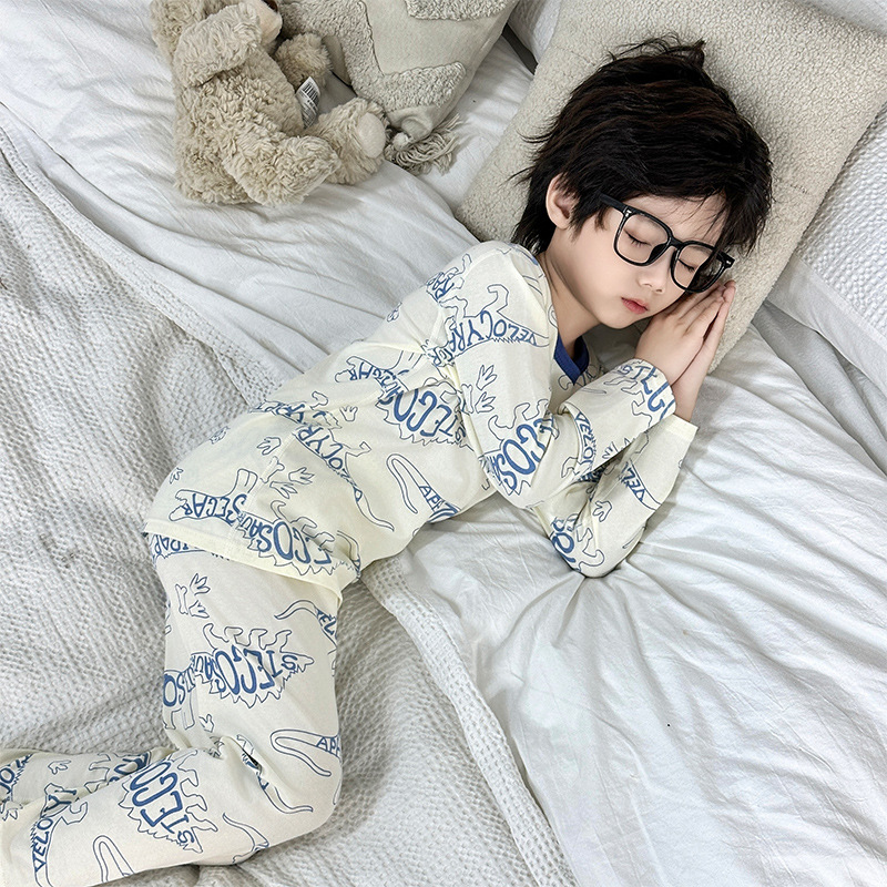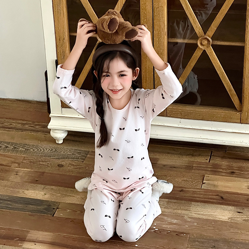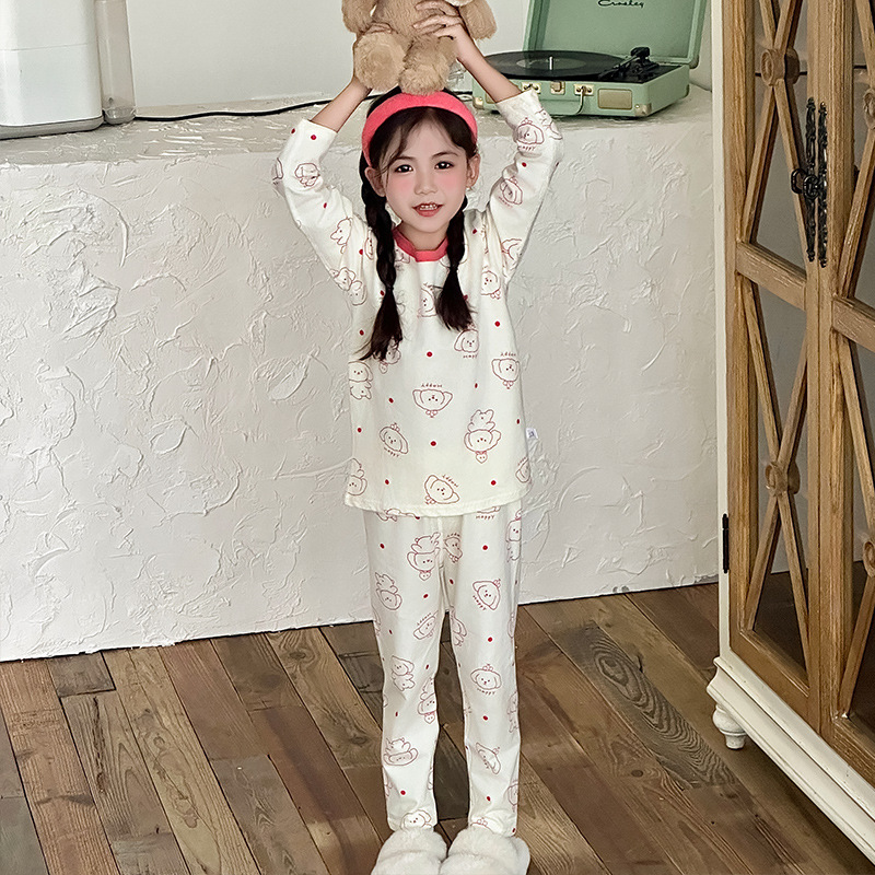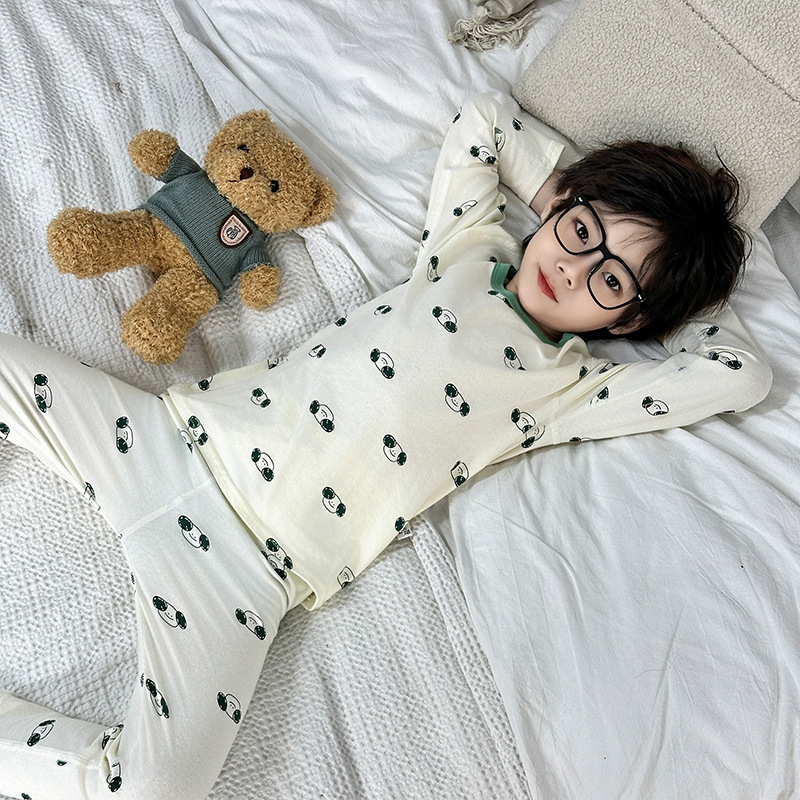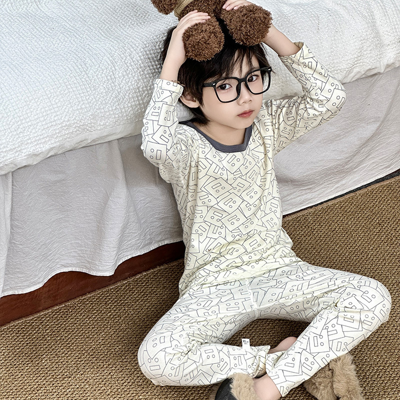 Осенне-зимний новый детский пижамный комплект осенняя одежда и осенние брюки без костей из лайкры для мальчиков и девочек из чистого хлопка категории Домашняя одежда