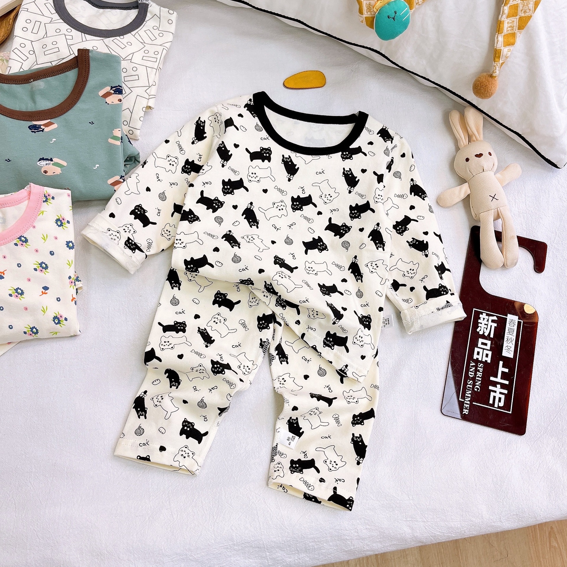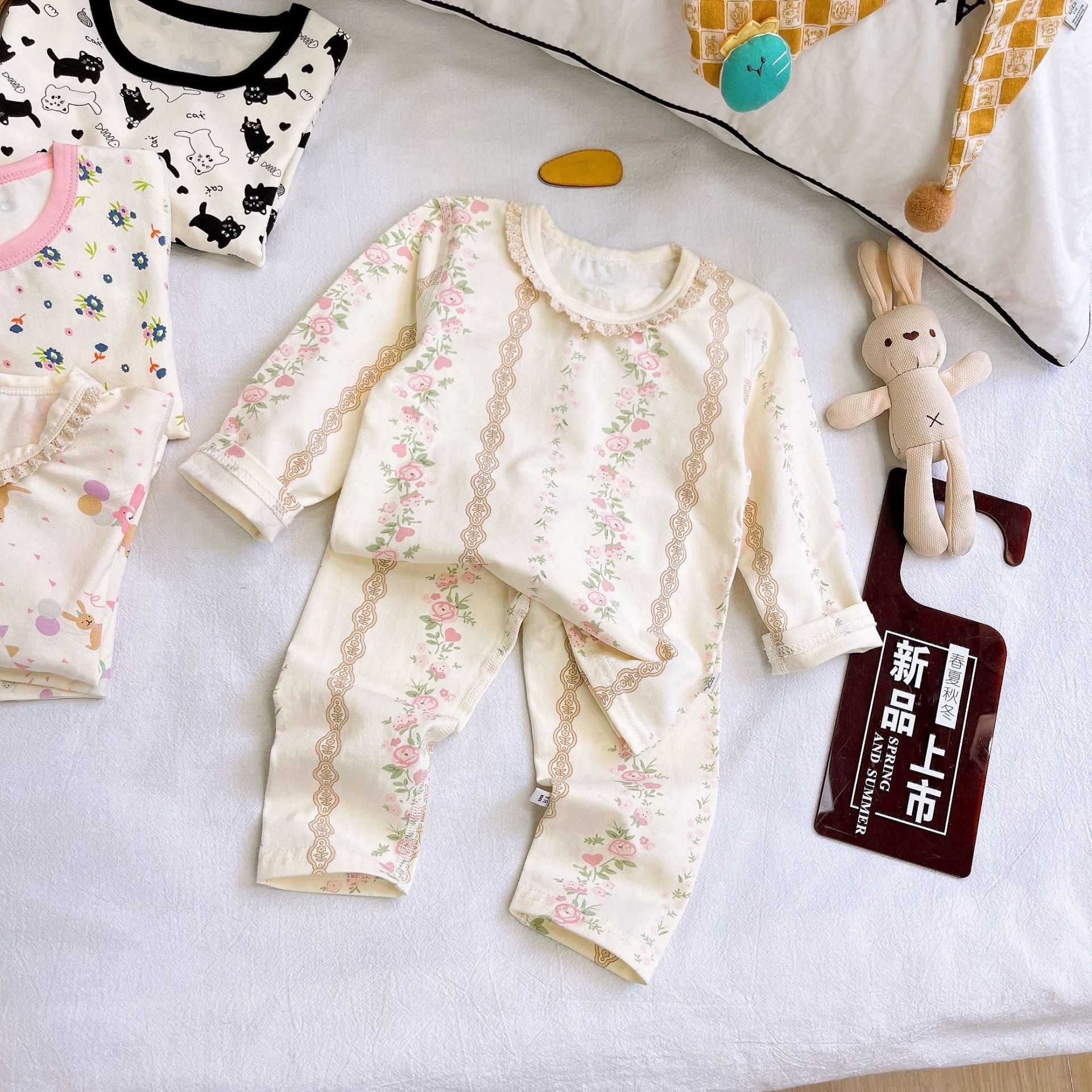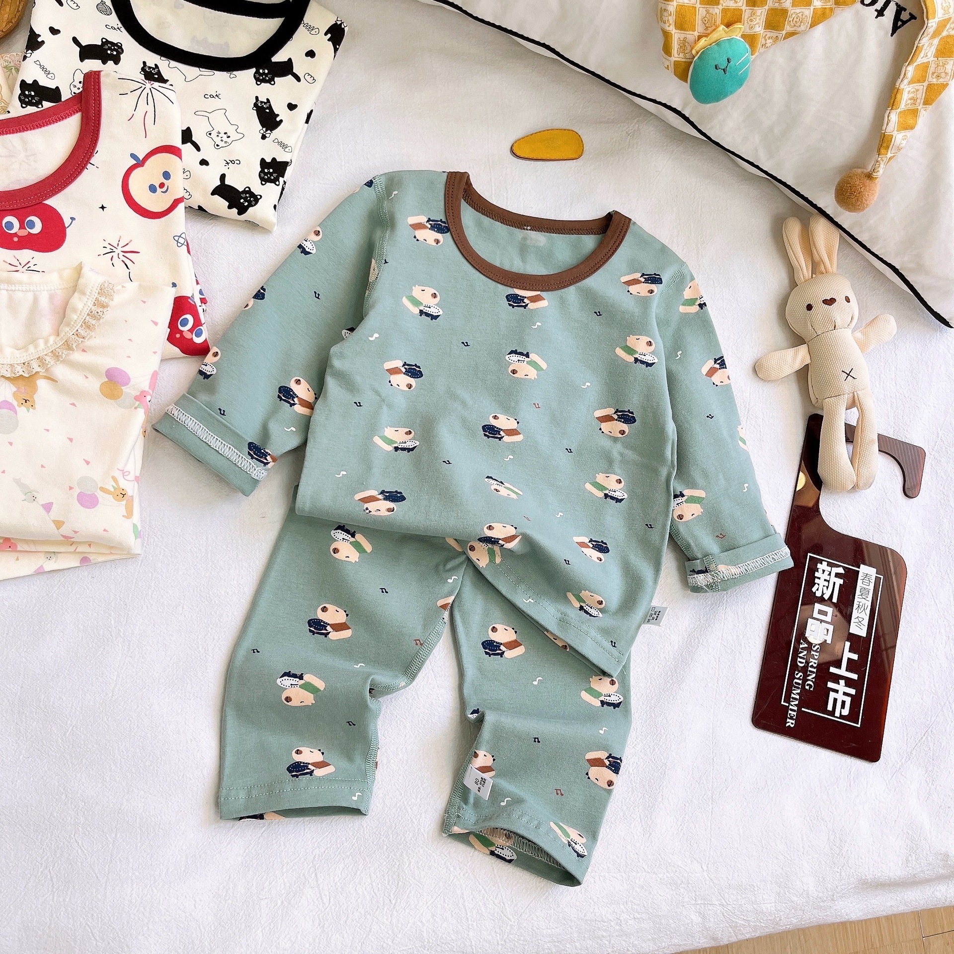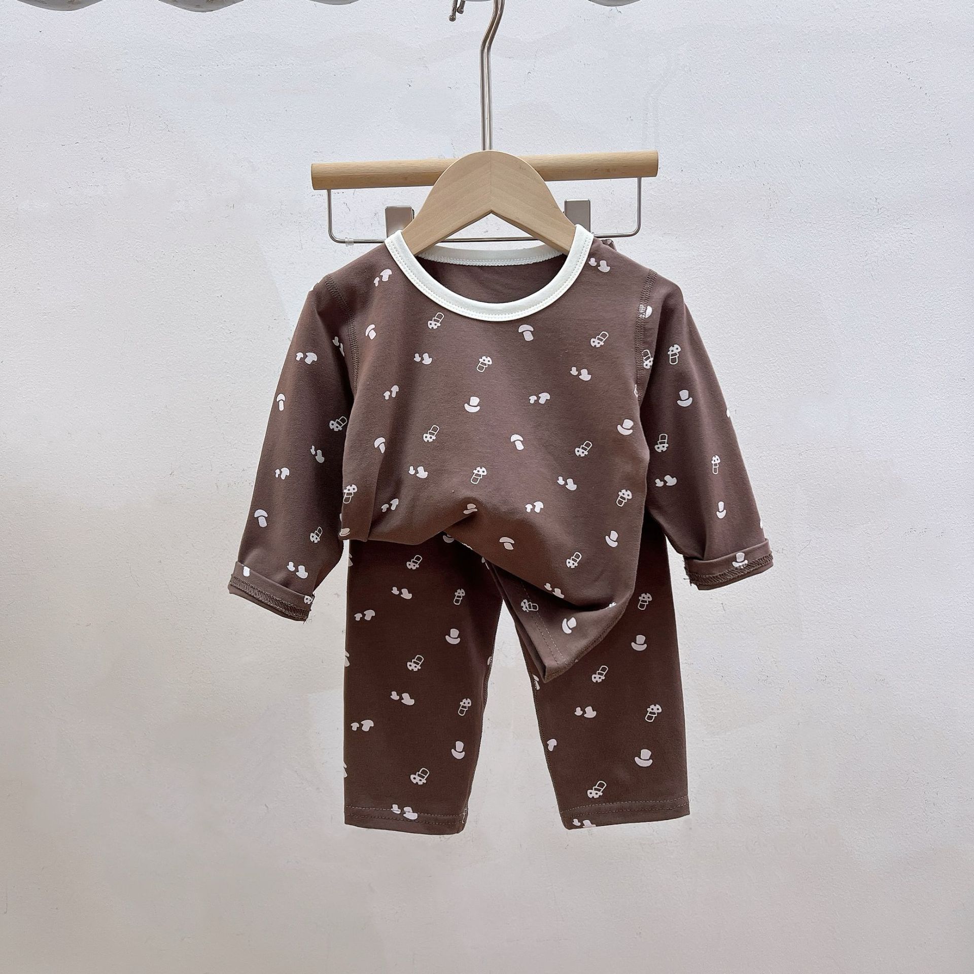 Осенне-зимний новый детский пижамный комплект осенняя одежда и осенние брюки без костей из лайкры для мальчиков и девочек из чистого хлопка категории Домашняя одежда