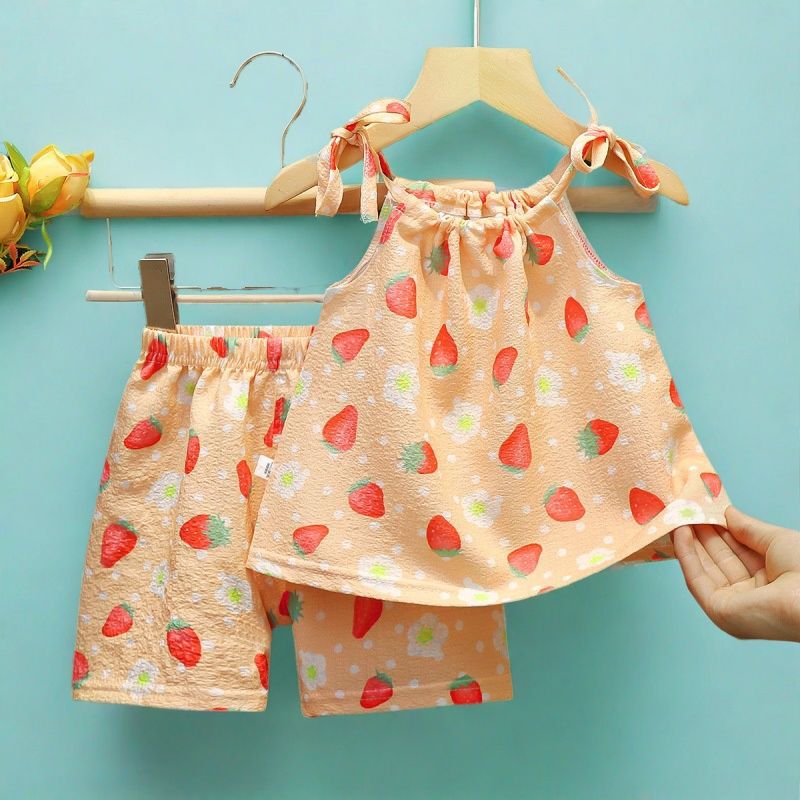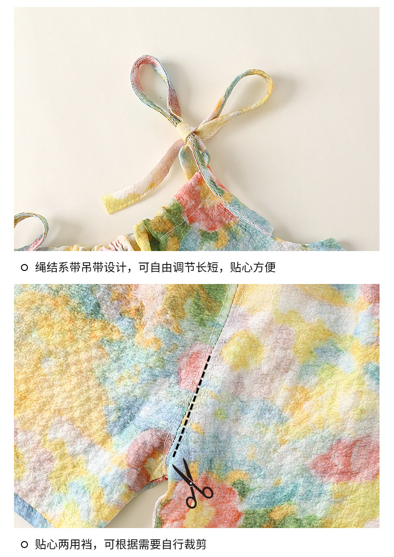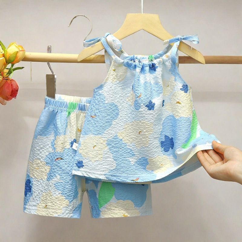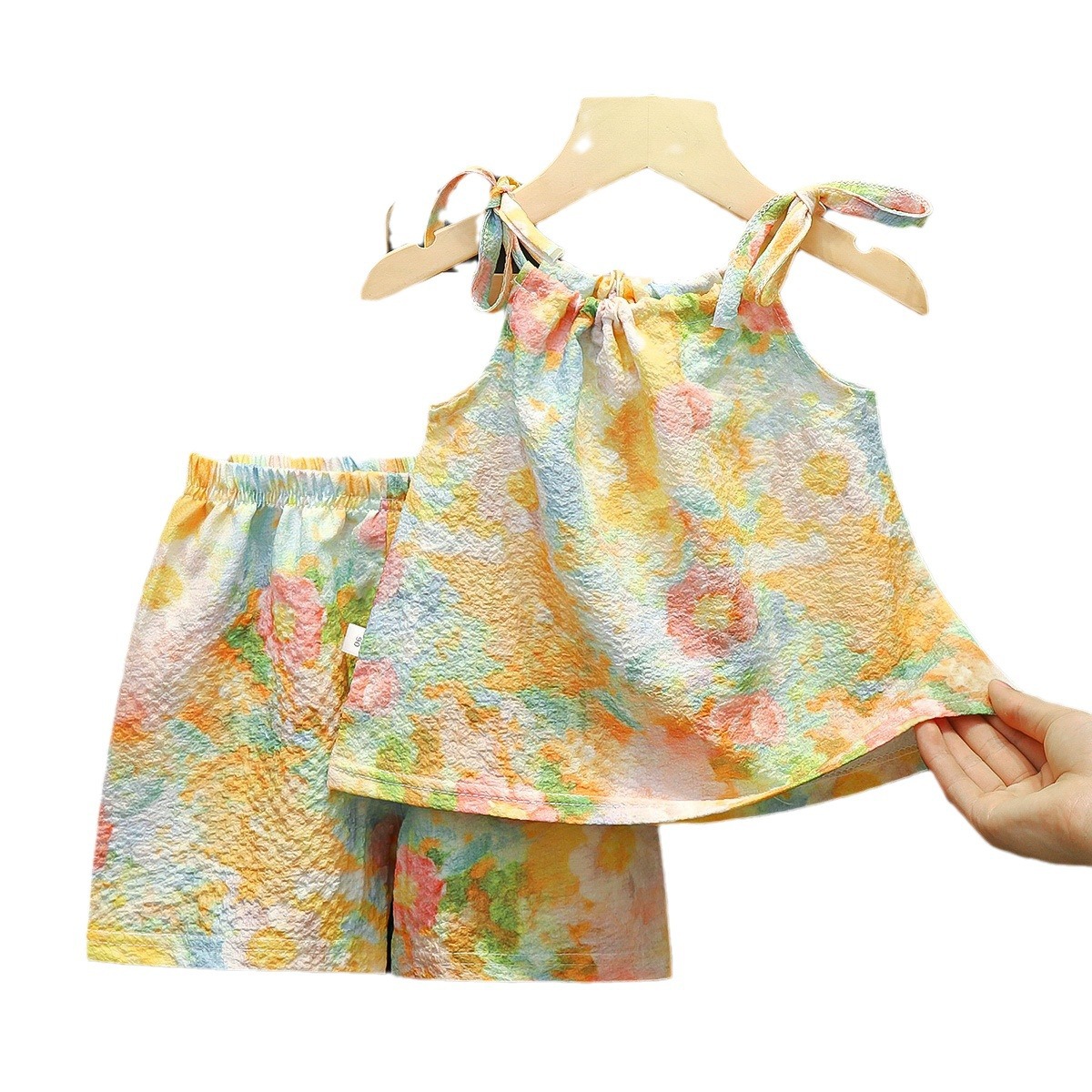 Новый летний костюм на подтяжках в корейском стиле с цветочным принтом, шорты, комплект из двух предметов, летняя одежда в западном стиле, детская одежда для девочек, весенняя дропшиппинг для девочек