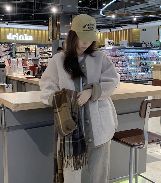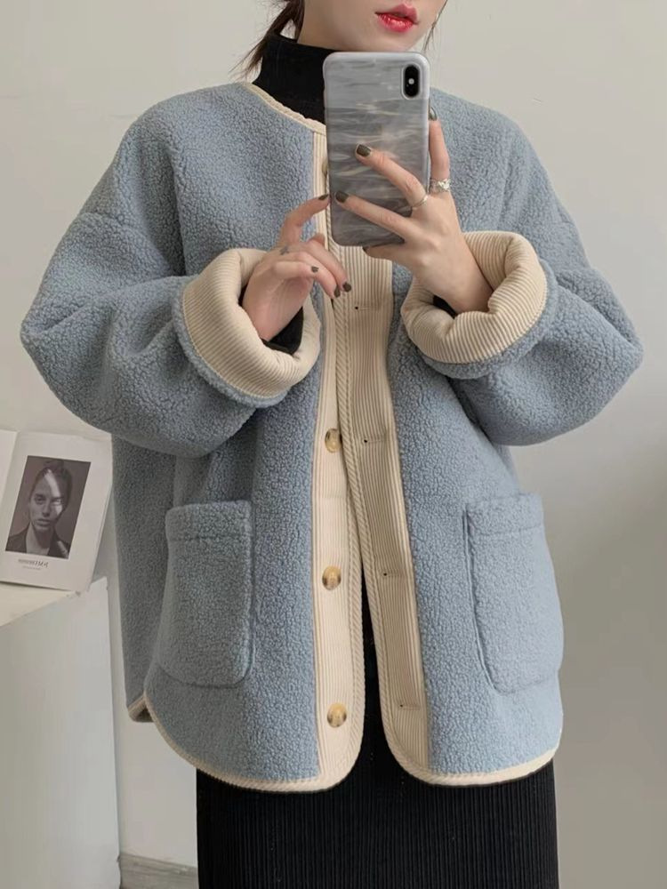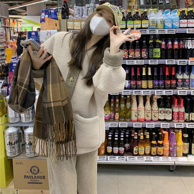 (Официальная картинка) контрастная ретро-шерсть ягненка женская новая маленькая ароматная ветерка свободная толстая средняя длинная модель