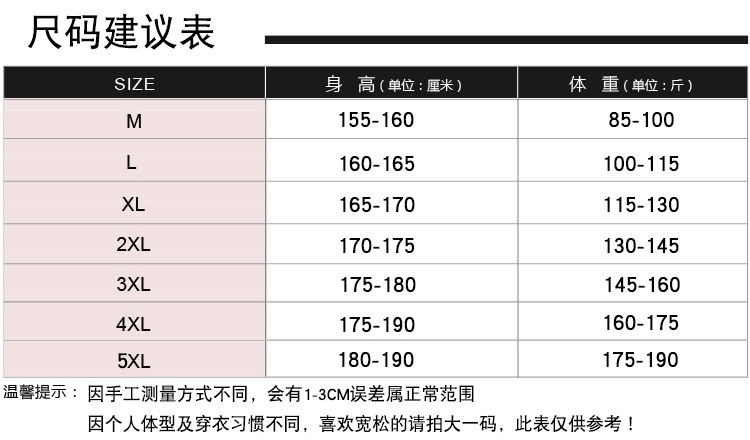 Код М【42.5-50kg】; Код L【 50-57.5kg 】; Код XL【57.5-65kg】; Код 2XL【65-72.5kg】; Код 3XL【72.5-80kg】; Код 4XL【80-87.5kg】; Код 5XL【87.5-95kg】