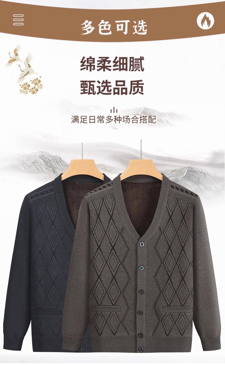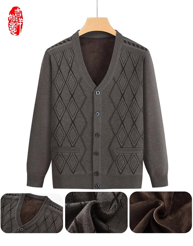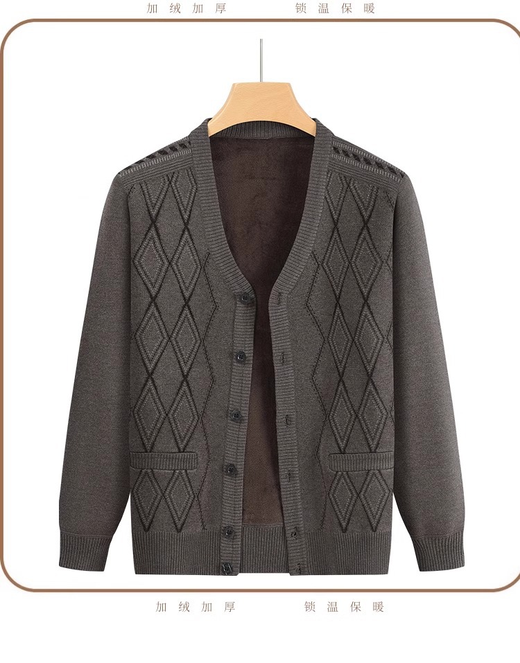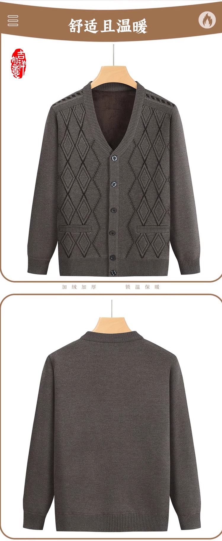 Дедушка теплая одежда осенью и зимой теплая мужская свитер кардиган с бархатным толстым папа вязаная куртка