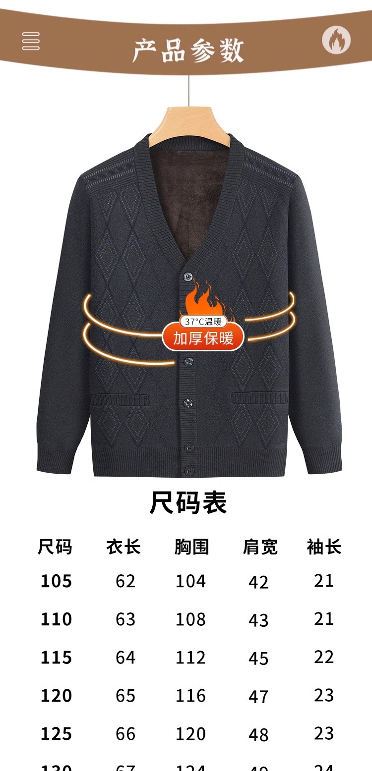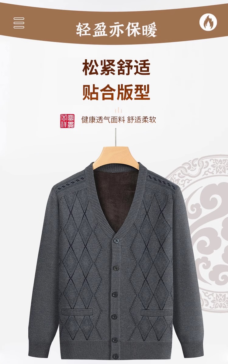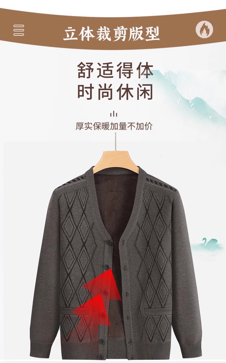 Дедушка теплая одежда осенью и зимой теплая мужская свитер кардиган с бархатным толстым папа вязаная куртка