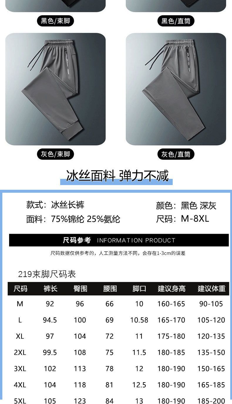 Легкие брюки из ледяного шелка для мужчин летние быстрые сухие брюки с кондиционером свободные прямые брюки Спортивные брюки с высокой эластизой