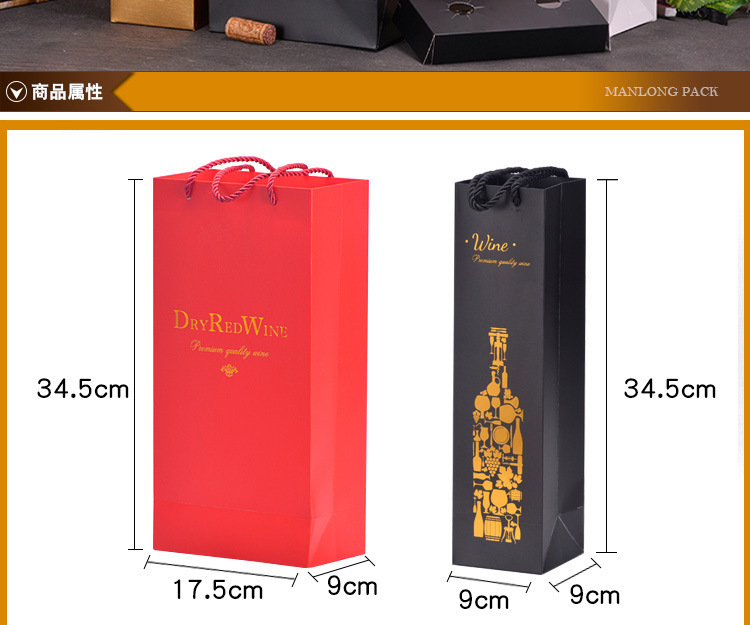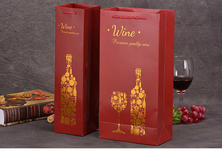 Новые одноместные двойные красные красные бумажные коробки универсальные винные упаковочные бумажные пакеты из воловьей кожи сумки высокого класса подарочные пакеты