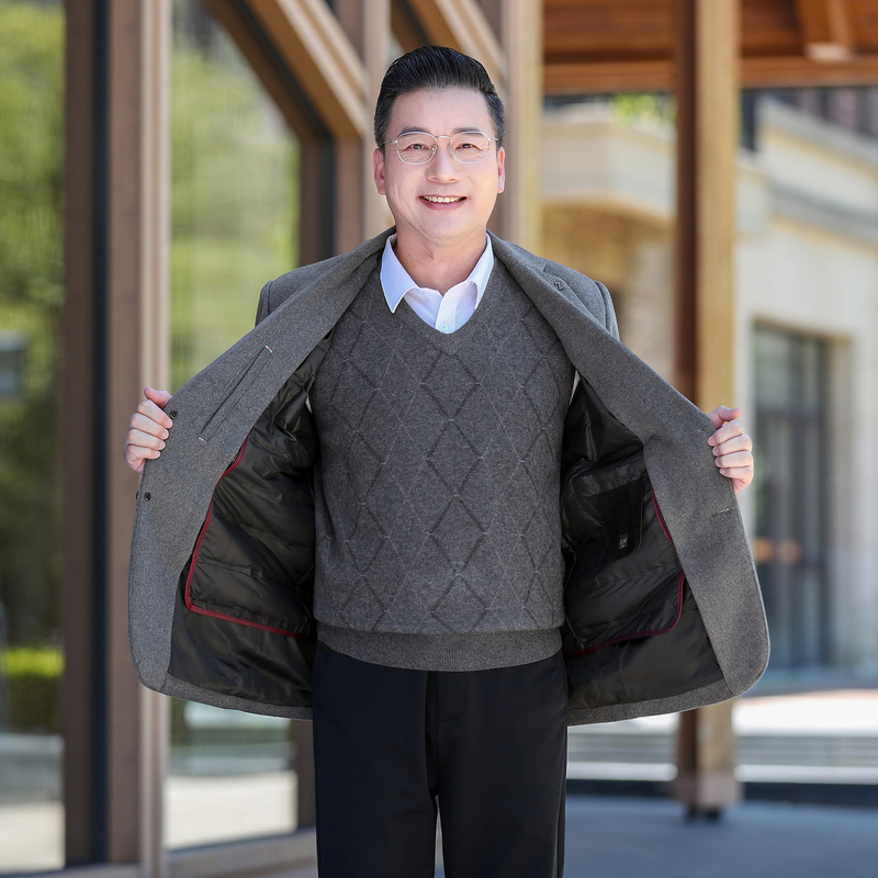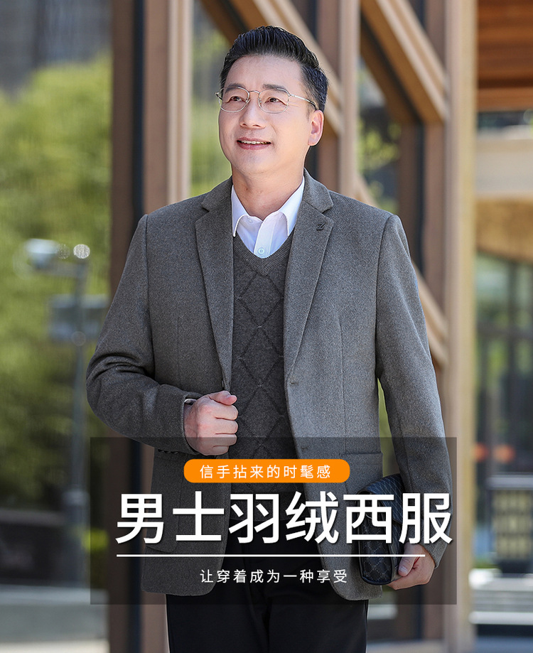 Зимний новый мужской пуховый костюм куртка мужской корейской версии тонкая, теплый и повседневный белый утка шерстяной костюм