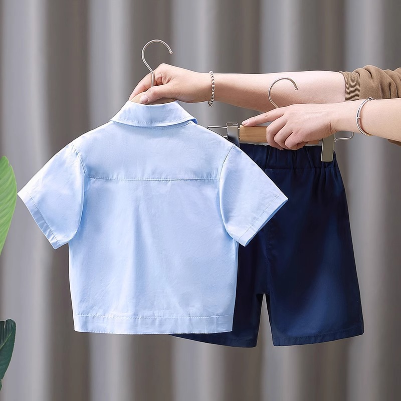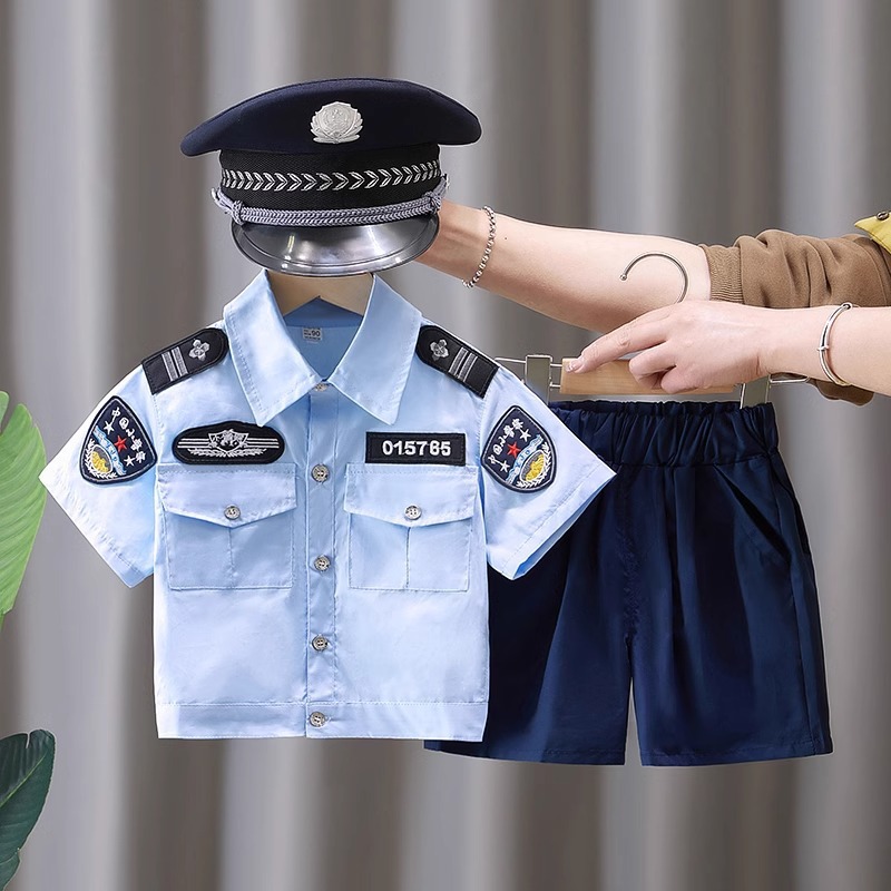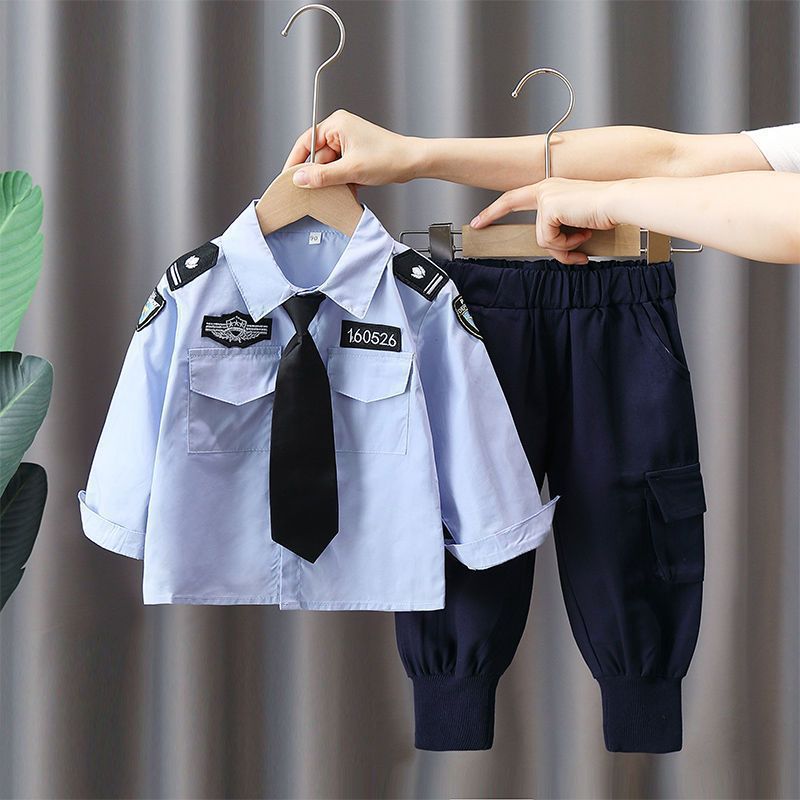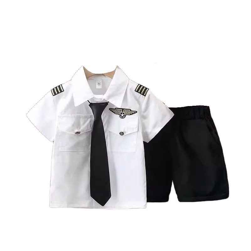 Мальчик летняя одежда 2024 новый детский самолет униформа рубашка галстук два комплекта одежды для шерифа