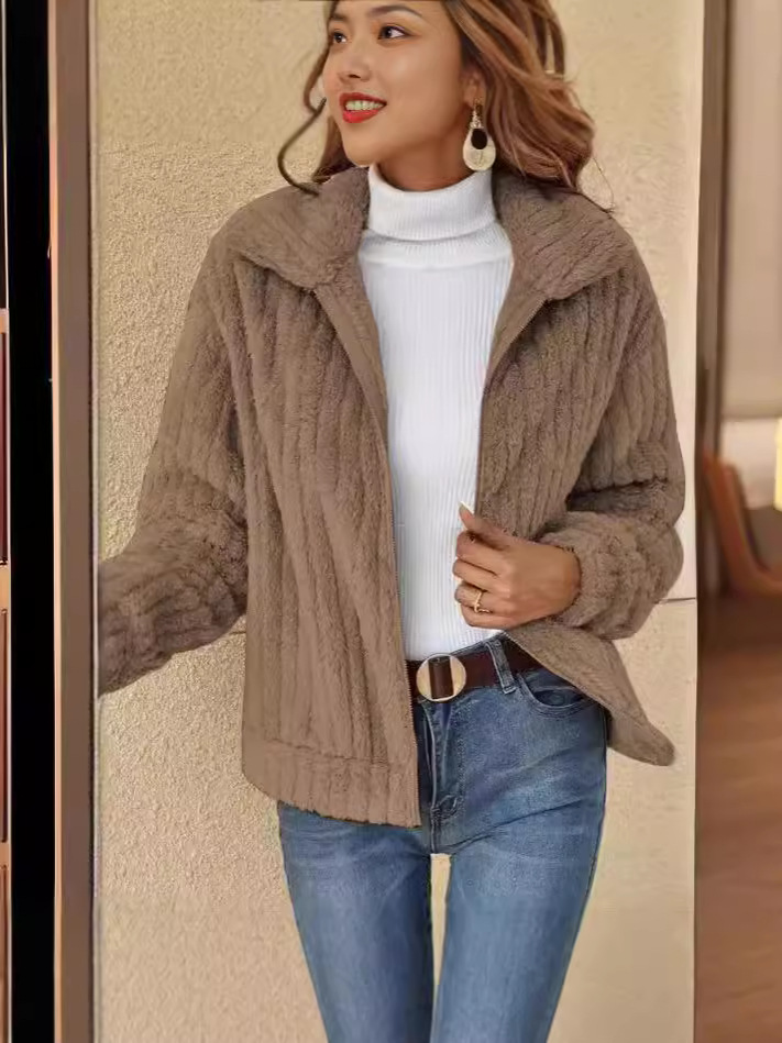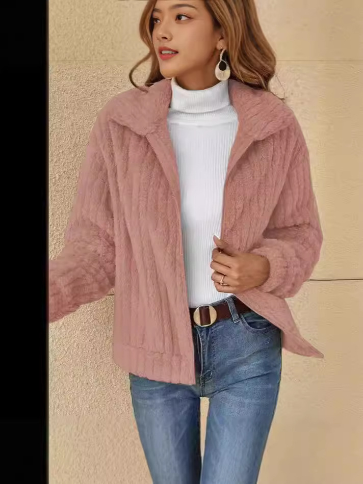 2024 трансграничные новые осенние и зимние плюшевые кардиганы с лацканными воротами короткая куртка