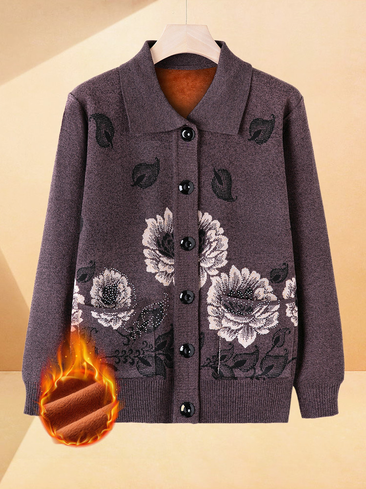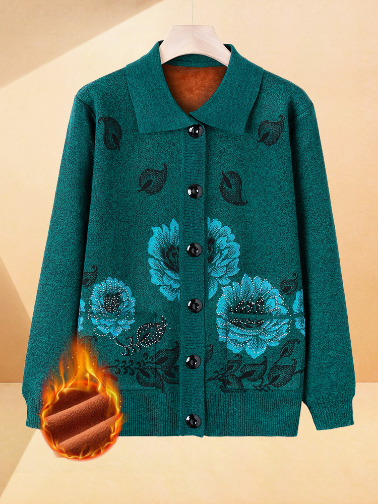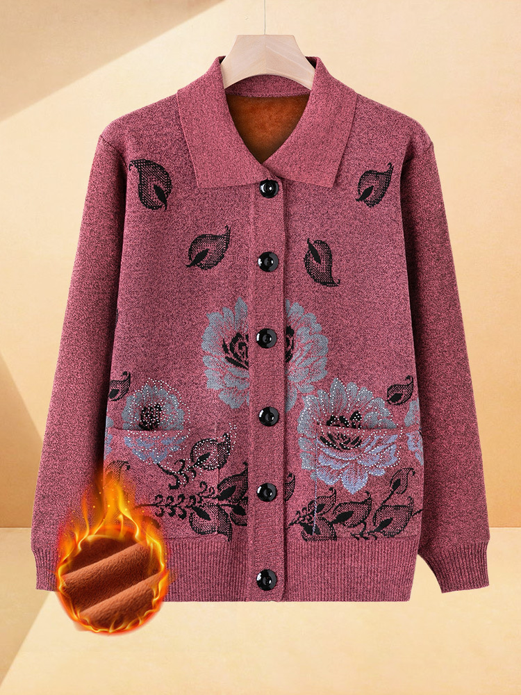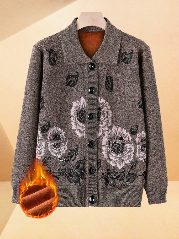 Осенне-зимний утепленный кардиган на флисовой подкладке для женщин среднего и старшего возраста, одежда для мам 60 лет, осенний наряд для пожилых женщин, вязаный свитер.