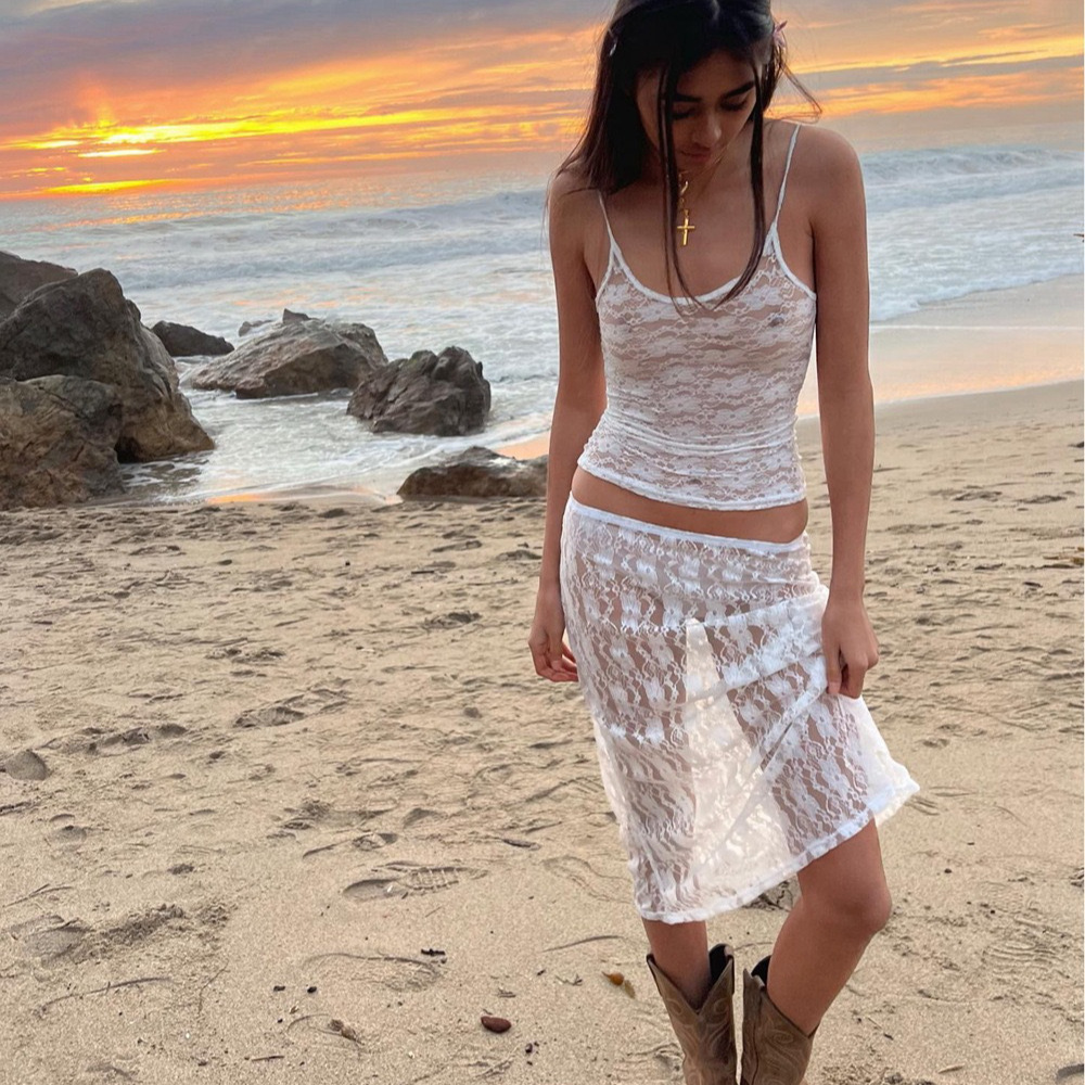 Трансграничная новая женская стройная, тонкая маленькая подтяжка, кружевная перспектива, сексуальный топ