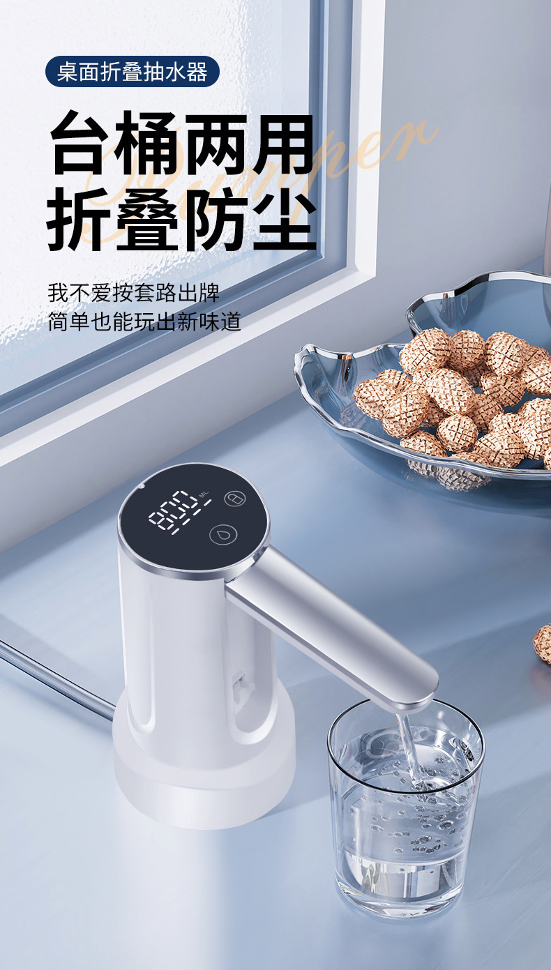 Интеллектуальный портативный настольный водяной насос с таймером и количеством, двойного назначения, для бутилированной воды, бытовой складной электрический водяной насос