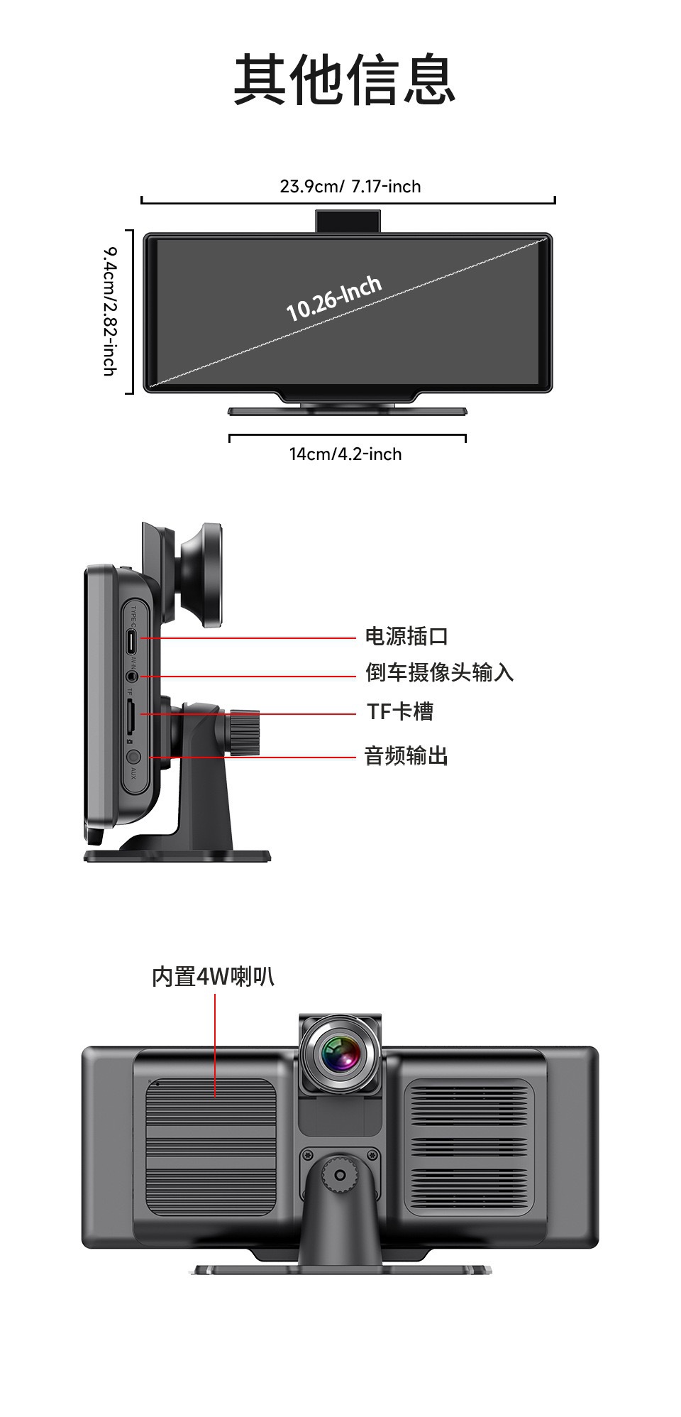 10.26 Apple Carplay Android Auto Smart Screen Портативный PND Автомобильная навигация WIFI Bluetooth двойной записи