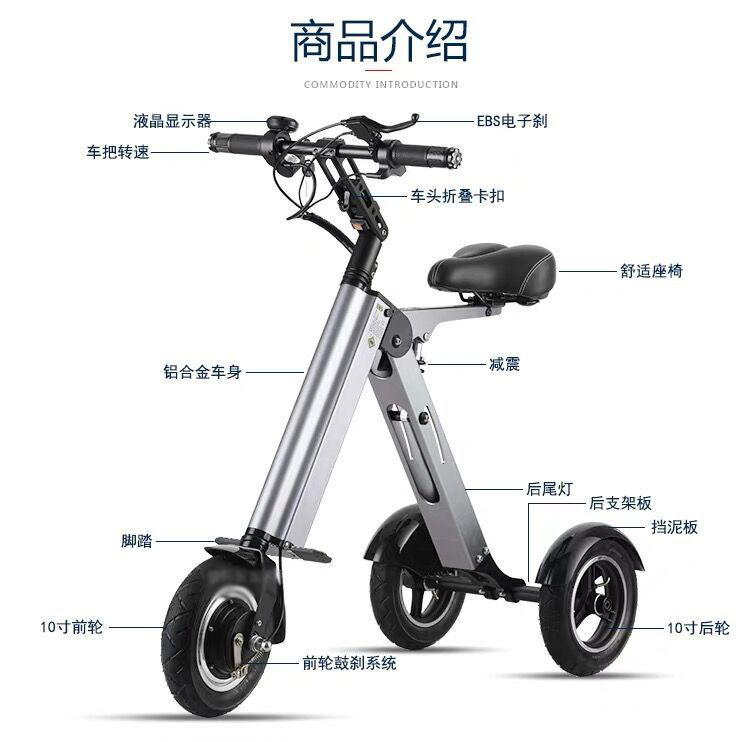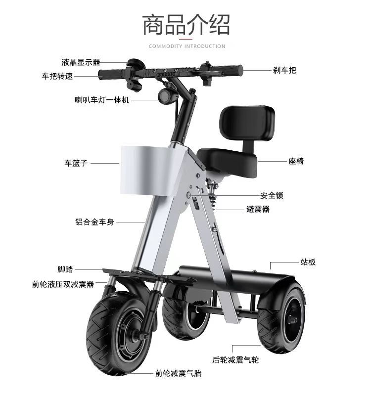Ультралегкий электросамокат для трансграничной торговли, компактный складной велосипед, бытовой трехколесный велосипед для пожилых людей и взрослых, легкий складной