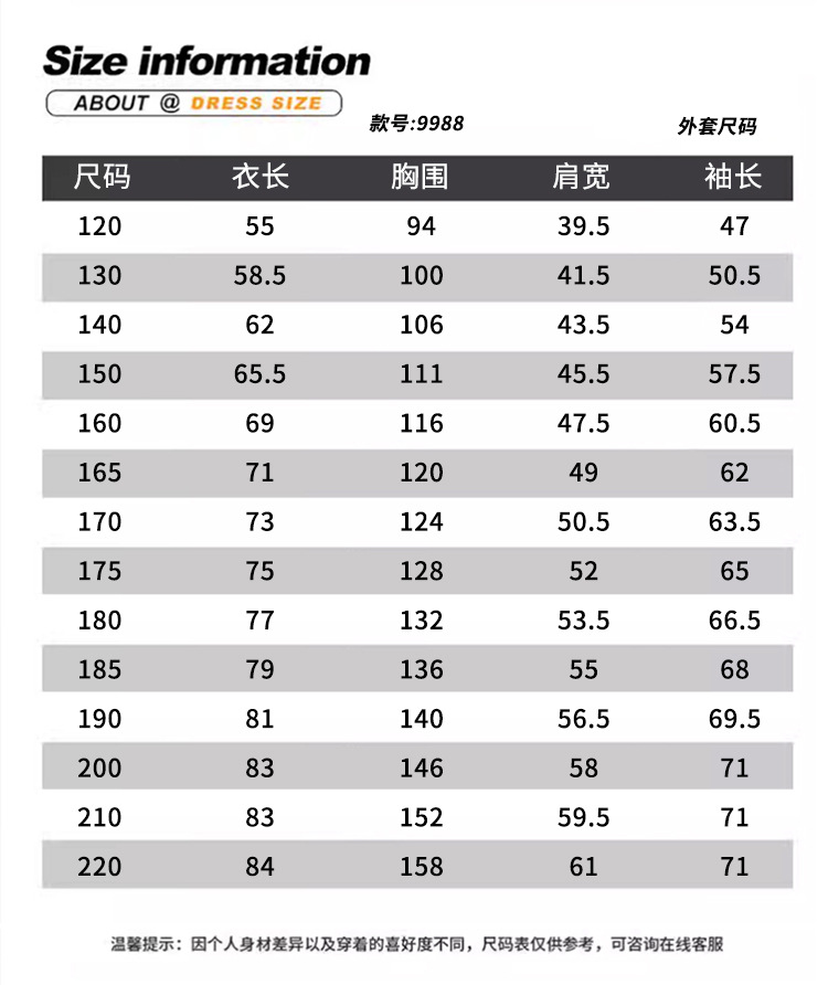 120; 130; 140; 150; 160; 165; 170; 175; 180; 185; 190; 200