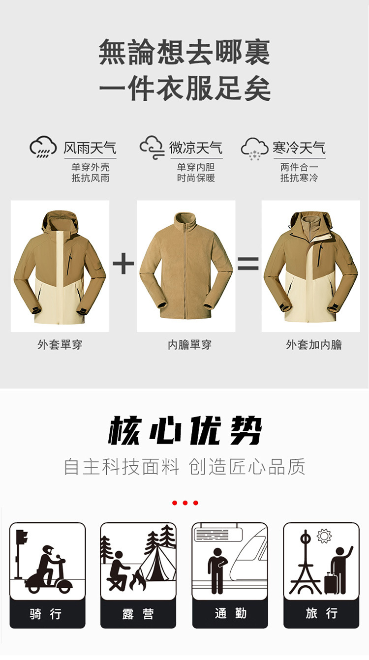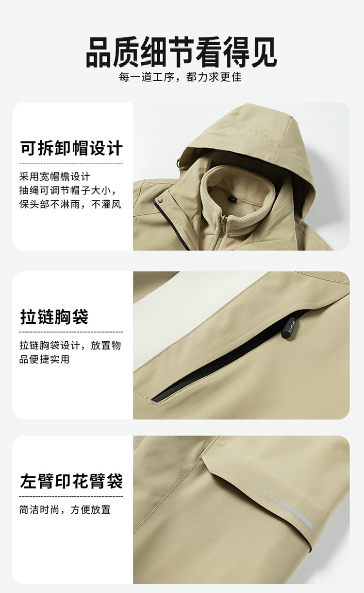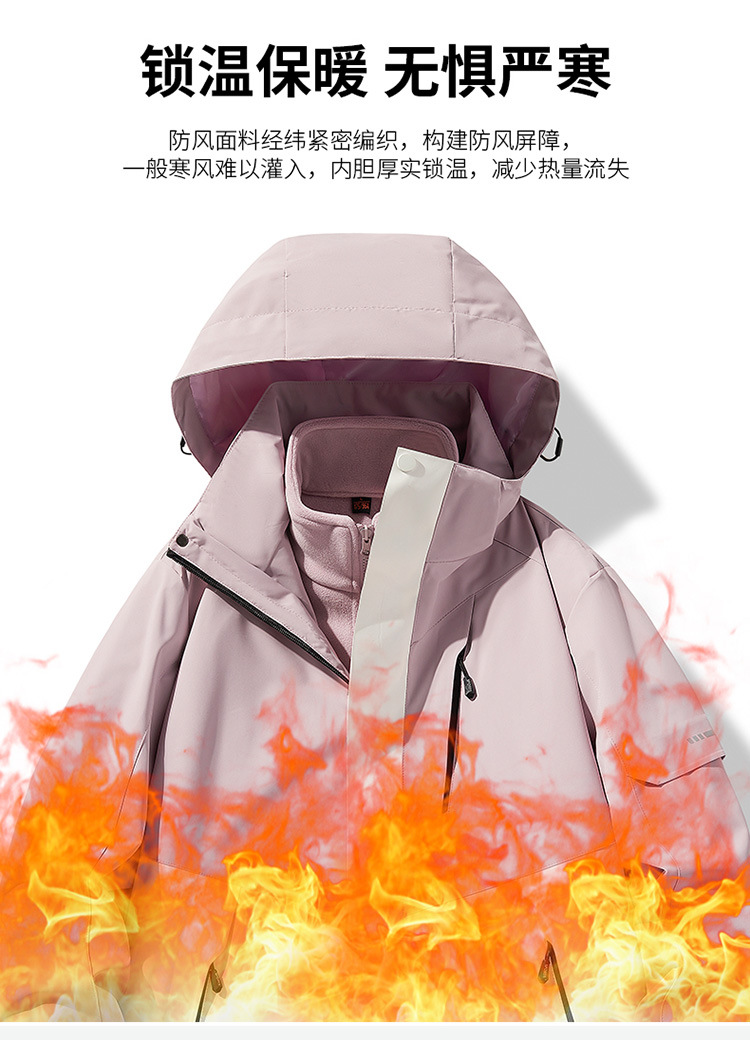 Пара штурмовой одежды женский три в одном антибрызг воды 2024 новый съемный кашемировый вкладыш на открытом воздухе альпинистский костюм мужчина