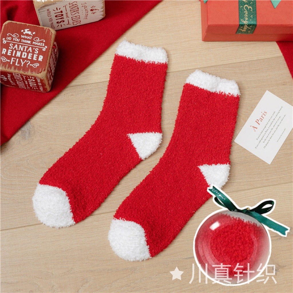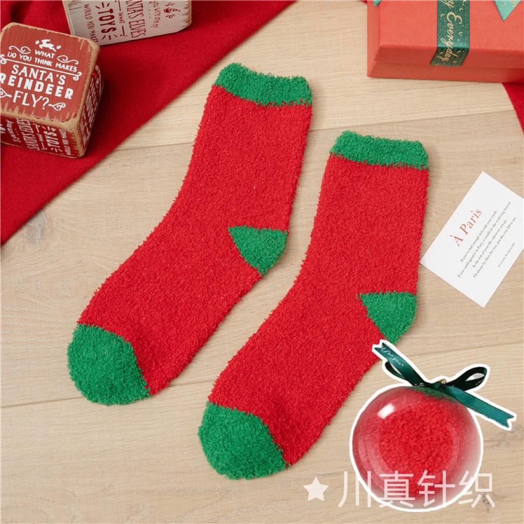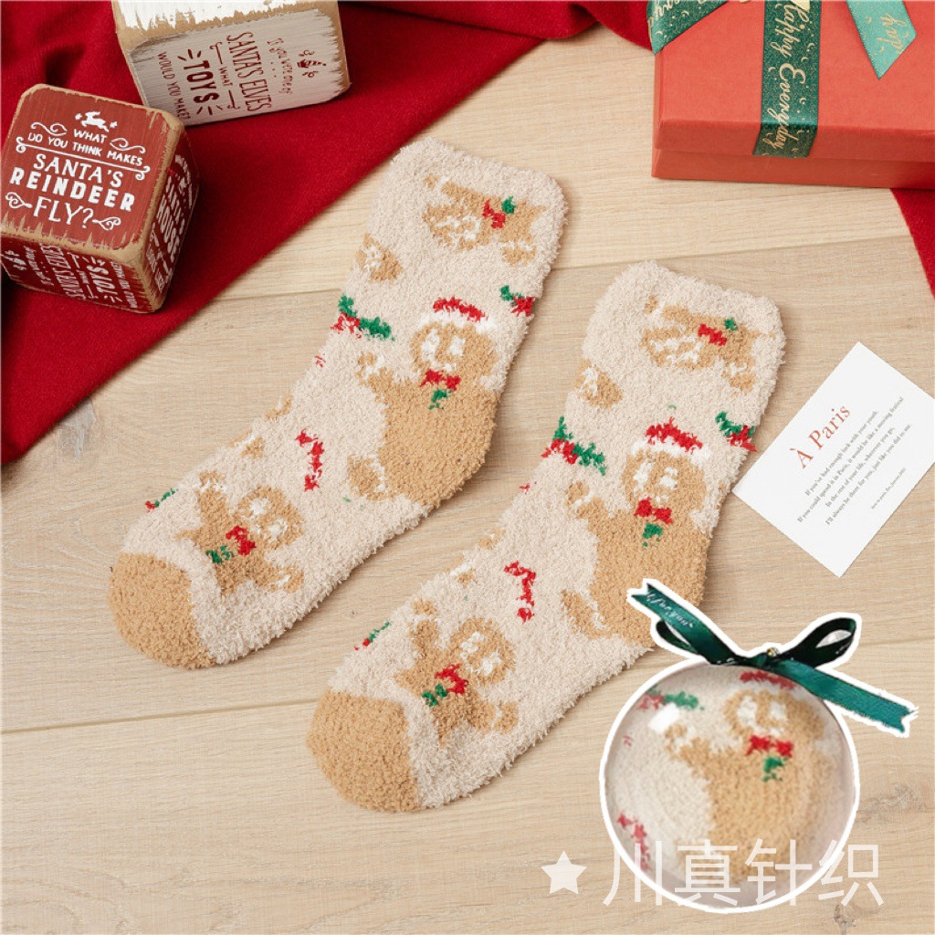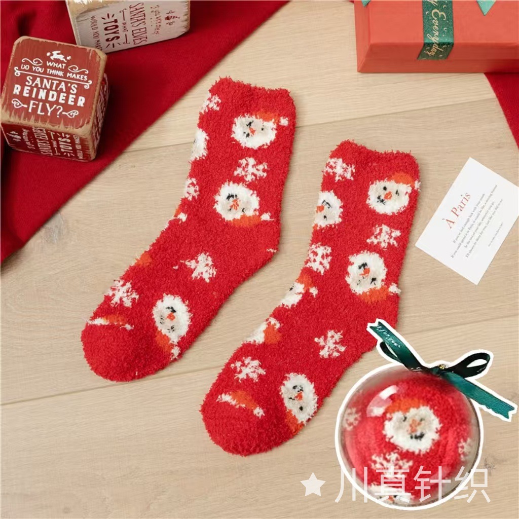 Новогодние носки из красного кораллового флиса с оленями и снеговиками, плюшевые, утолщенные, теплые, с мультяшным дизайном, подарок на Новый год
