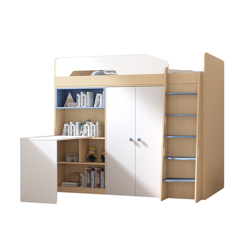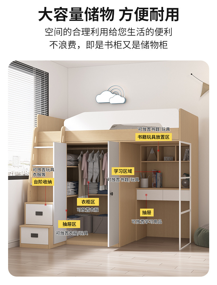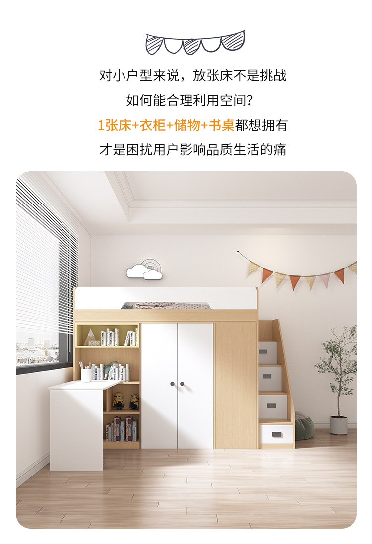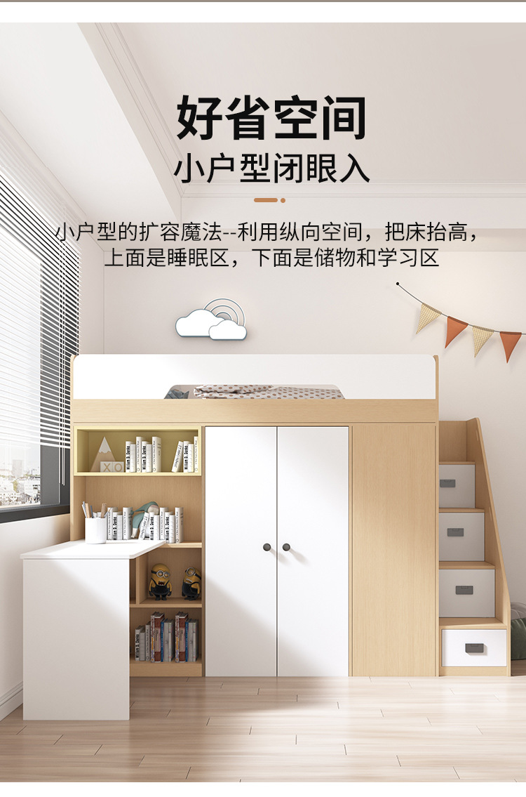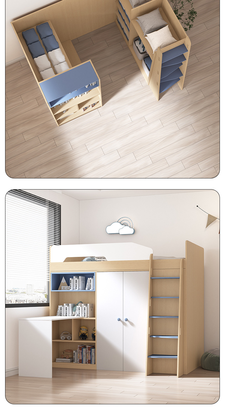 Кровать и стол из массива дерева со шкафом, встроенная кровать, кровать полувысоты, маленькая квартира, гардероб, верхняя и нижняя детская кровать
