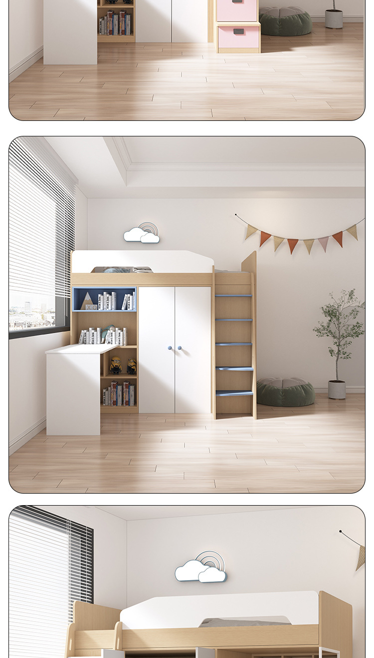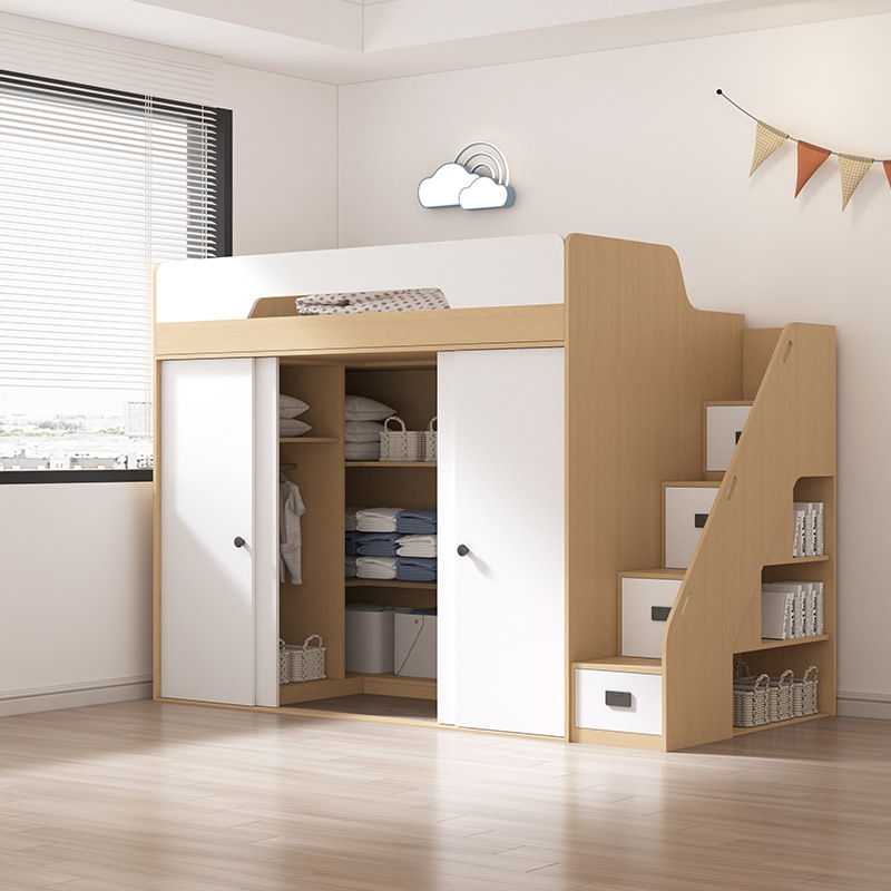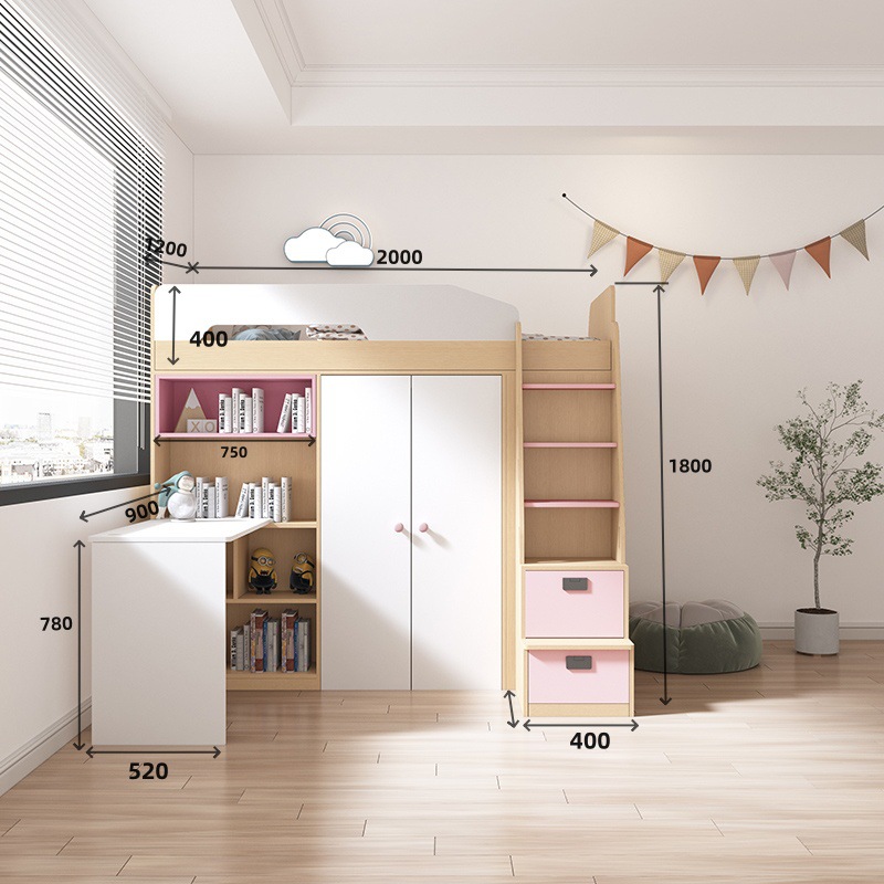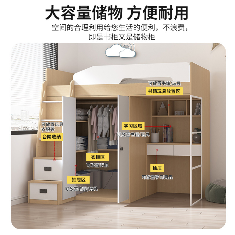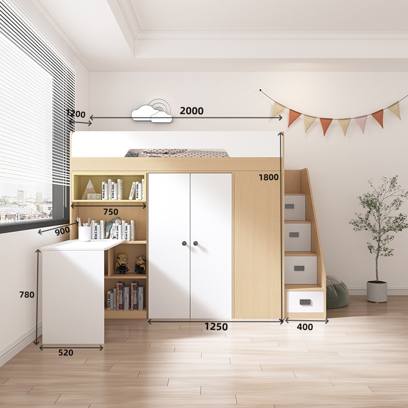 Кровать и стол из массива дерева со шкафом, встроенная кровать, кровать полувысоты, маленькая квартира, гардероб, верхняя и нижняя детская кровать