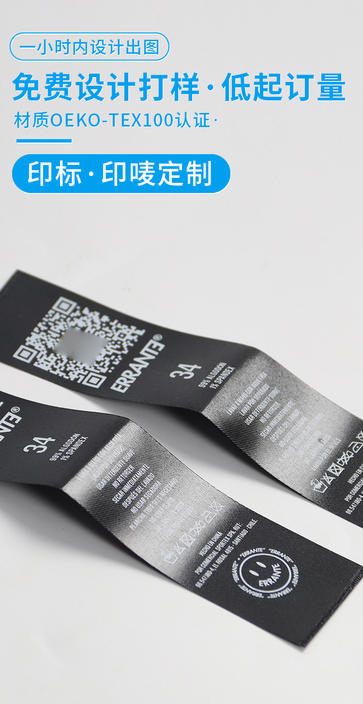 Можно принимать срочные заказы, черно-белые тканевые этикетки, индивидуальные атласные этикетки с напечатанными этикетками, одежду, сумки, обувь и головные уборы, этикетки с QR-кодом, которые можно стирать.
