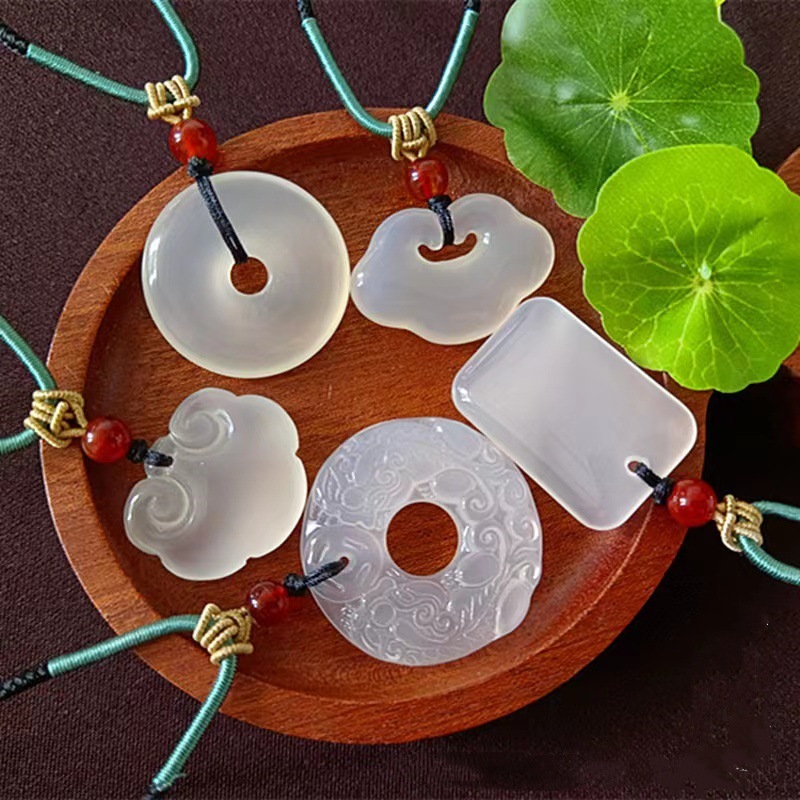 Халцедон двойной кулон Оникс безопасная пряжка ожерелье