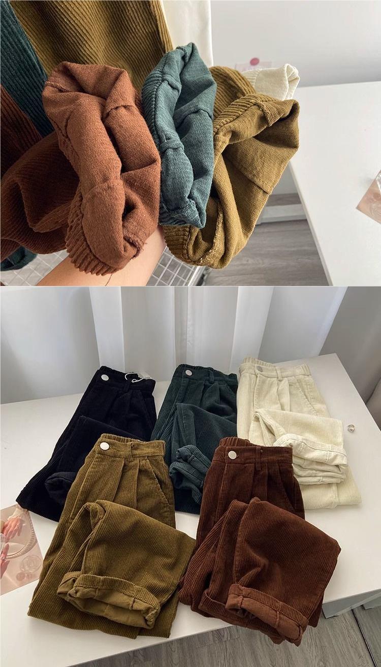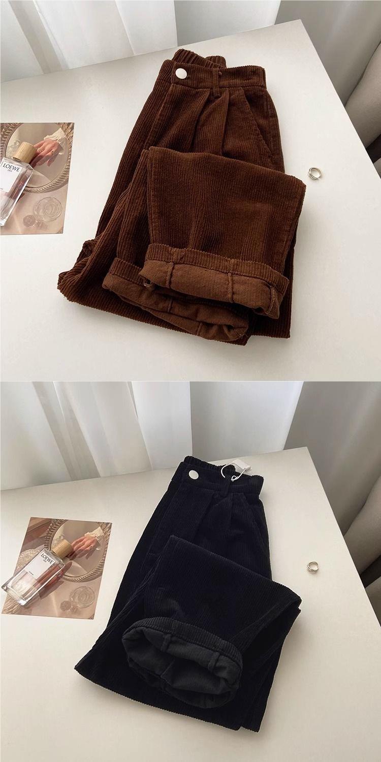 Костюм брюки женские 2024 осень и зима утолщенные новые вельветы с высокой талией тонкие маленькие повседневные прямые брюки широкие ножки женские