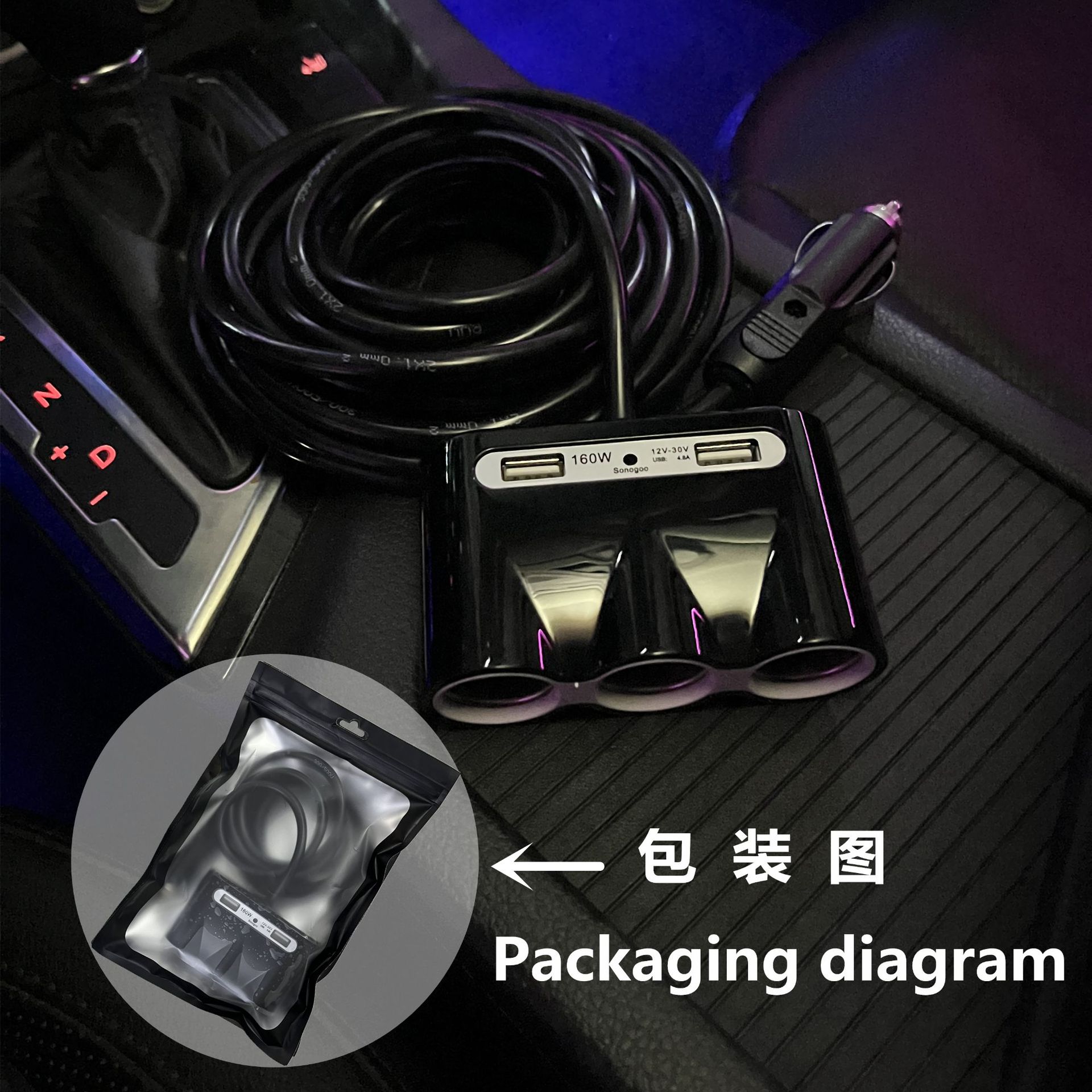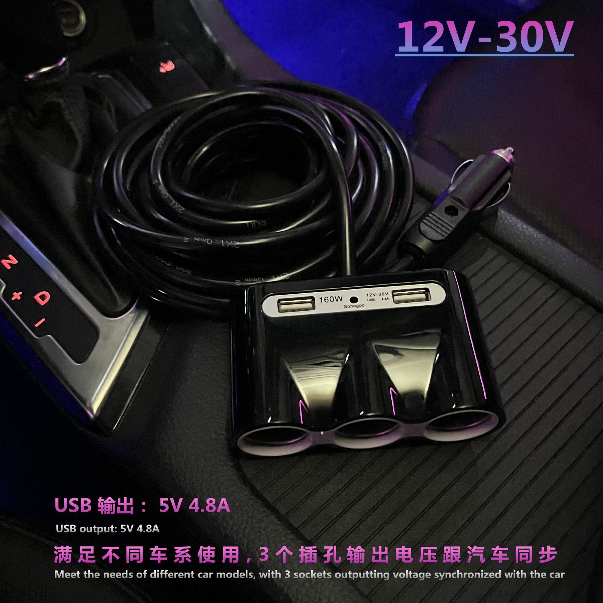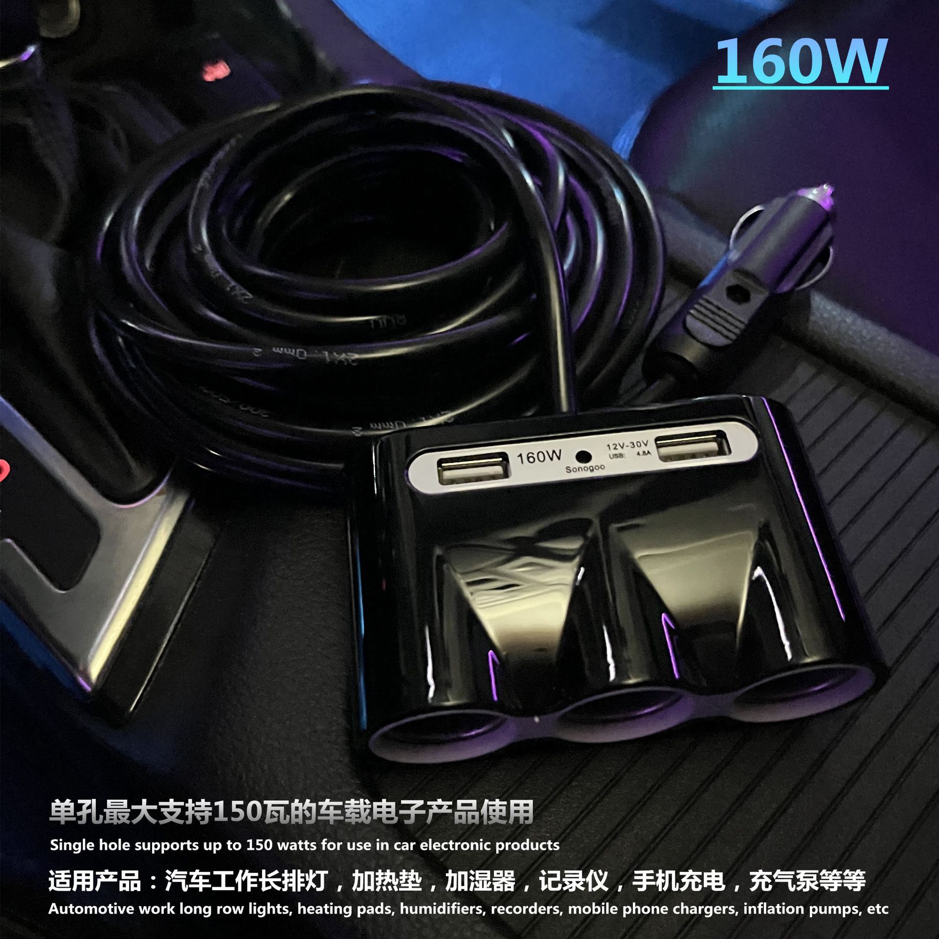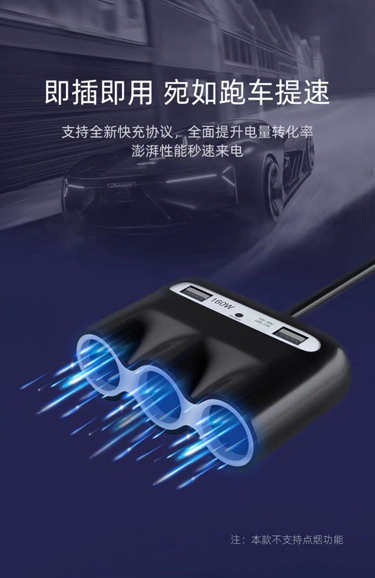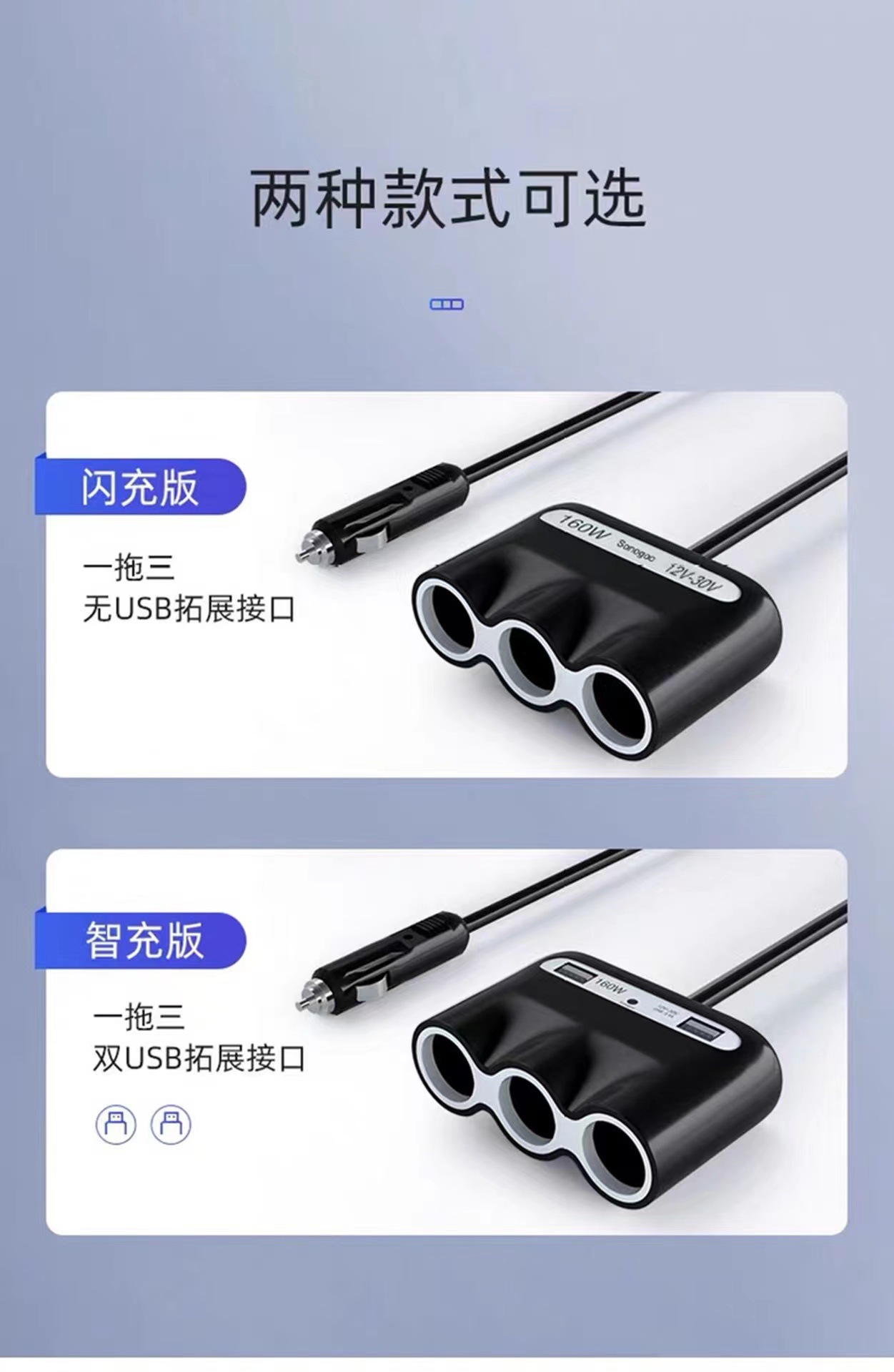 大功率车载点烟器插座,一变三排插,满足更多的车载电器同时使用