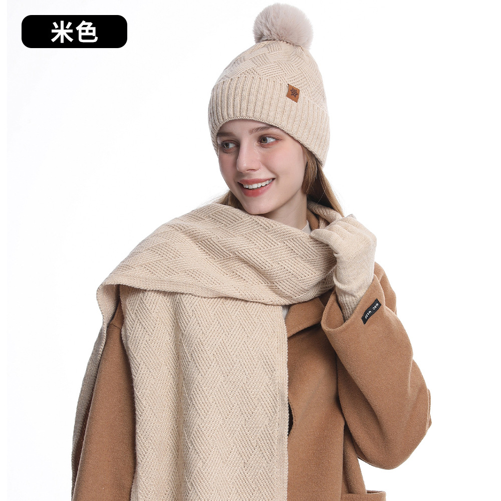 Осенняя и зимняя шерстяная шапка шарф перчатки три комплекта теплая двойная бархатная вязаная женская вязаная шапка через границу