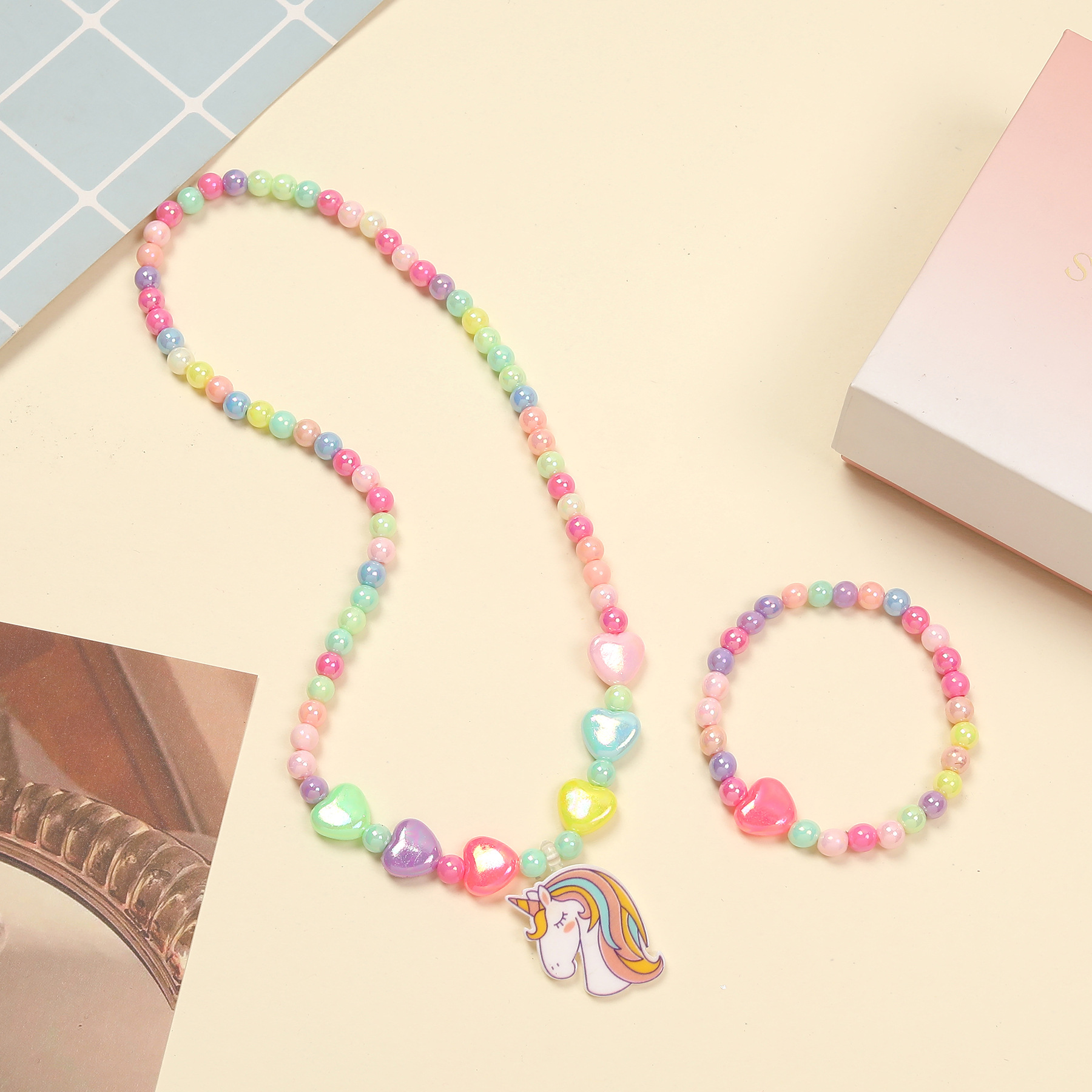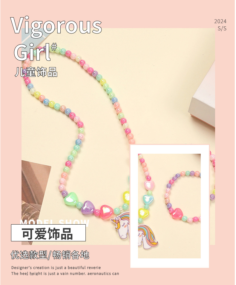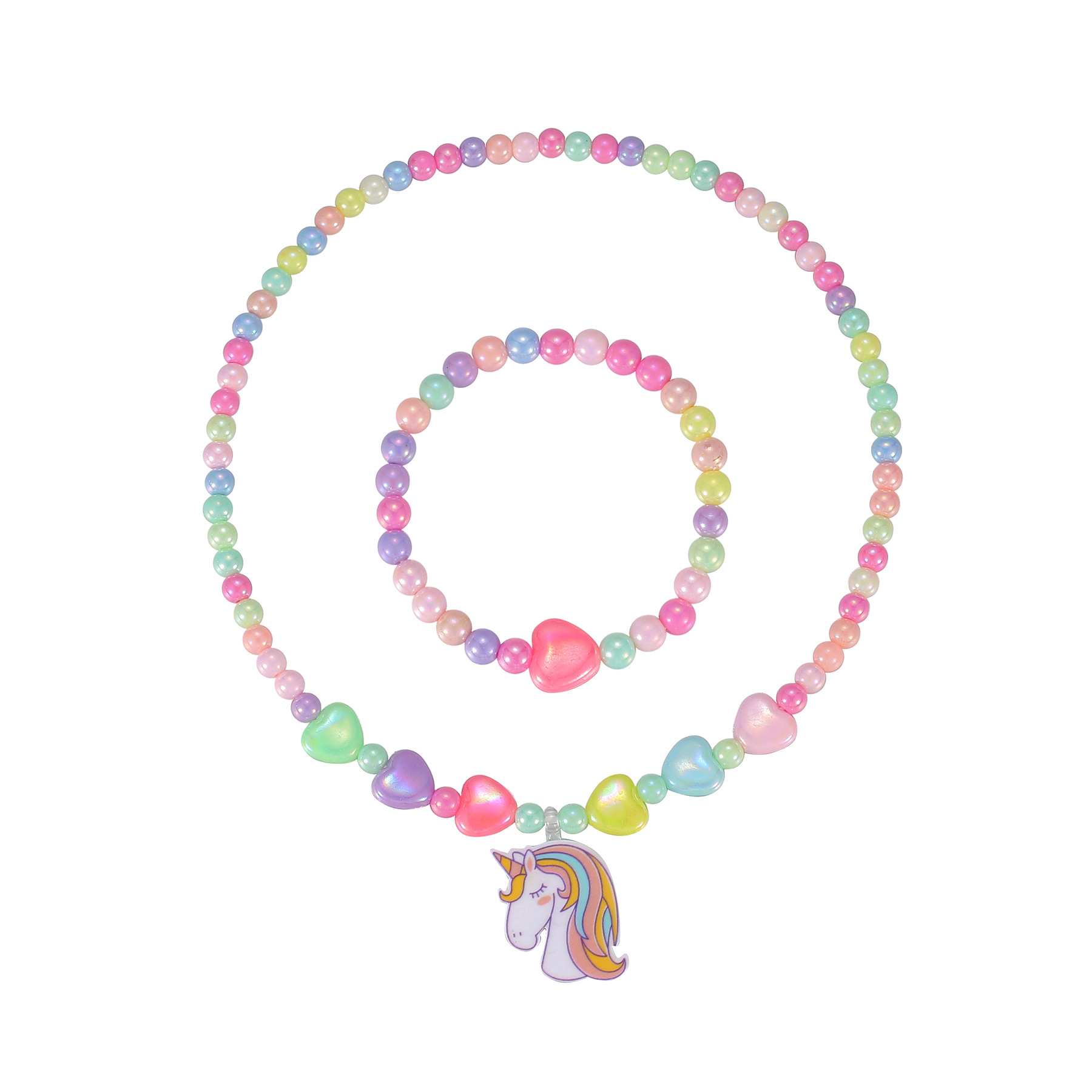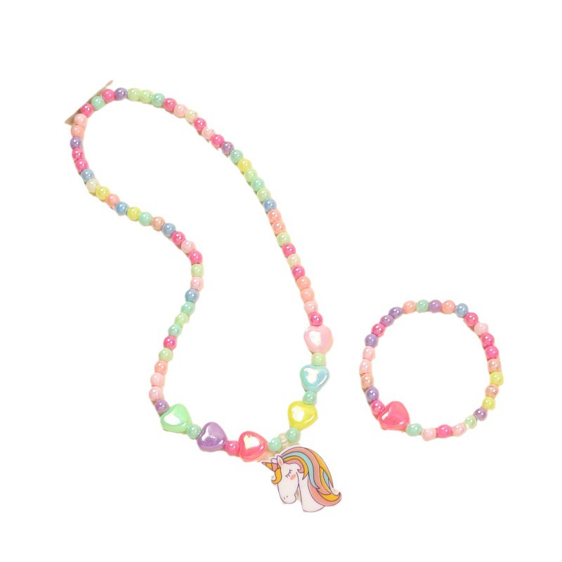 Амазонка взорвала розовый мультфильм любовь смола радуга пони подвеска для детей ювелирный набор женские бисерные украшения