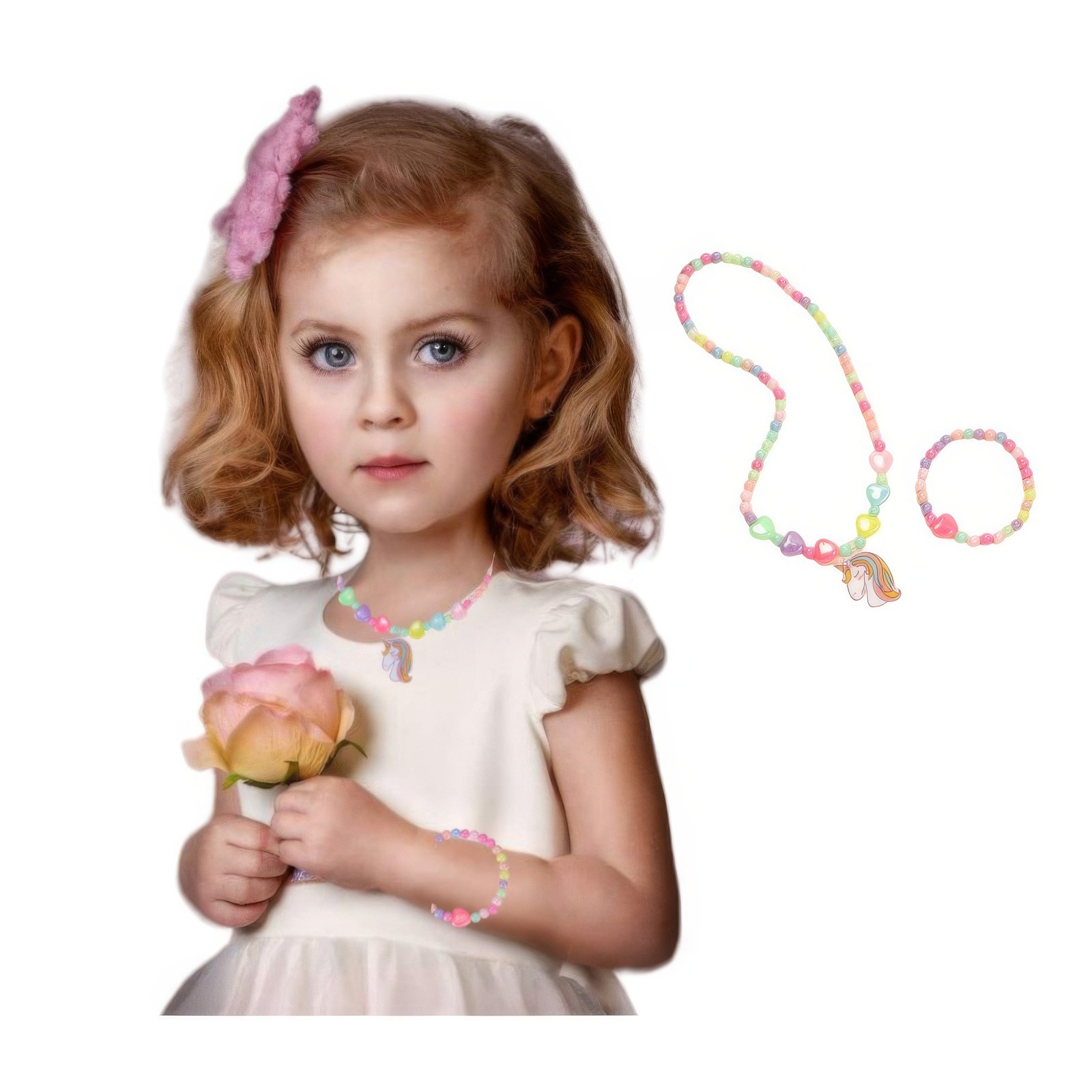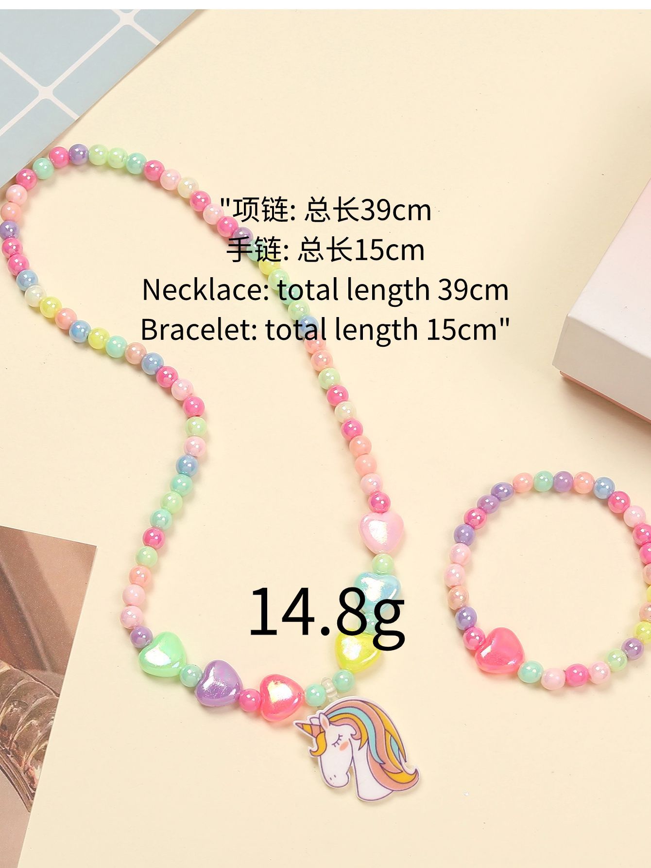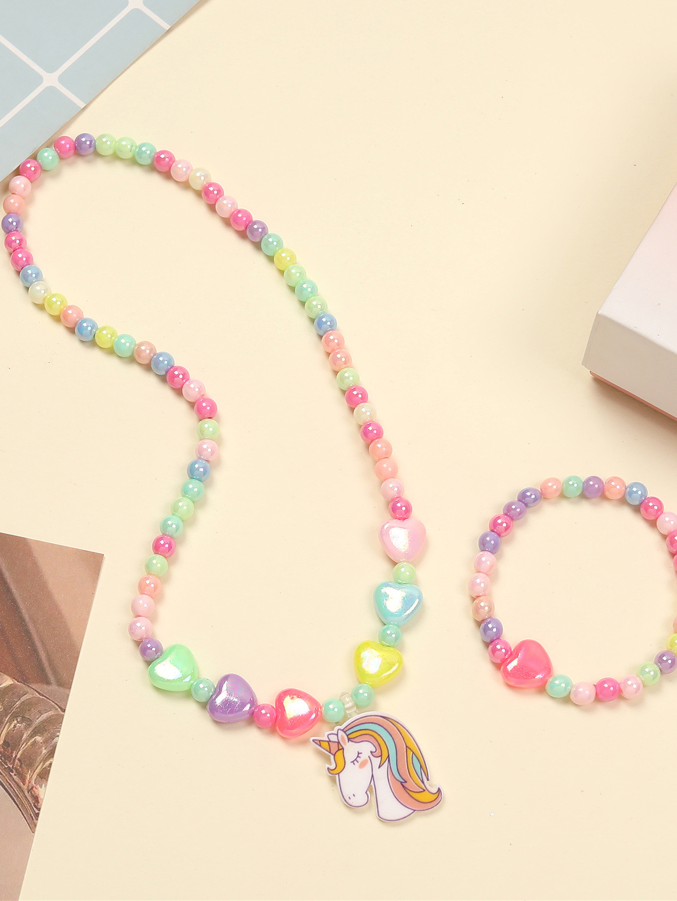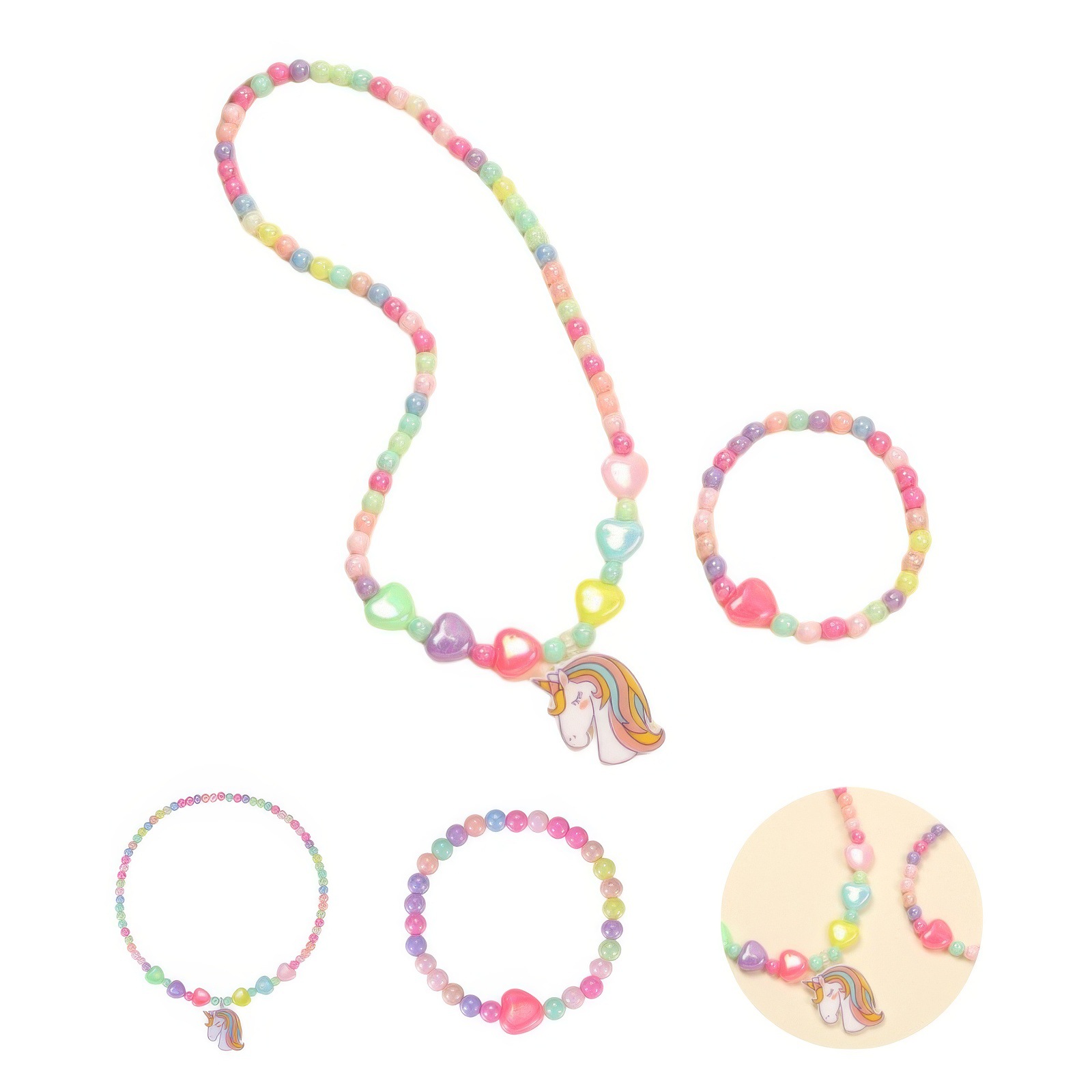 Амазонка взорвала розовый мультфильм любовь смола радуга пони подвеска для детей ювелирный набор женские бисерные украшения